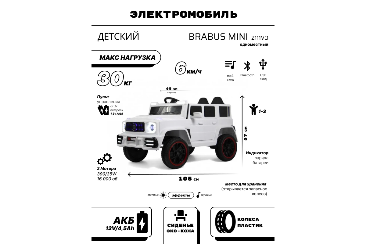 Электромобиль для малышей от одного года BRABUS MINI белый