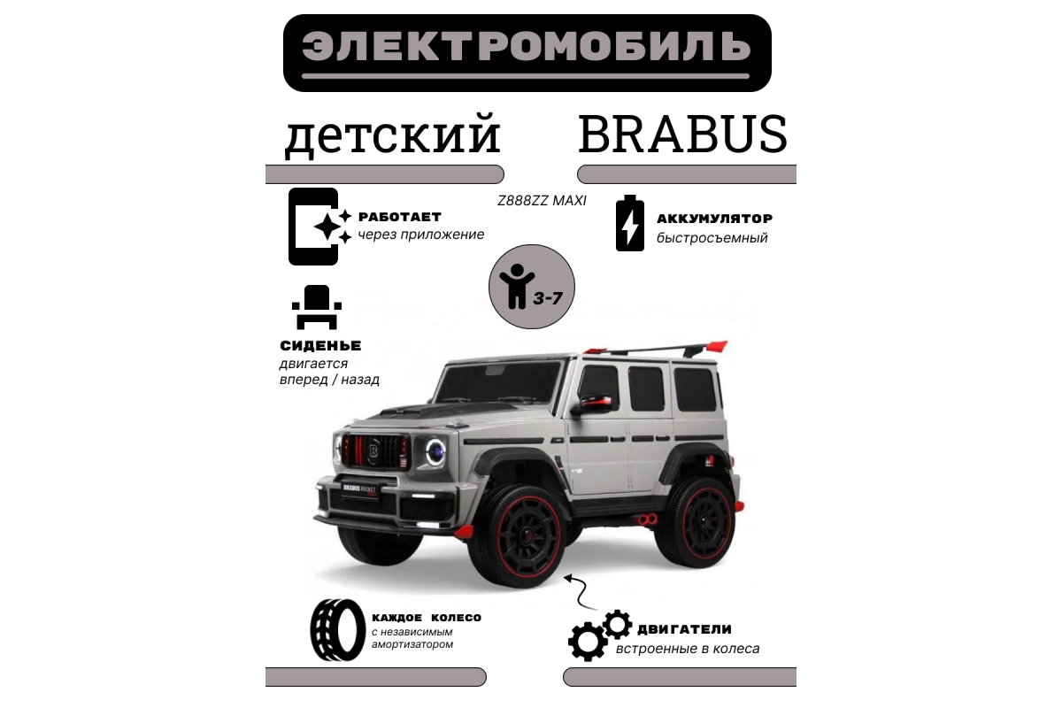 Детский электромобиль BRABUS MAXI Z888ZZ 4WD с дистанционным управлением белого цвета.