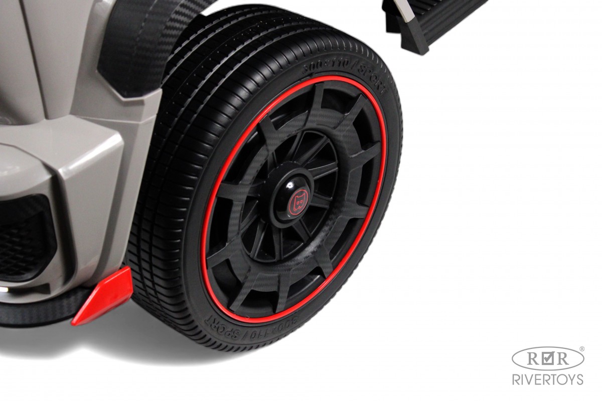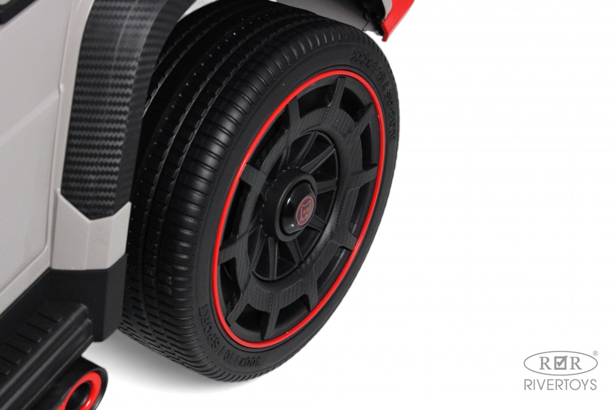 Особенности модели: переключение 2WD/4WD (Отдельная кнопка на медиа-панели. При переключении 2WD, передние колеса движутся свободным ходом), управление с телефона с отдельного приложения (скачать можно по QR коду), защита моторного отсека под капотом, чехол в комплекте, карбоновые вставки, педаль тормоза, карбоновый спойлер, подсветка приборной панели, открывается капот, индикатор напряжения аккумулятора , регулируемое сидение, принцип чемодана(сзади ручка), открываются двери