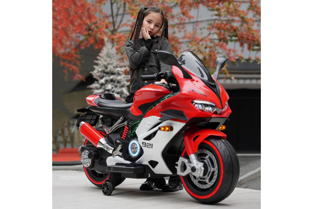 Детский электромотоцикл Ducati (12V, EVA, ручка газа, спидометр) - FT-921-RED-WHITE - это яркий спортивный электробайк, размер которого очень близок к оригиналу, с диодной подсветкой колес, фар, задних стопов и габаритных огней, несомненно, привлечет внимание, как детей, так и взрослых. Запоминающийся внешний вид дополнен отличным функционалом: два мотора по 45 Ватт, резиновые колеса для отличного сцепления с любым дорожным покрытием, каучуковые дополнительные боковые колесики для хорошей устойчивости, эргономичное сиденье из кожзама, амортизатор для комфортного катания, боковые зеркала и задние стопы из мягкого пластика, магнитола для прослушивания любимой музыки.