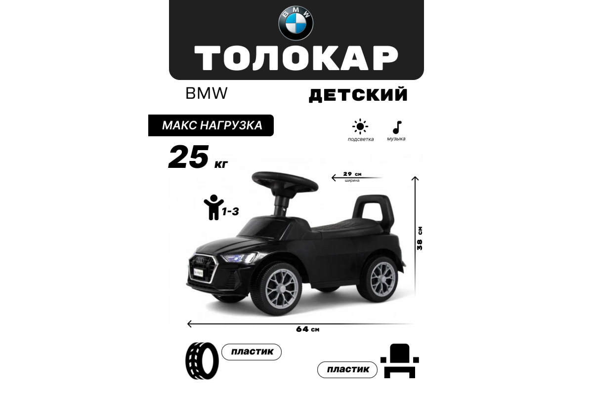 - Световые и звуковые эффекты:Музыкальный руль: звук клаксона/мелодии заводские (от батареек 3шт 1.5V AAA) Световые эффекты: светятся передние фары