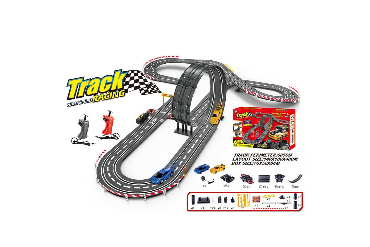 - В наборе: машинки 10 см 2 шт, пульт 2 шт, трек 685 см