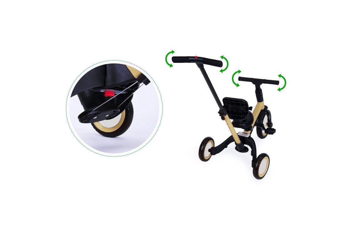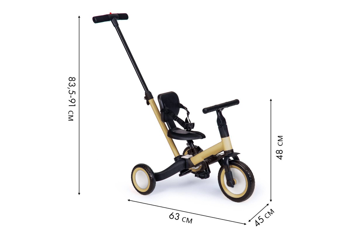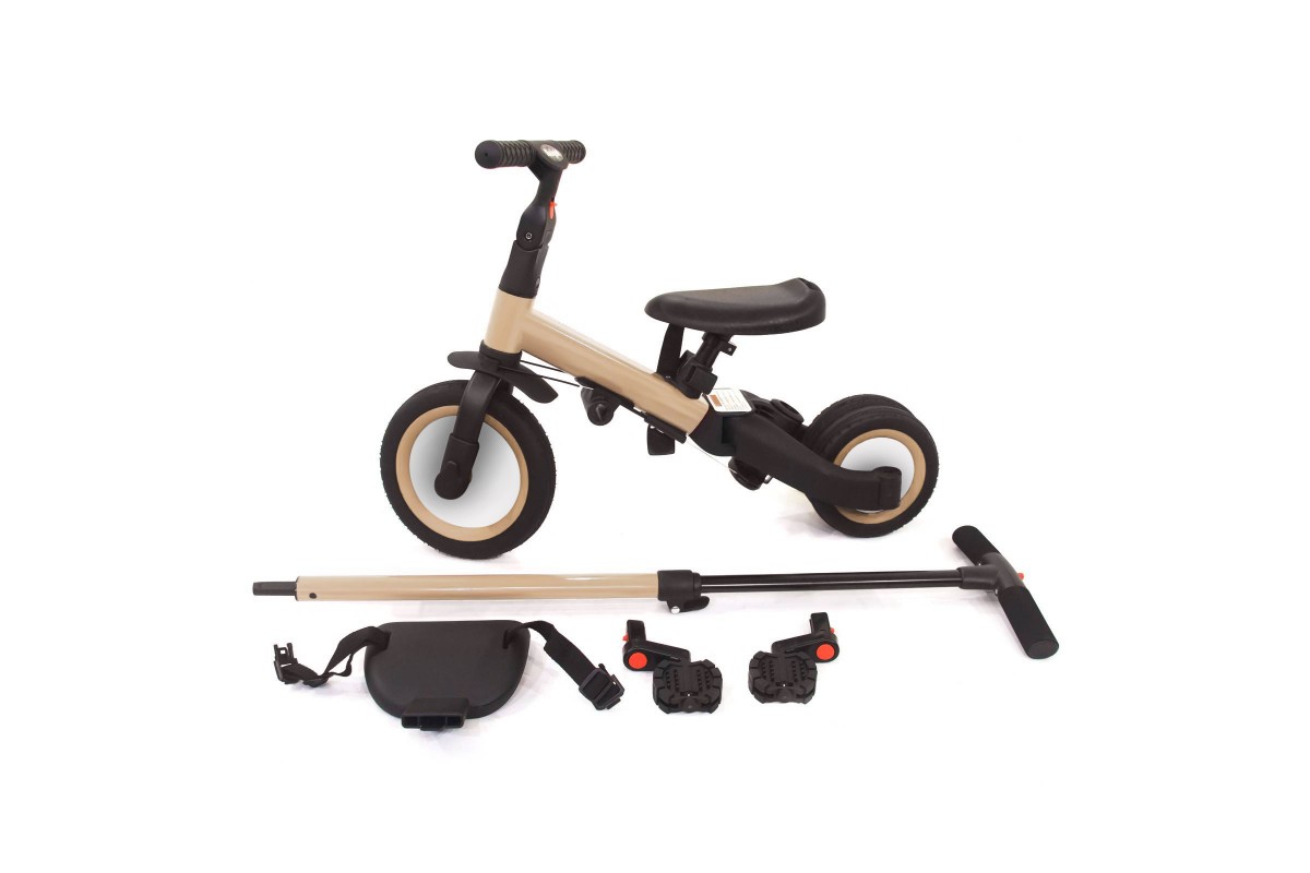 Детский беговел-велосипед 4в1 с родительской ручкой, бежевый - TR007-BEIGE - это удобный, универсальный и надежный беговел для детей от 1 до 5 лет, с возможностью становиться велосипедом!