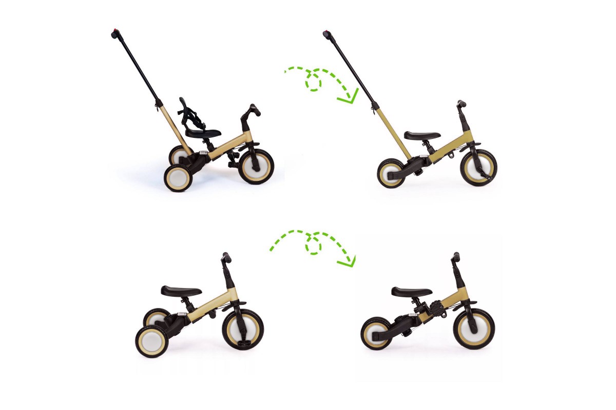 - Беговел-трансформер Knight TR007 может быть, как двухколёсным или трёхколесным беговелом, так и трёхколесным велосипедом.