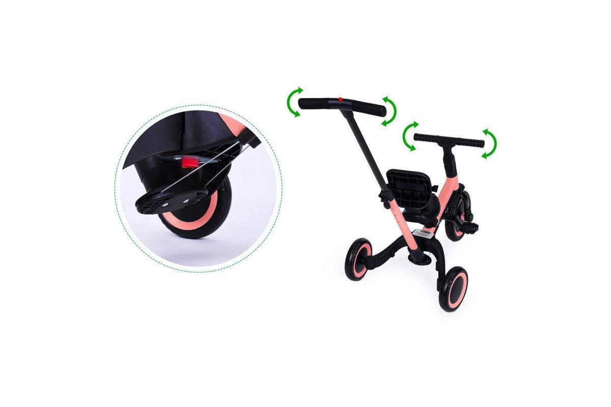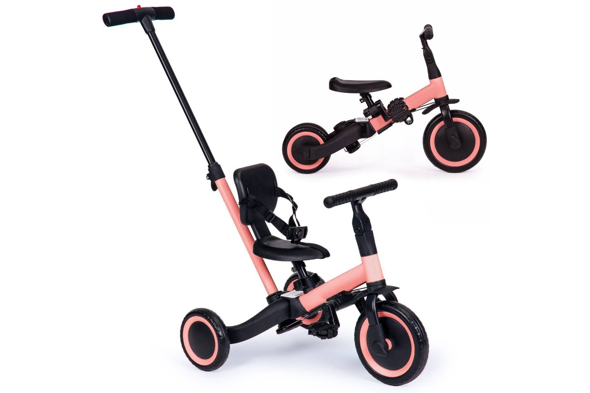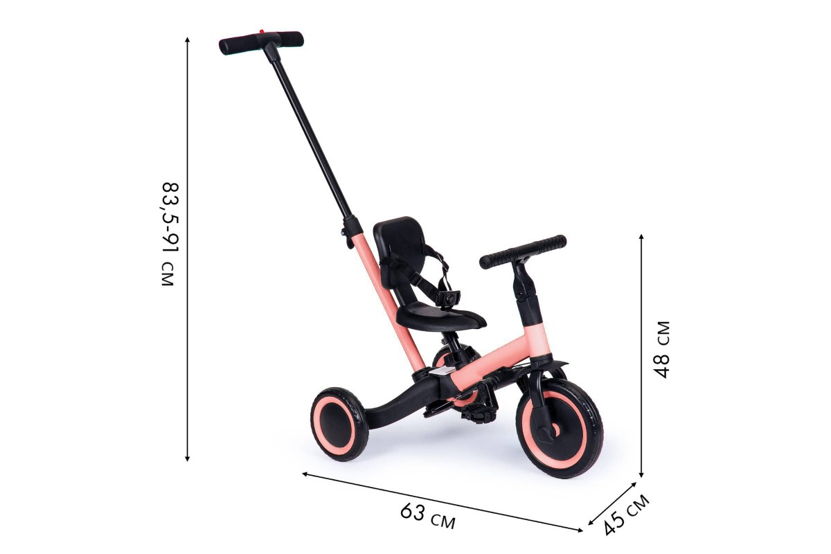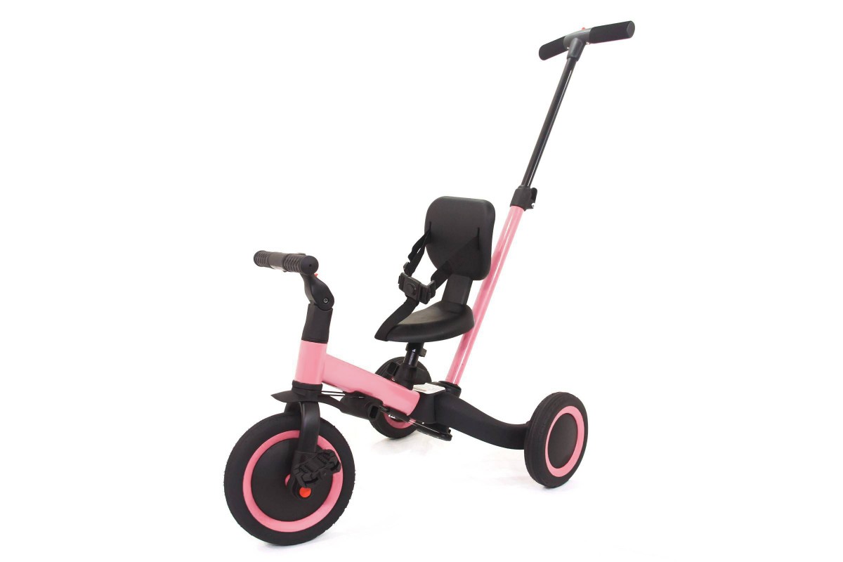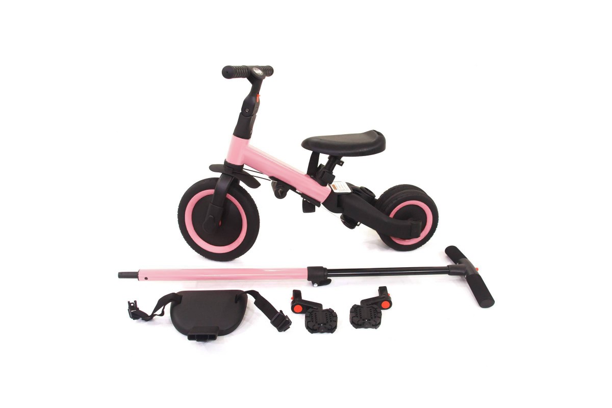 Детский беговел-велосипед 4в1 с родительской ручкой, розовый - TR007-PINK - это удобный, универсальный и надежный беговел для детей от 1 до 5 лет, с возможностью становиться велосипедом!