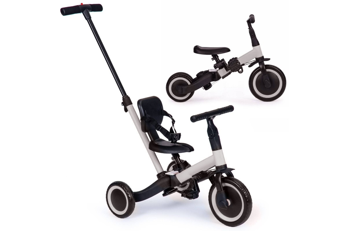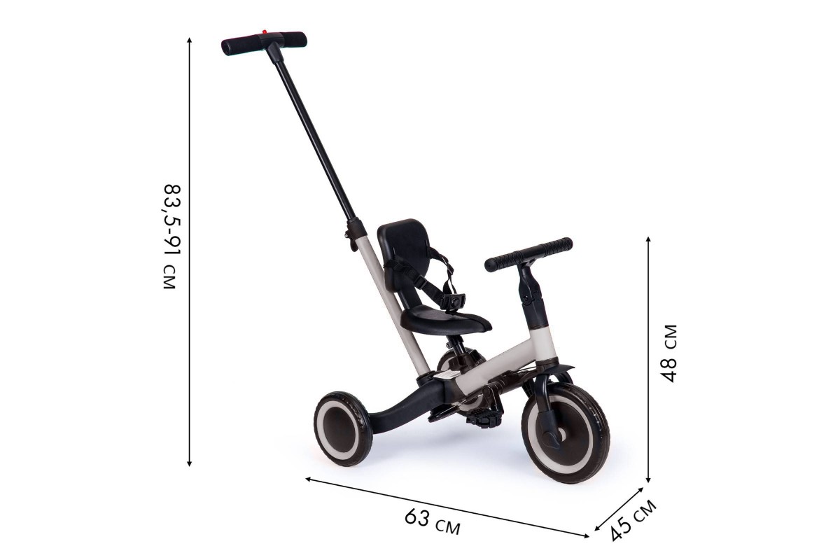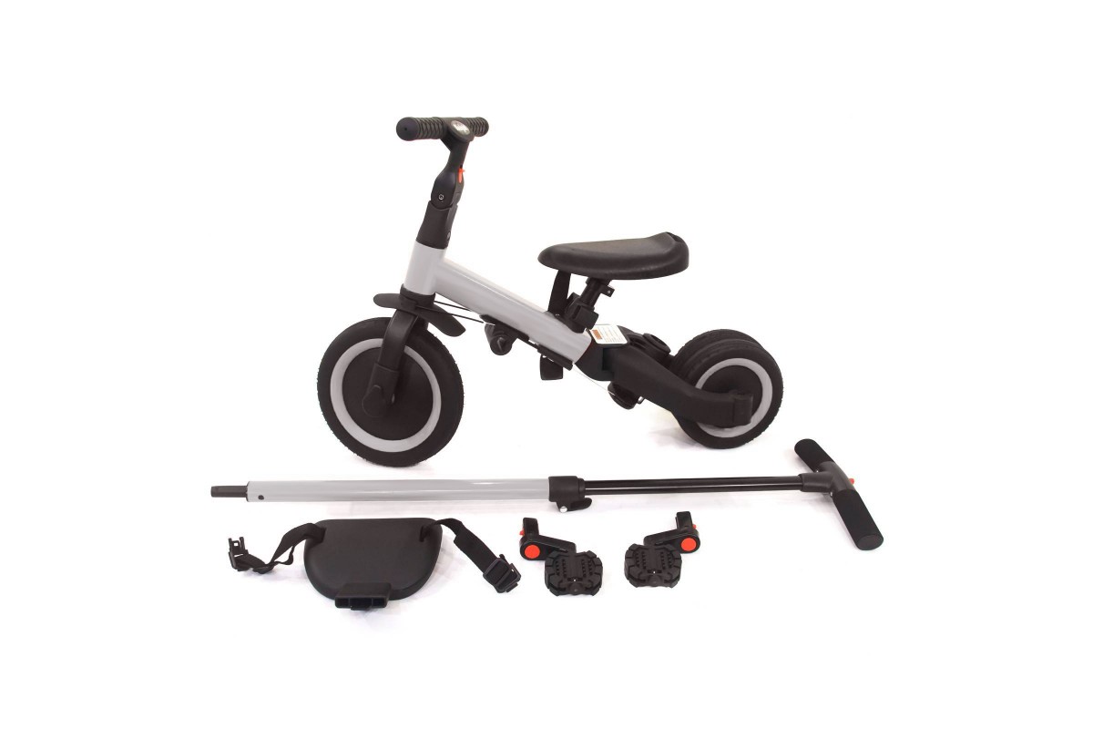 Детский беговел-велосипед 4в1 с родительской ручкой, серый - TR007-GREY - это удобный, универсальный и надежный беговел для детей от 1 до 5 лет, с возможностью становиться велосипедом!