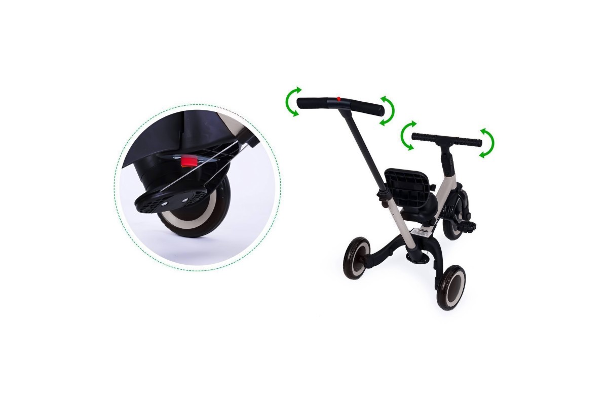 - Беговел-трансформер Knight TR007 может быть, как двухколёсным или трёхколесным беговелом, так и трёхколесным велосипедом.