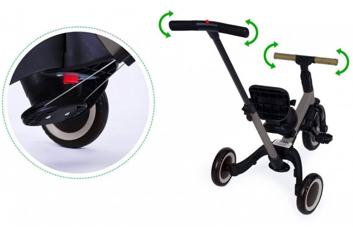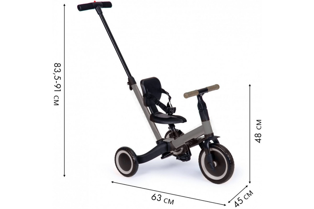 Детский беговел-велосипед 4в1 с родительской ручкой, темно-серый - TR007-DARK-GREY - это удобный, универсальный и надежный беговел для детей от 1 до 5 лет, с возможностью становиться велосипедом!