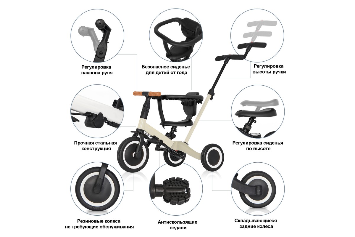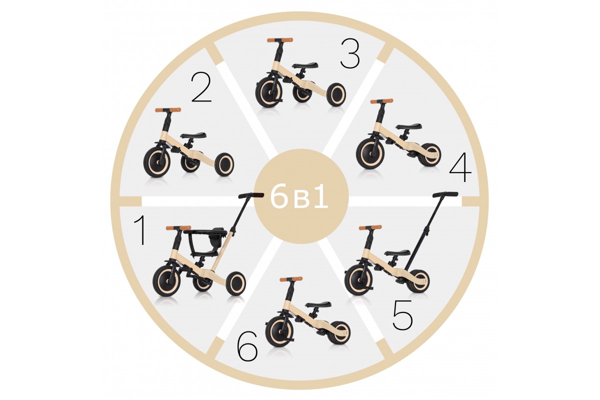 Детский беговел-велосипед 6в1 с родительской ручкой, бежевый - TR008-BEIGE - это обновленная модель беговела TR007 с боковой поддержкой сиденья. TR008 - это удобный, универсальный и надежный беговел для детей от 1 до 5 лет, с возможностью становиться велосипедом!