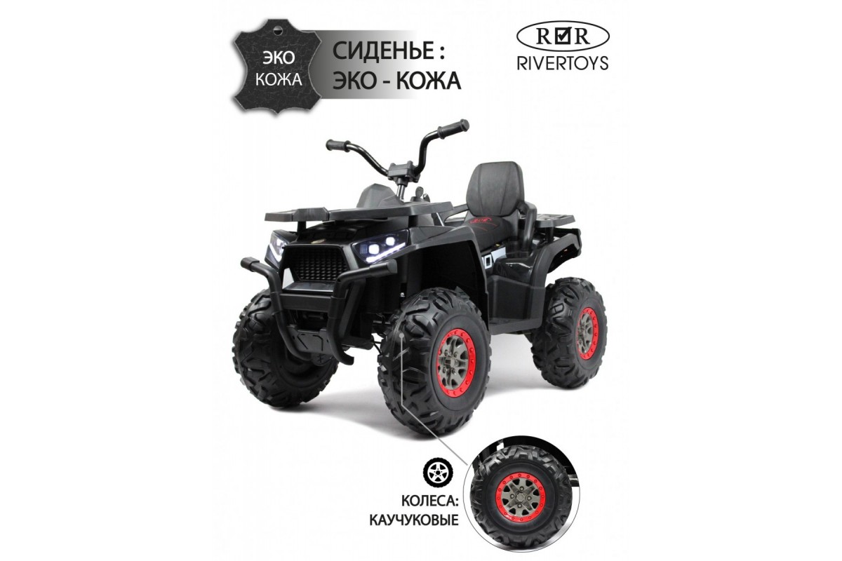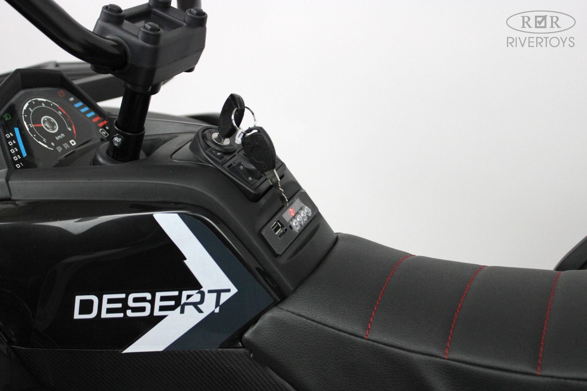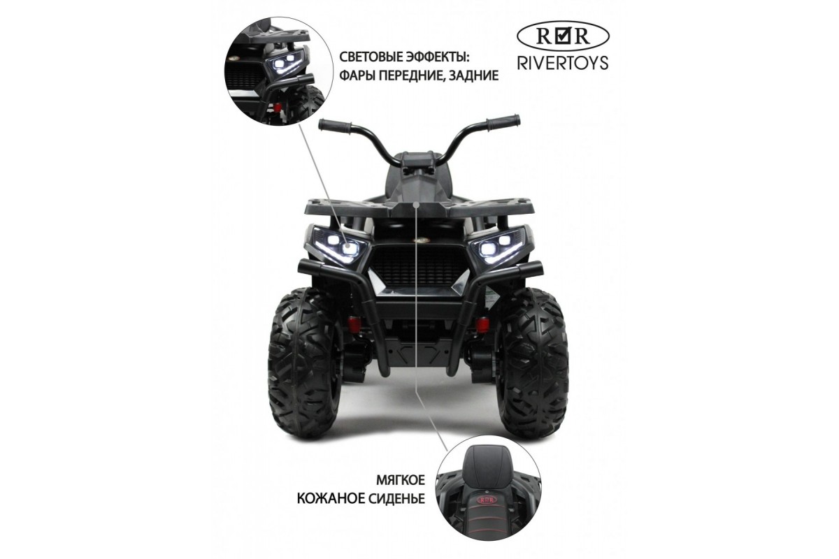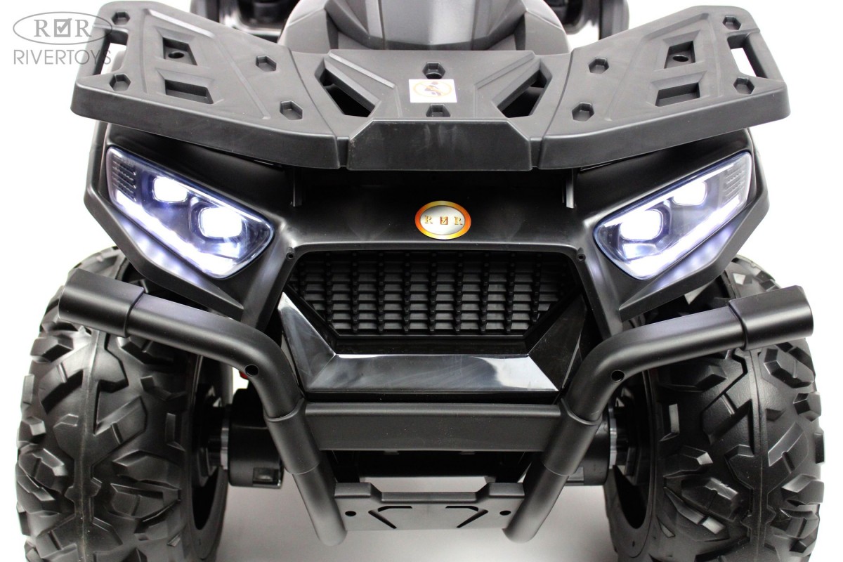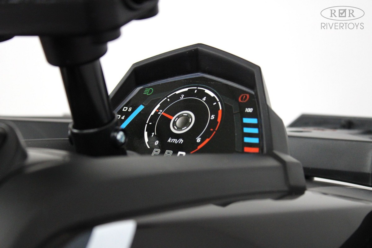 Отдельной кнопкой включается подсветка передних и задних фар. Хорошую проходимость обеспечивают большие резиновые колеса и высокий клиренс. На задних колесах установлены амортизаторы. Есть заводские мелодии. Запуск двигателя производится посредством ключа.