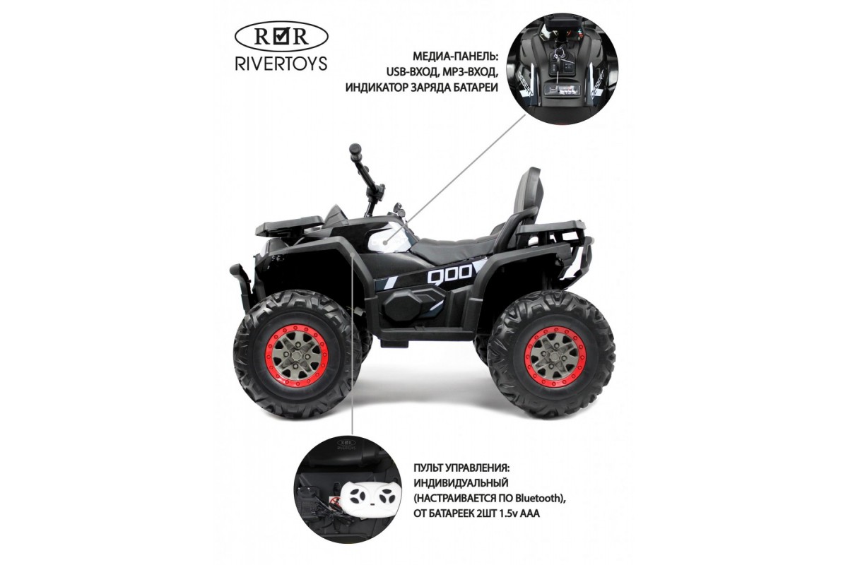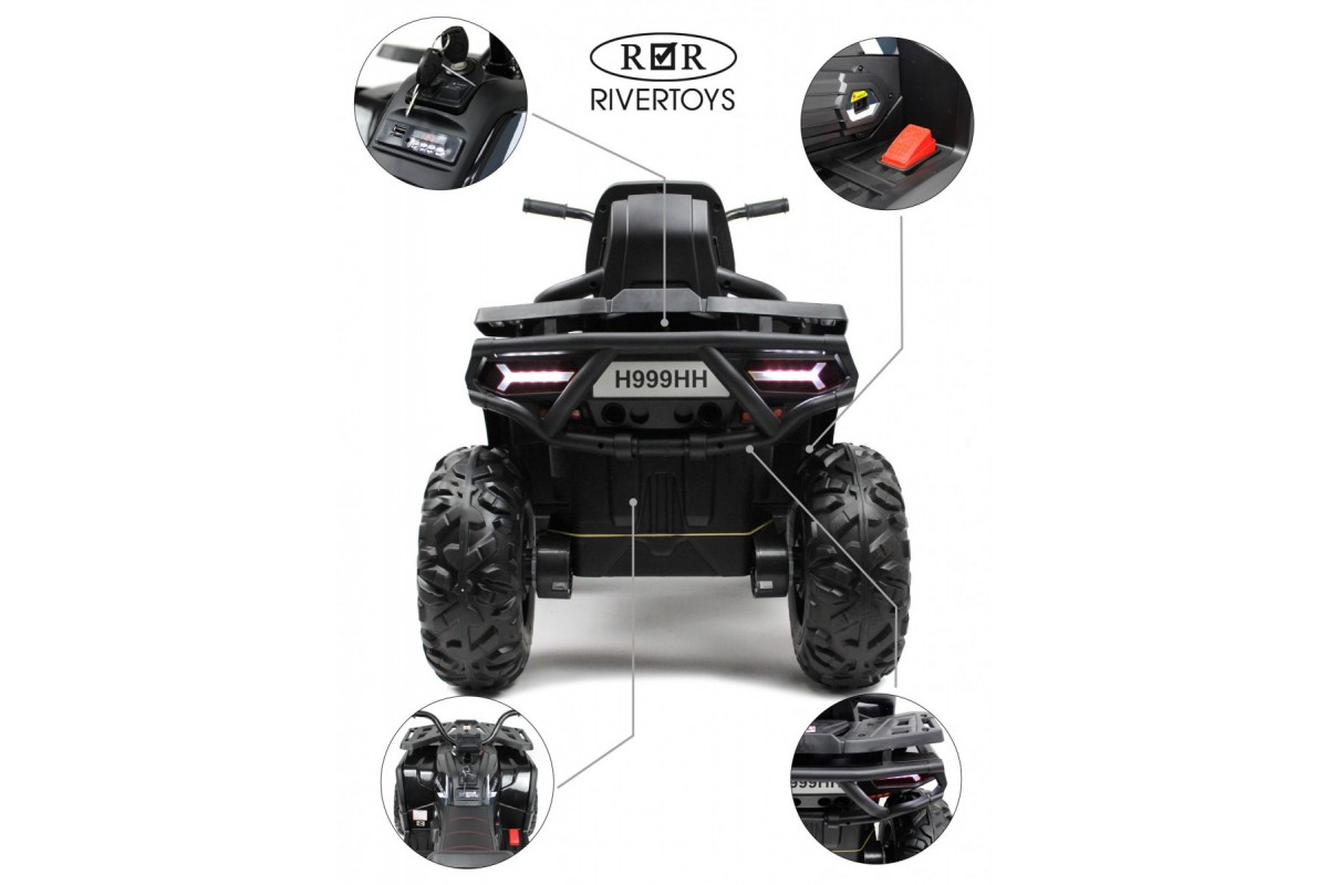 Детский электроквадроцикл H999HH имеет полный привод и дистанционное управление. Для этого используется индивидуальный пульт (2,4 ГГц), настраиваемый по Bluetooth. Можно поменять привод с 2WD на 4WD с помощью переключателя.