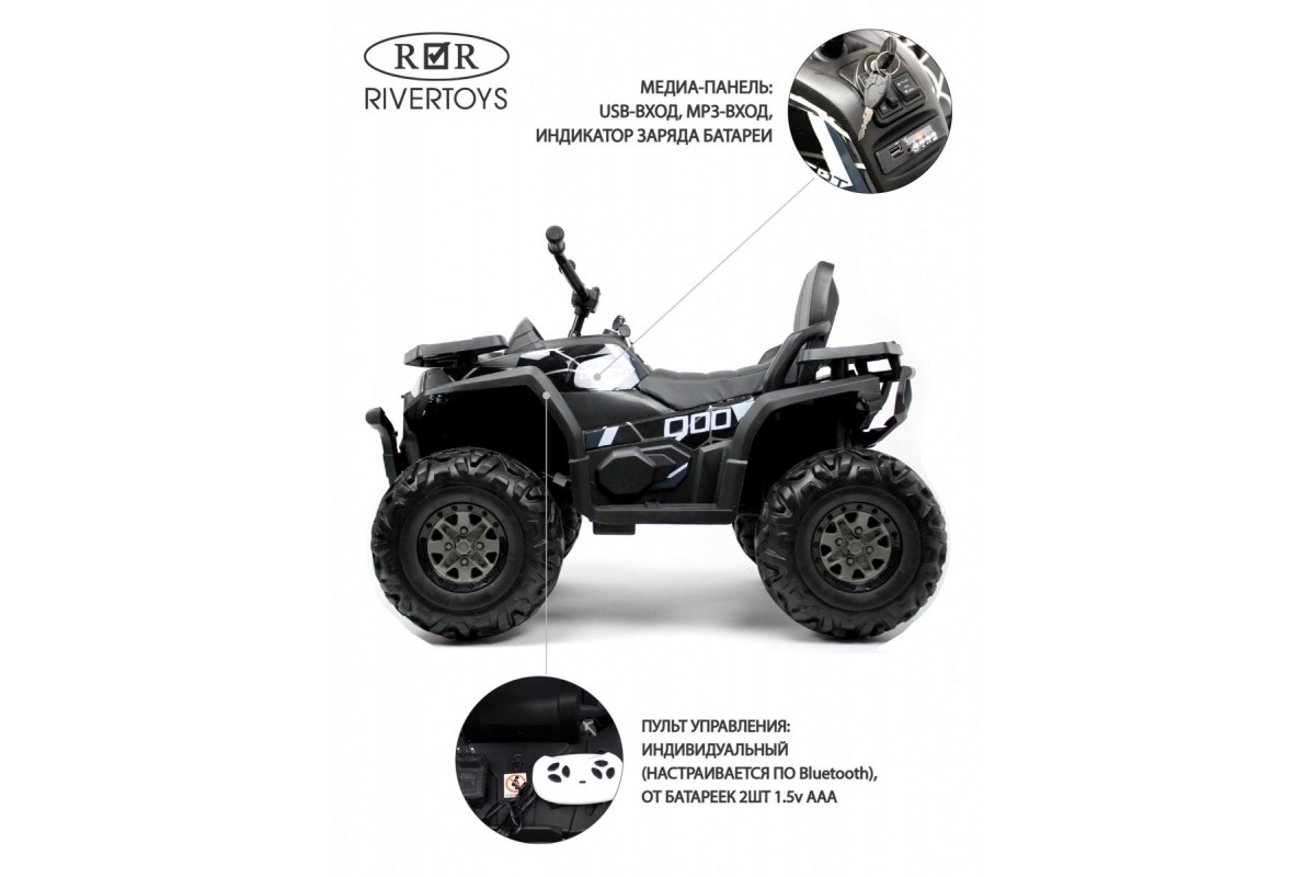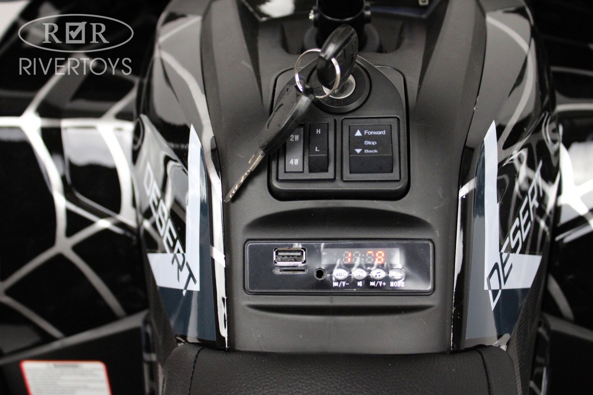 Детский электроквадроцикл H999HH имеет полный привод и дистанционное управление. Для этого используется индивидуальный пульт (2,4 ГГц), настраиваемый по Bluetooth. Можно поменять привод с 2WD на 4WD с помощью переключателя.