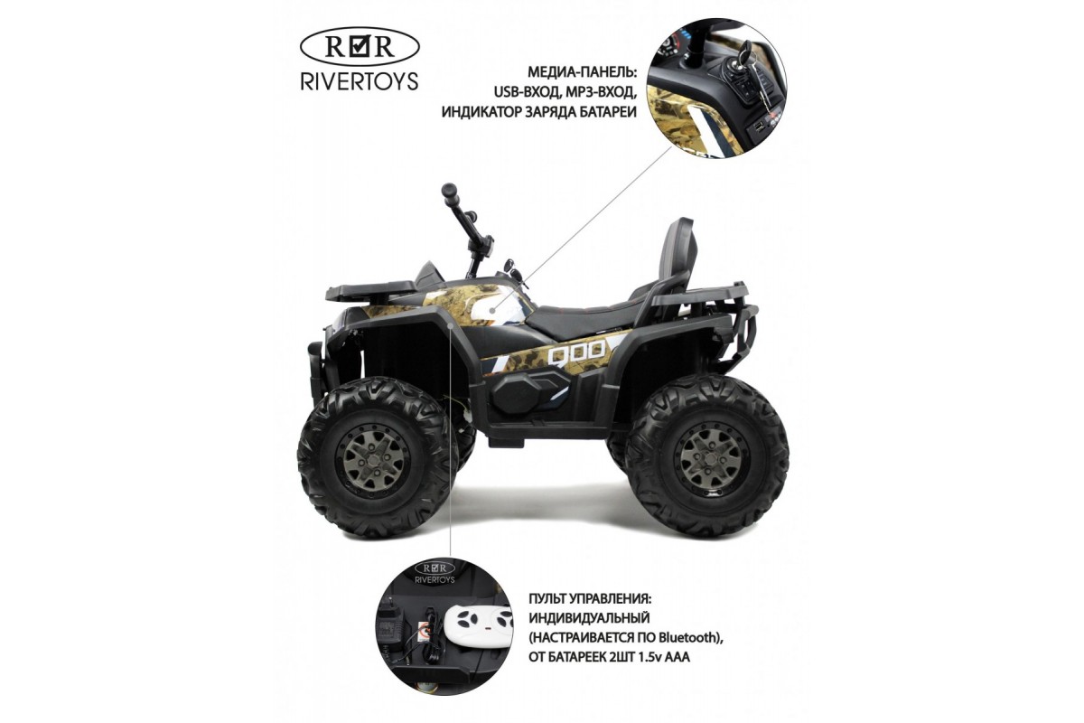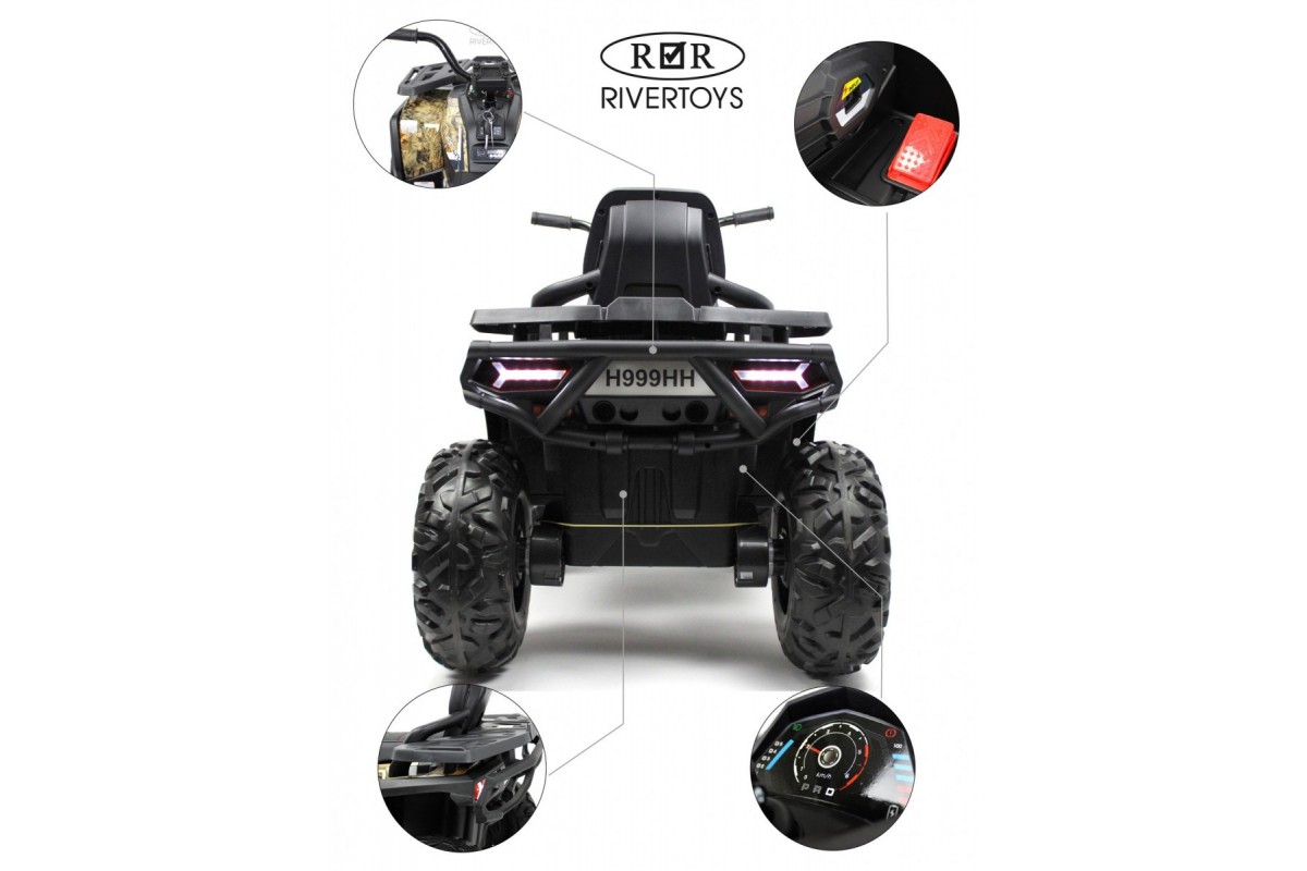 Детский электроквадроцикл H999HH имеет полный привод и дистанционное управление. Для этого используется индивидуальный пульт (2,4 ГГц), настраиваемый по Bluetooth. Можно поменять привод с 2WD на 4WD с помощью переключателя.