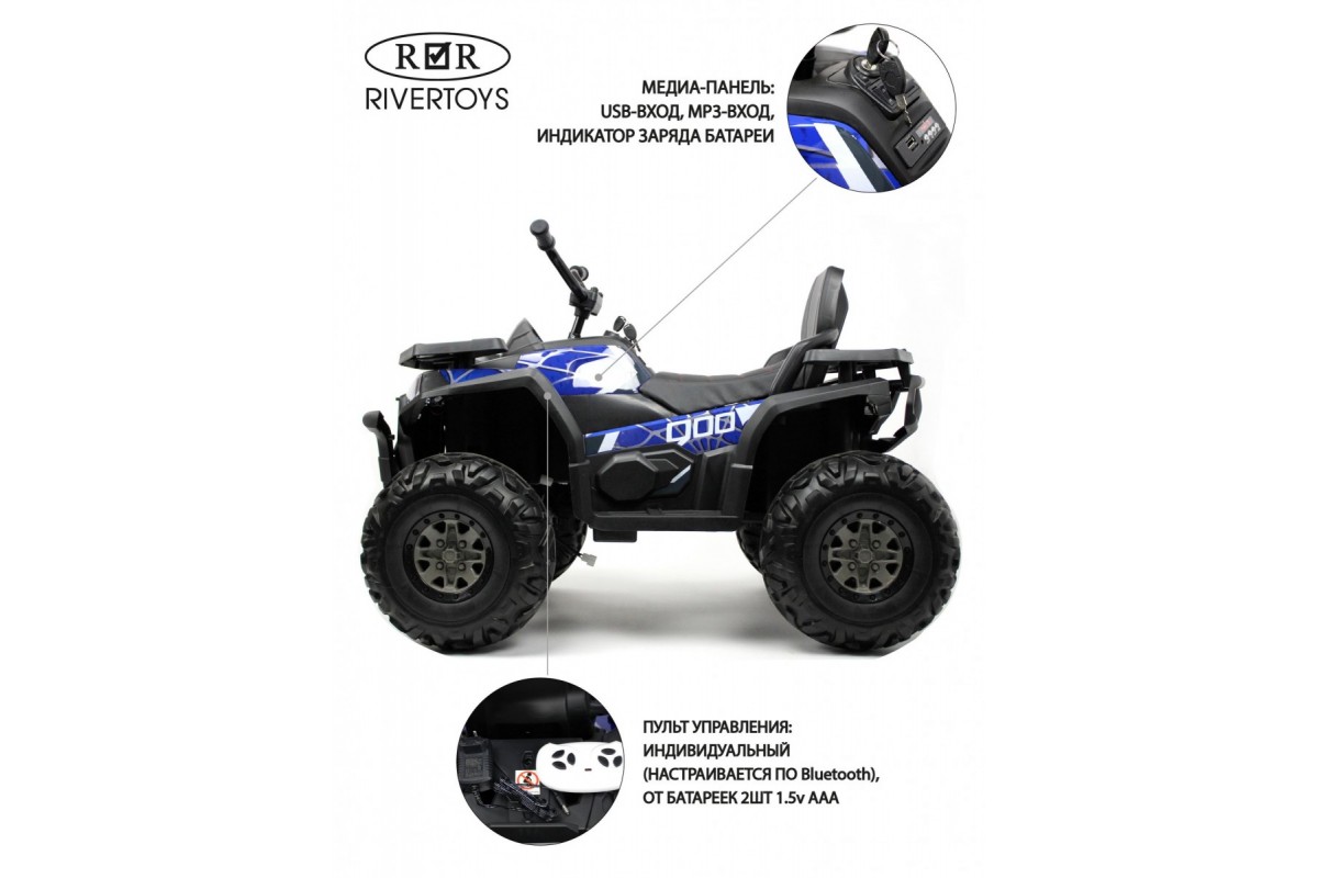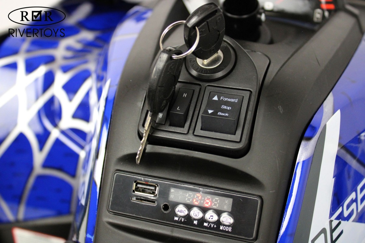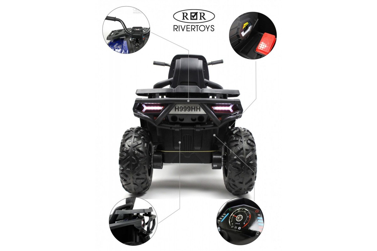Детский электроквадроцикл H999HH имеет полный привод и дистанционное управление. Для этого используется индивидуальный пульт (2,4 ГГц), настраиваемый по Bluetooth. Можно поменять привод с 2WD на 4WD с помощью переключателя.