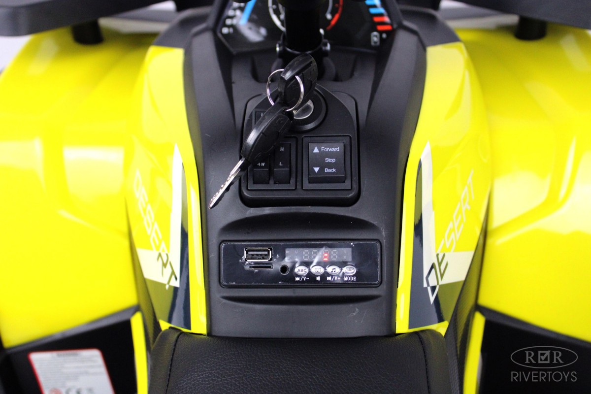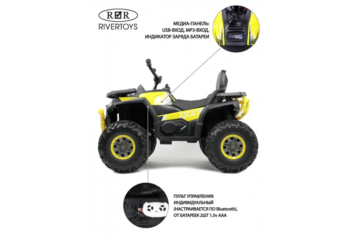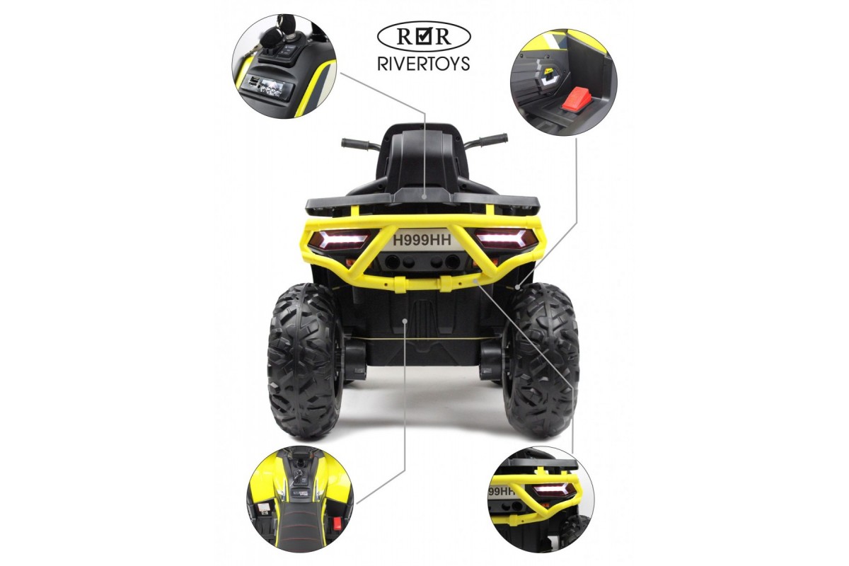 Детский электроквадроцикл H999HH имеет полный привод и дистанционное управление. Для этого используется индивидуальный пульт (2,4 ГГц), настраиваемый по Bluetooth. Можно поменять привод с 2WD на 4WD с помощью переключателя.