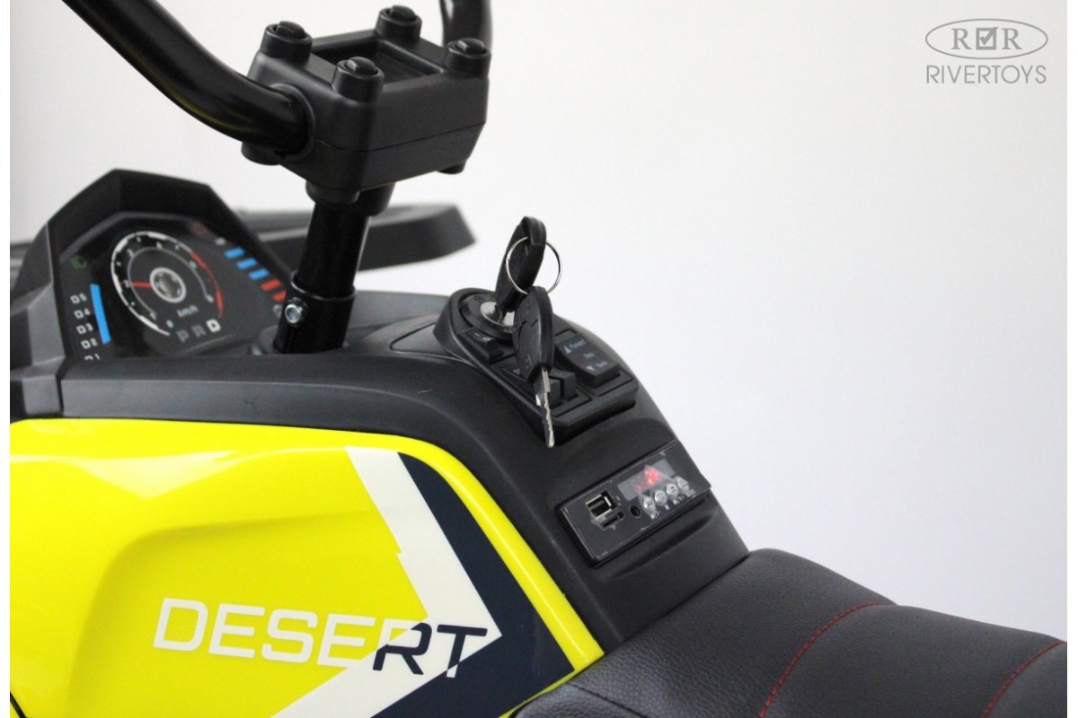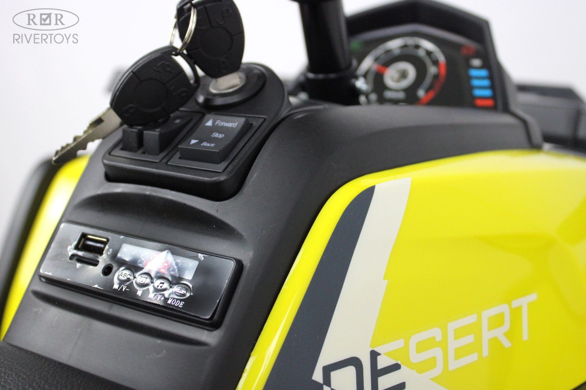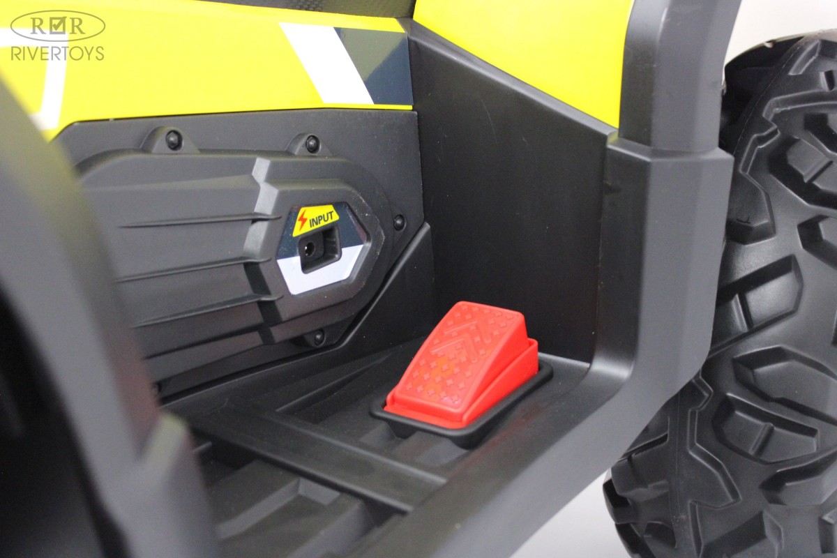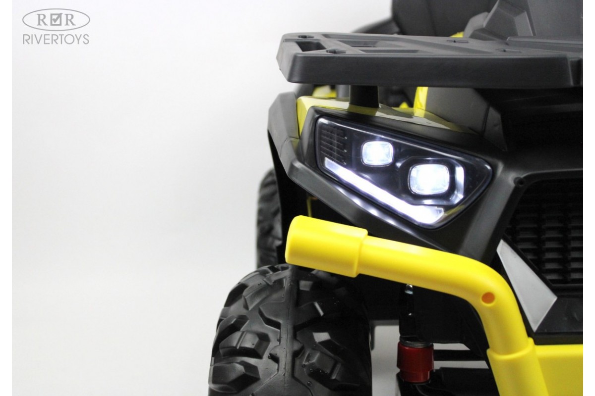 Детский электроквадроцикл H999HH имеет полный привод и дистанционное управление. Для этого используется индивидуальный пульт (2,4 ГГц), настраиваемый по Bluetooth. Можно поменять привод с 2WD на 4WD с помощью переключателя.