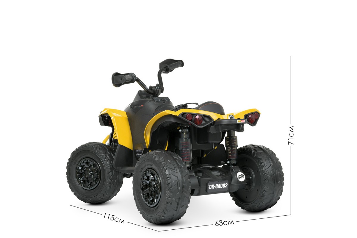 Детский электроквадроцикл BRP Can-Am Renegade (12V, полный привод, желтый) - DK-CA002-YELLOW - это крутой и стильный детский квадроцикл по лицензии компании BRP. Модель выполнена из качественных сертифицированных материалов и имеет лаконичный стильный дизайн корпуса. Такой квадроцикл будет интересен активным малышам для веселых катаний особенно по бездорожью. Детский квадроцикл BRP оснащен 4мя двигателями для лучше проходимости и хорошим усиленным аккумулятором 12 вольт 10 ампер. Так же модель удобная тем что имеет в комплекте пульт управления для родителей, с помощью которого можно легко корректировать движение малыша в случае необходимости.