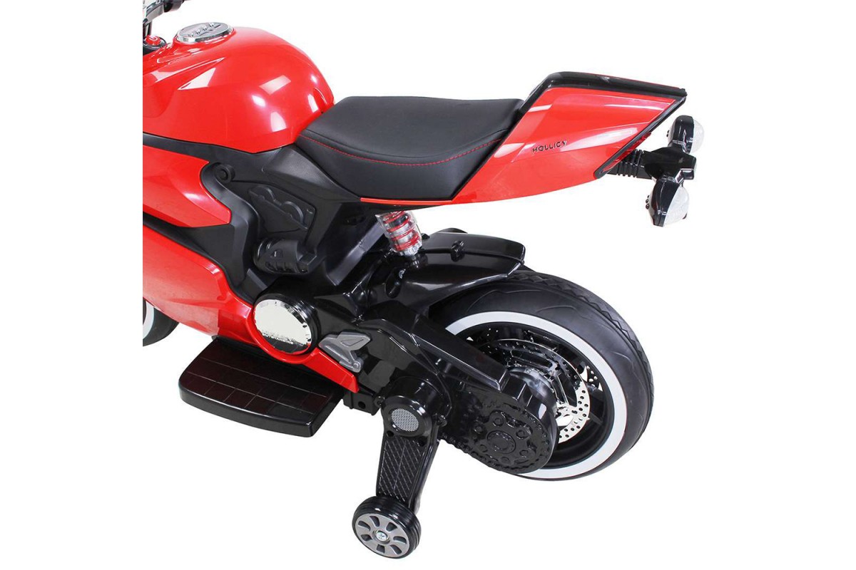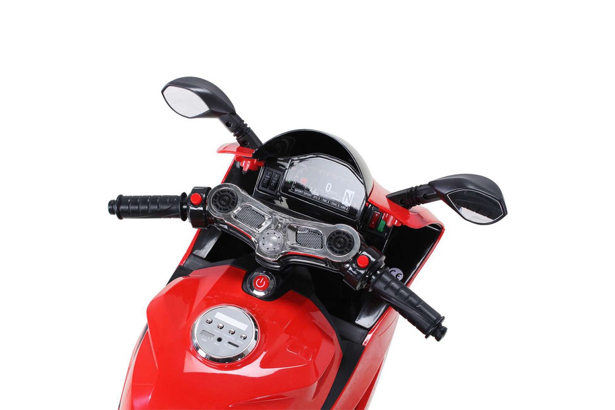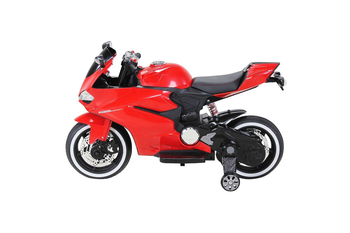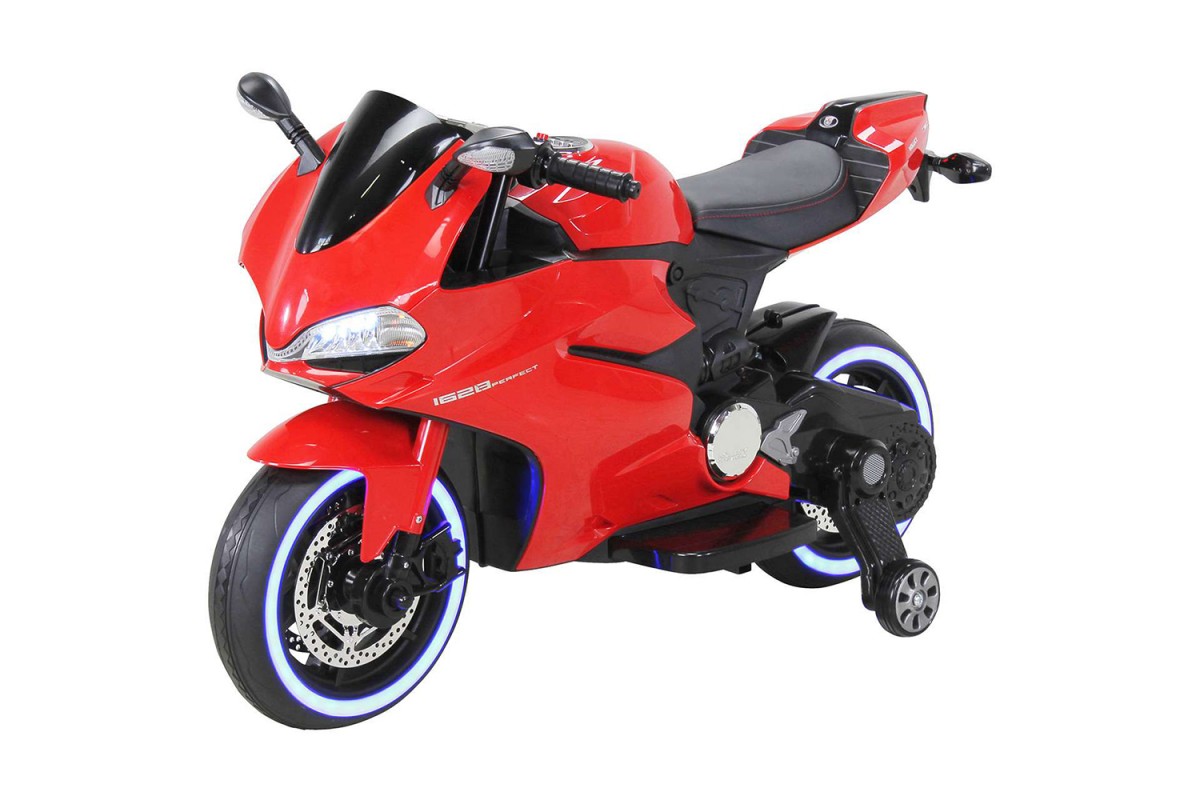 Детский электромобиль - мотоцикл Ducati Red - SX1628-G - это яркий спортивный электробайк с диодной подсветкой колес, фар, задних стопов и габаритных огней, несомненно, привлечет внимание, как детей, так и взрослых. Запоминающийся внешний вид дополнен отличным функционалом: два мотора по 35 Ватт, резиновые колеса для отличного сцепления с любым дорожным покрытием, каучуковые дополнительные боковые колесики для хорошей устойчивости, эргономичное сиденье из кожзама, амортизатор для комфортного катания, боковые зеркала и задние стопы из мягкого пластика, магнитола для прослушивания любимой музыки.