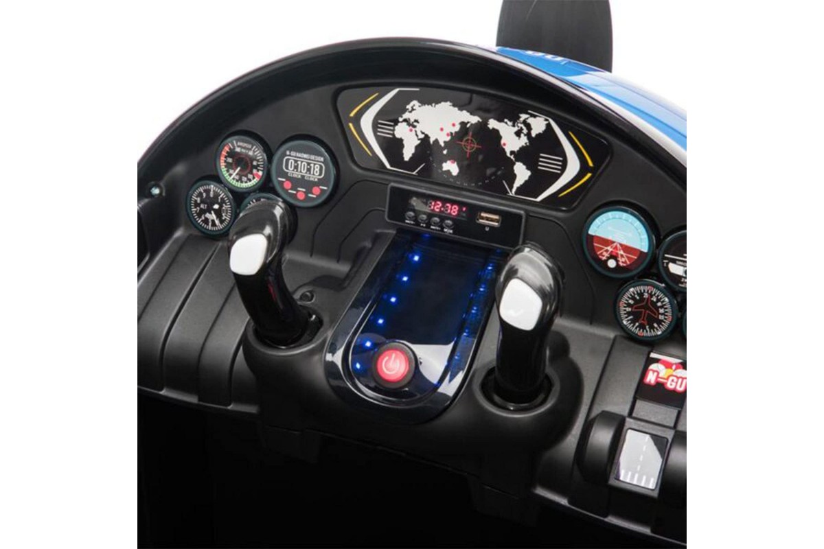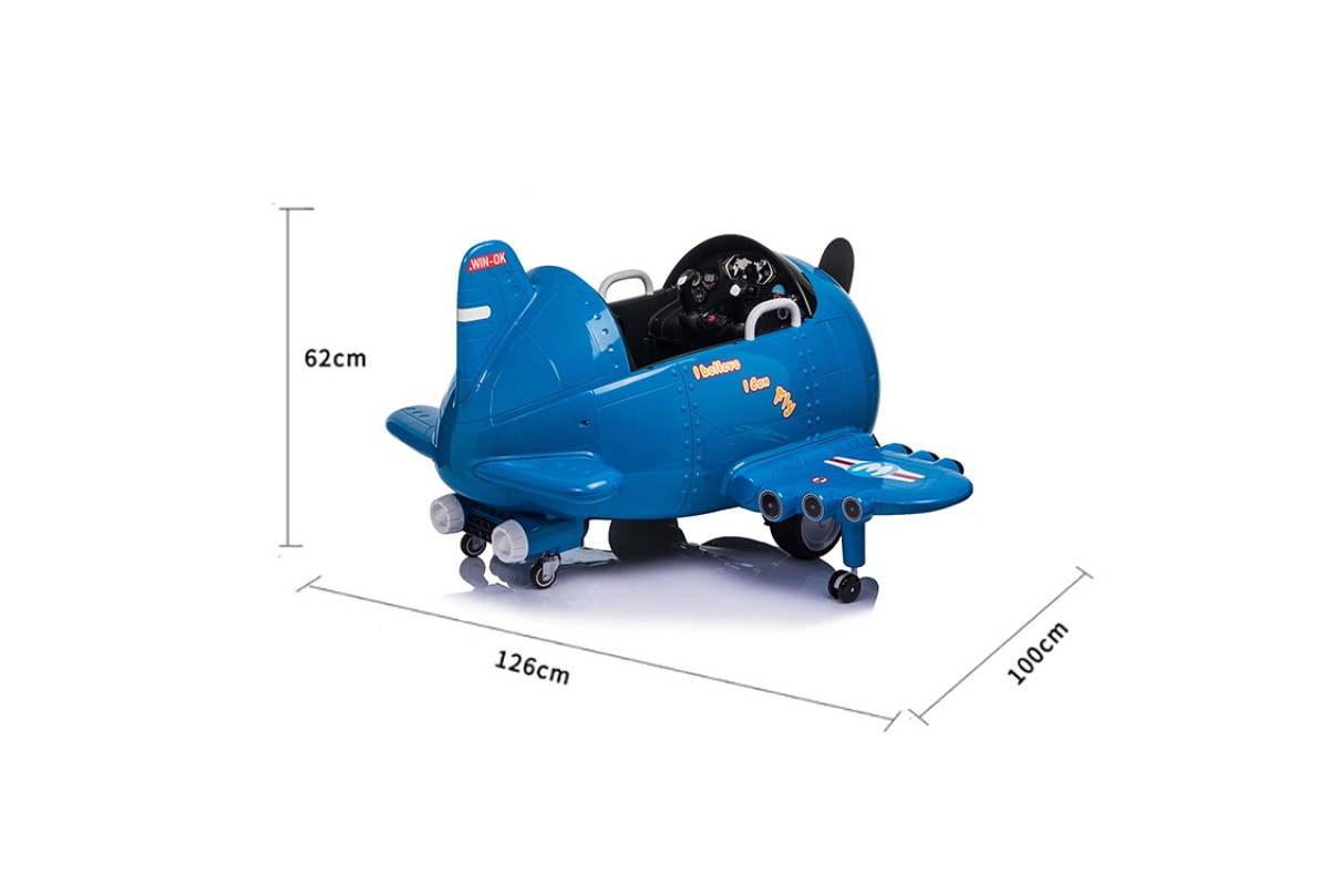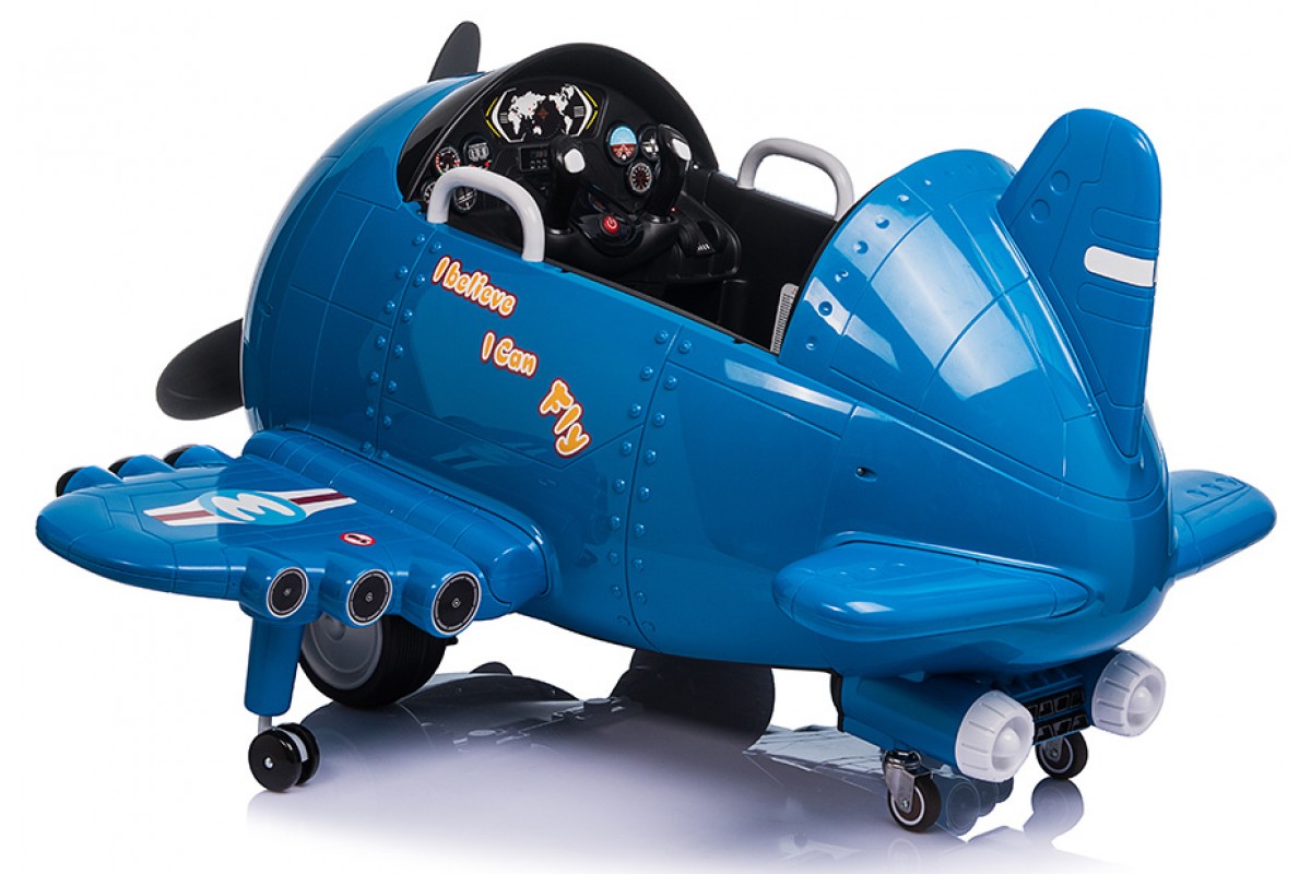 Детский электромобиль - самолет 12V - JJ20201-BLUE - это необычный детский электромобиль в виде военного самолета. Данный стильный детский электромобиль самолет с захватывающим реалистичным внешним видом и приборной панелью, а также передним пропеллером с подсветкой и электронным приводом идеально подходит для детей от 3 до 6 лет, чтобы начать свое первую полетную миссию.