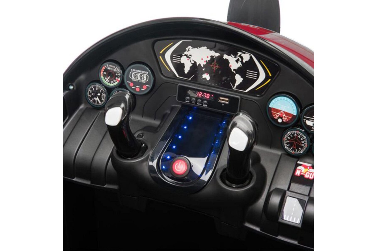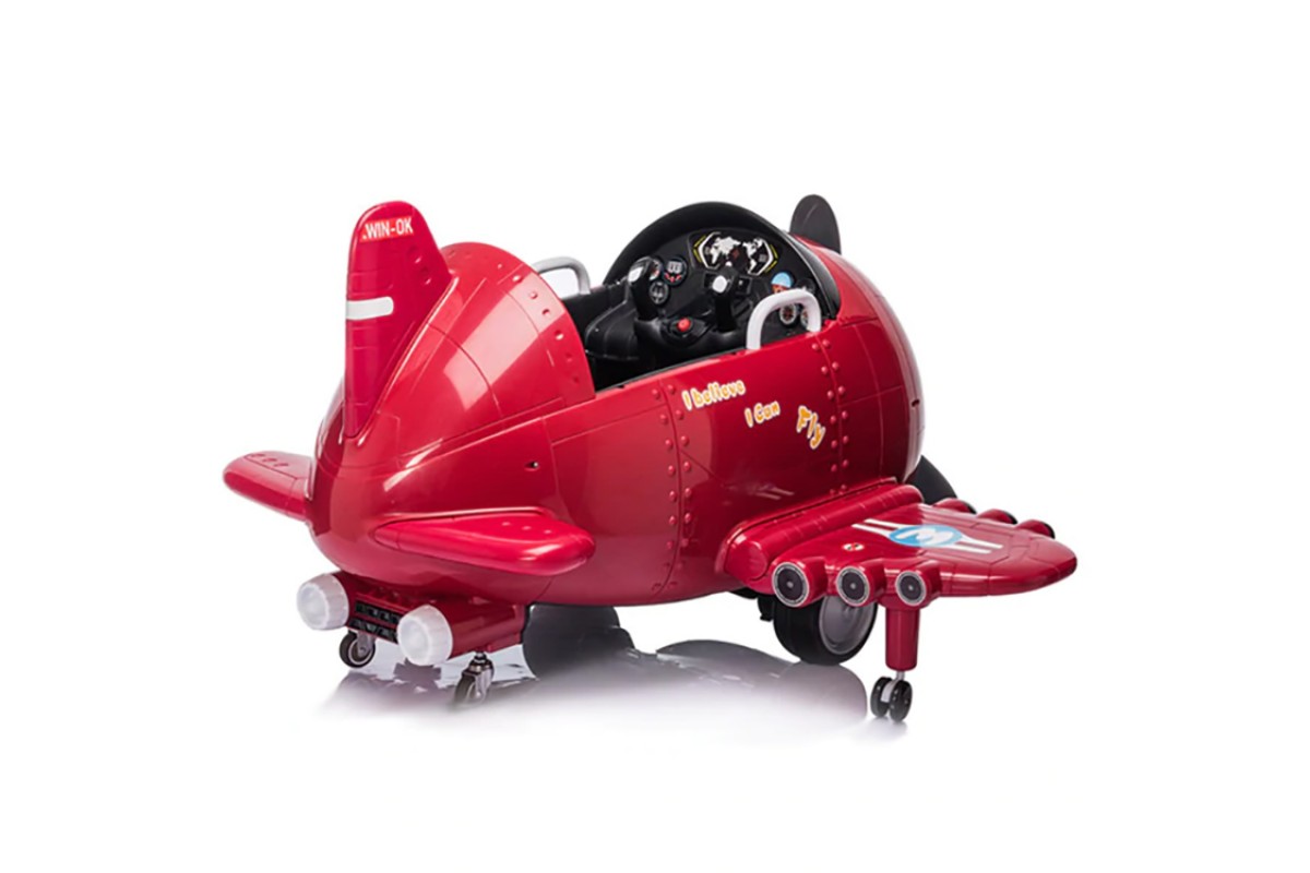 Детский электромобиль - самолет 12V - JJ20201-RED - это необычный детский электромобиль в виде военного самолета. Данный стильный детский электромобиль самолет с захватывающим реалистичным внешним видом и приборной панелью, а также передним пропеллером с подсветкой и электронным приводом идеально подходит для детей от 3 до 6 лет, чтобы начать свое первую полетную миссию.