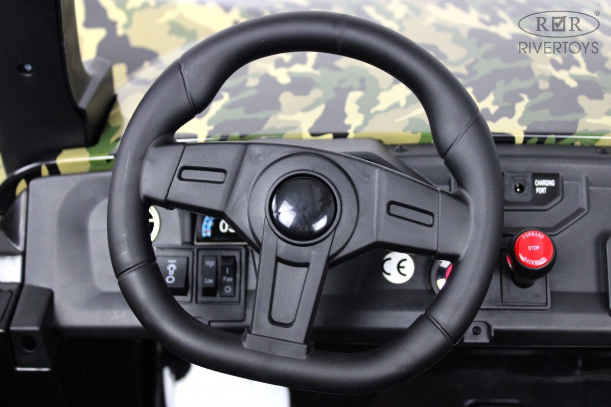 - Сидение:2-х местное, кожаное, ремень безопасности 3-х точечный - 2шт, сидение регулируется вперед/назад.