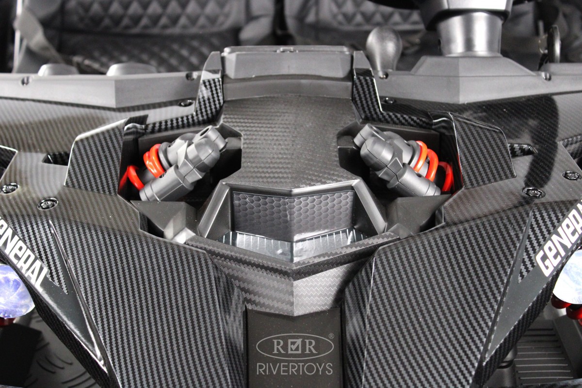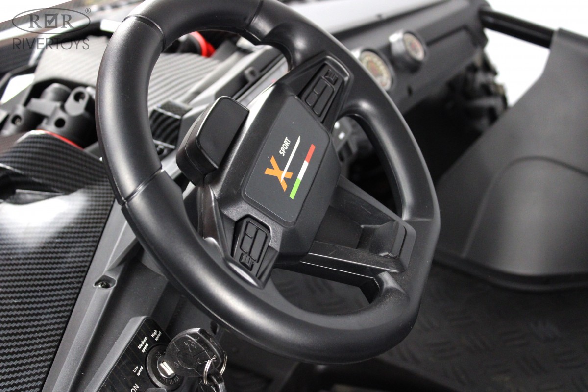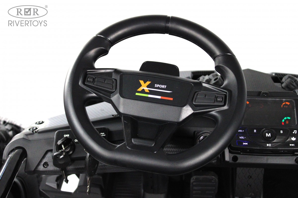 Сидение двигается вперед-назад и оснащено двухместным кожаным ремнем безопасности. Медиа-панель с USB-входом, mp3-входом, индикатором заряда батареи и Bluetooth позволяет слушать музыку и общаться с друзьями.