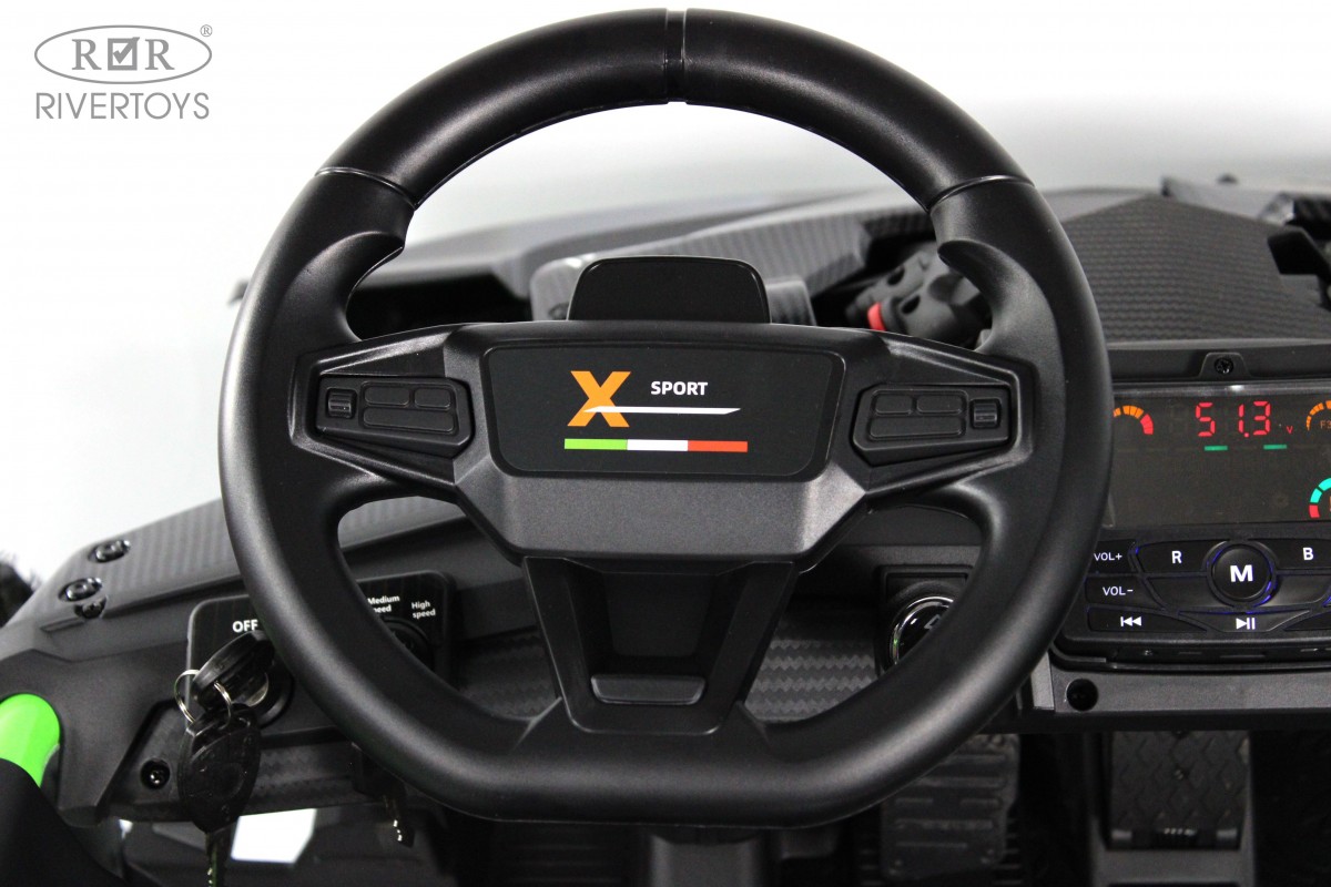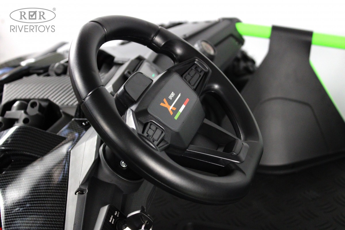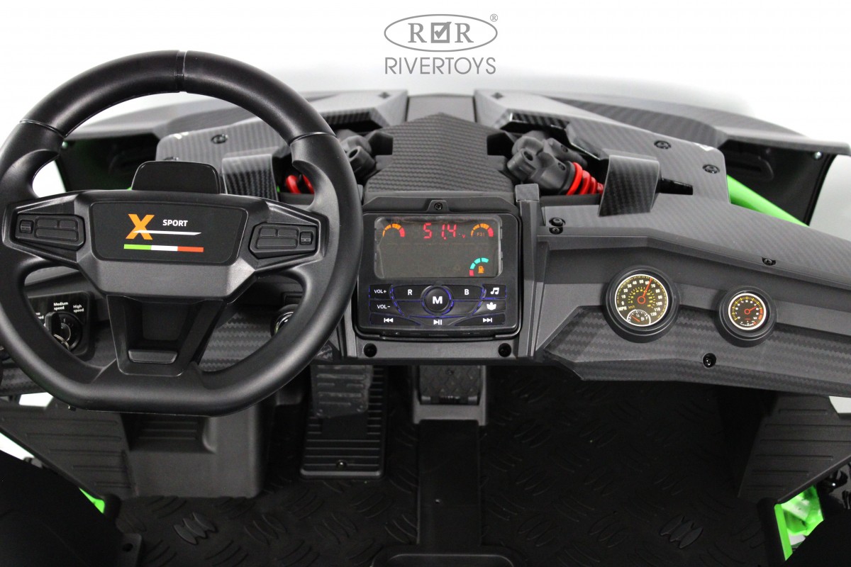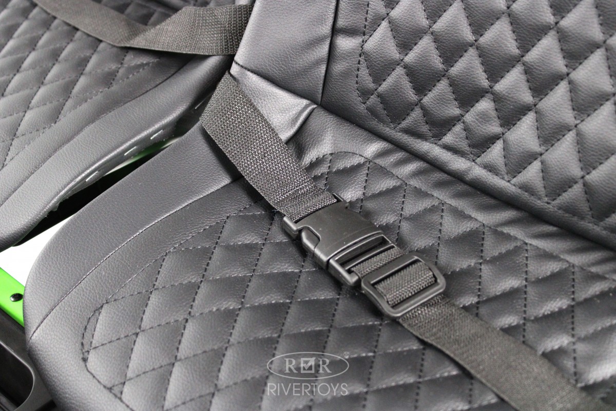 Сидение двигается вперед-назад и оснащено двухместным кожаным ремнем безопасности. Медиа-панель с USB-входом, mp3-входом, индикатором заряда батареи и Bluetooth позволяет слушать музыку и общаться с друзьями.