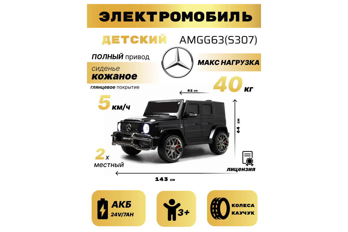 Детский полноприводный электромобиль Mercedes-AMG G63 S307-4WD (Лицензия) с дистанционным управлением - отличный детский внедорожник, копия легендарного Гелендвагена, двухместный, рассчитан на нагрузку до 40 кг. Великолепный внешний вид, яркий дизайн с множеством функций, вес машинки всего 24 кг., что очень важно для использования в городских условиях.