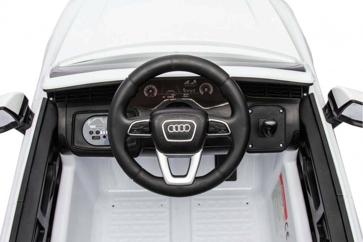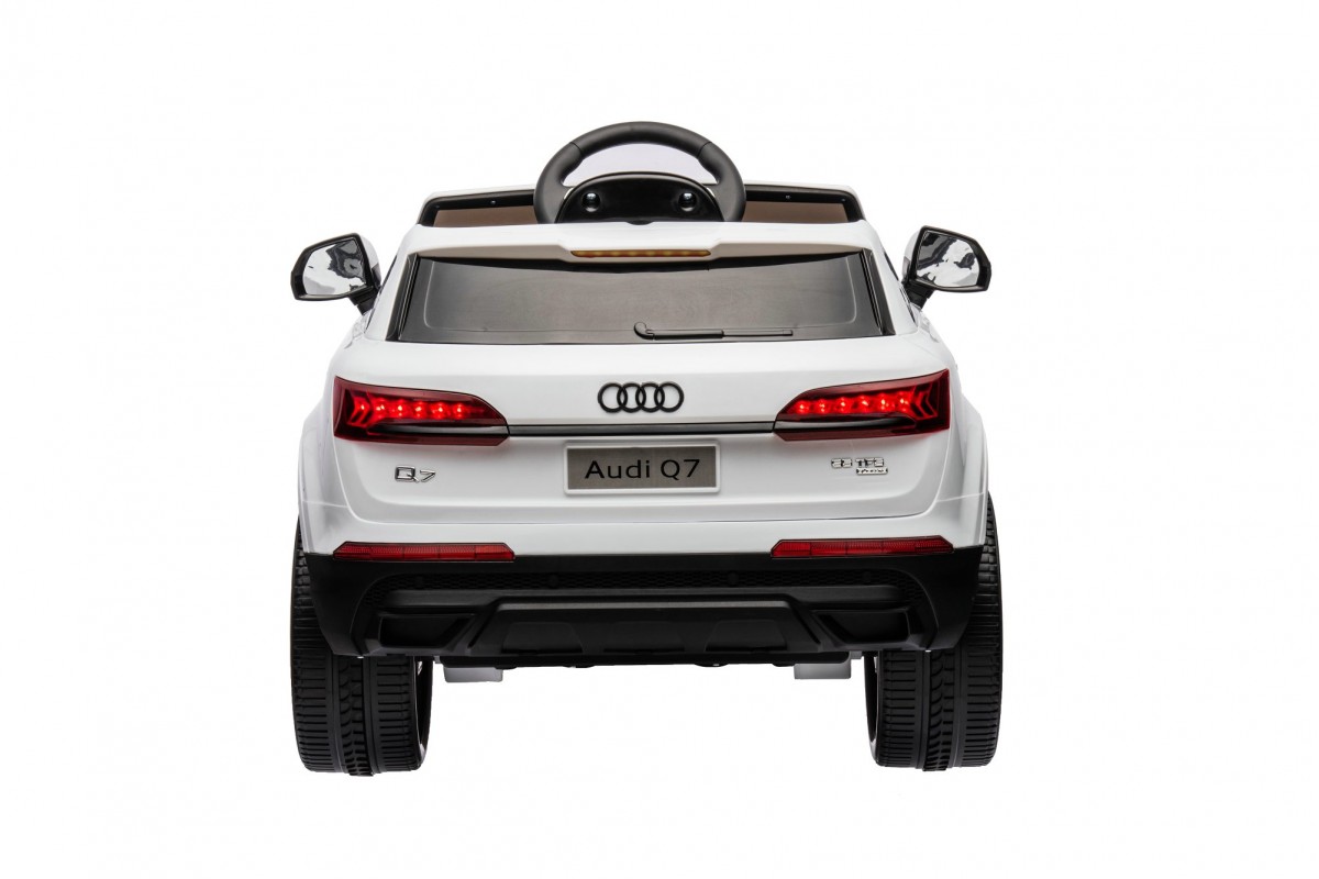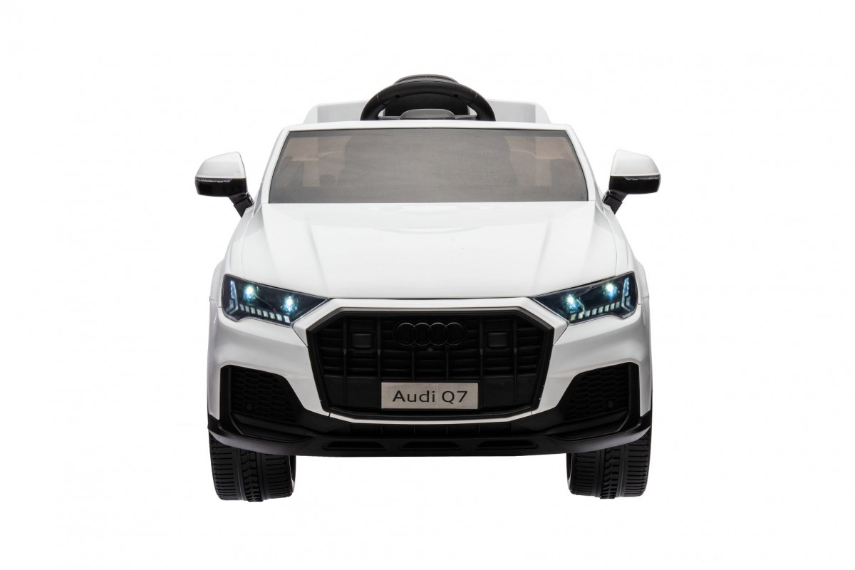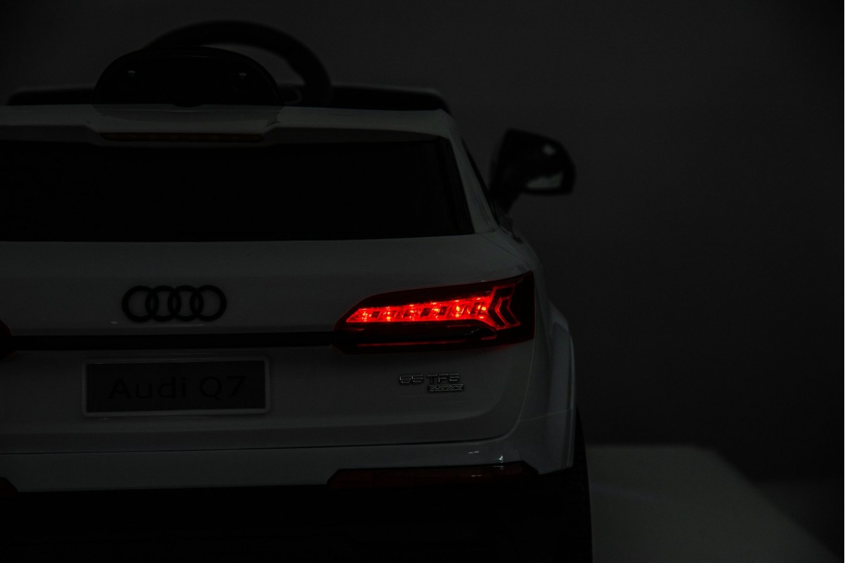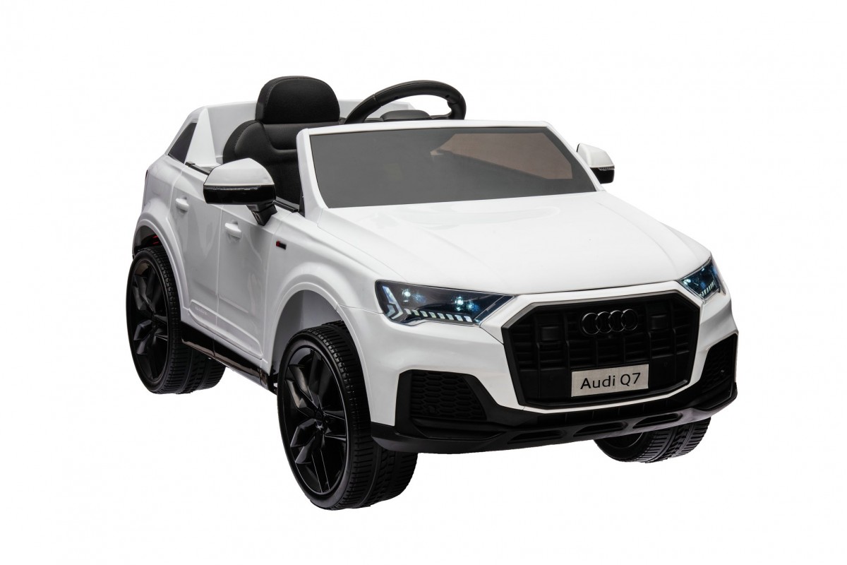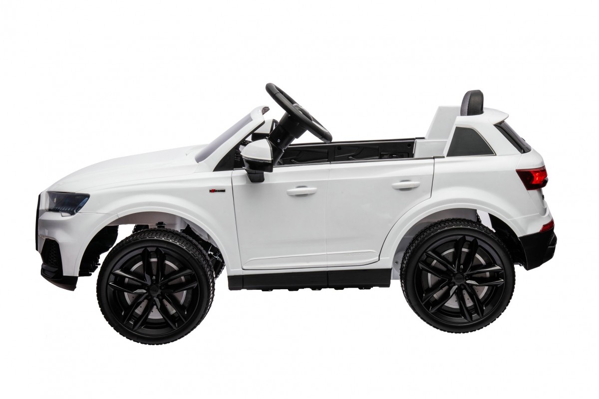 Детский электромобиль Audi Q7 12V 2WD - HL678-LUX-WHITE - это детский одноместный электромобиль AUDI Q7 по лицензии известного автоконцерна выполнен в стиле легендарной спортивной версии AUDI Q7. Двухскоростной автомобиль с пультом радиоуправления. Отличие этой модели от других – легкосъемный аккумулятор, мягкие резиновые колеса, встроенная магнитола с bluetooth, сиденье из перфорированной черной экокожи и пульт управления 2.4G.