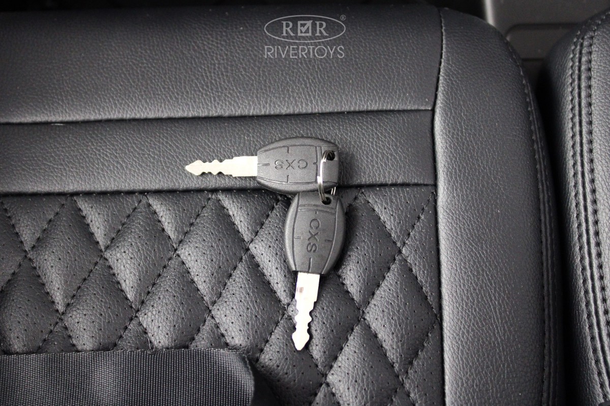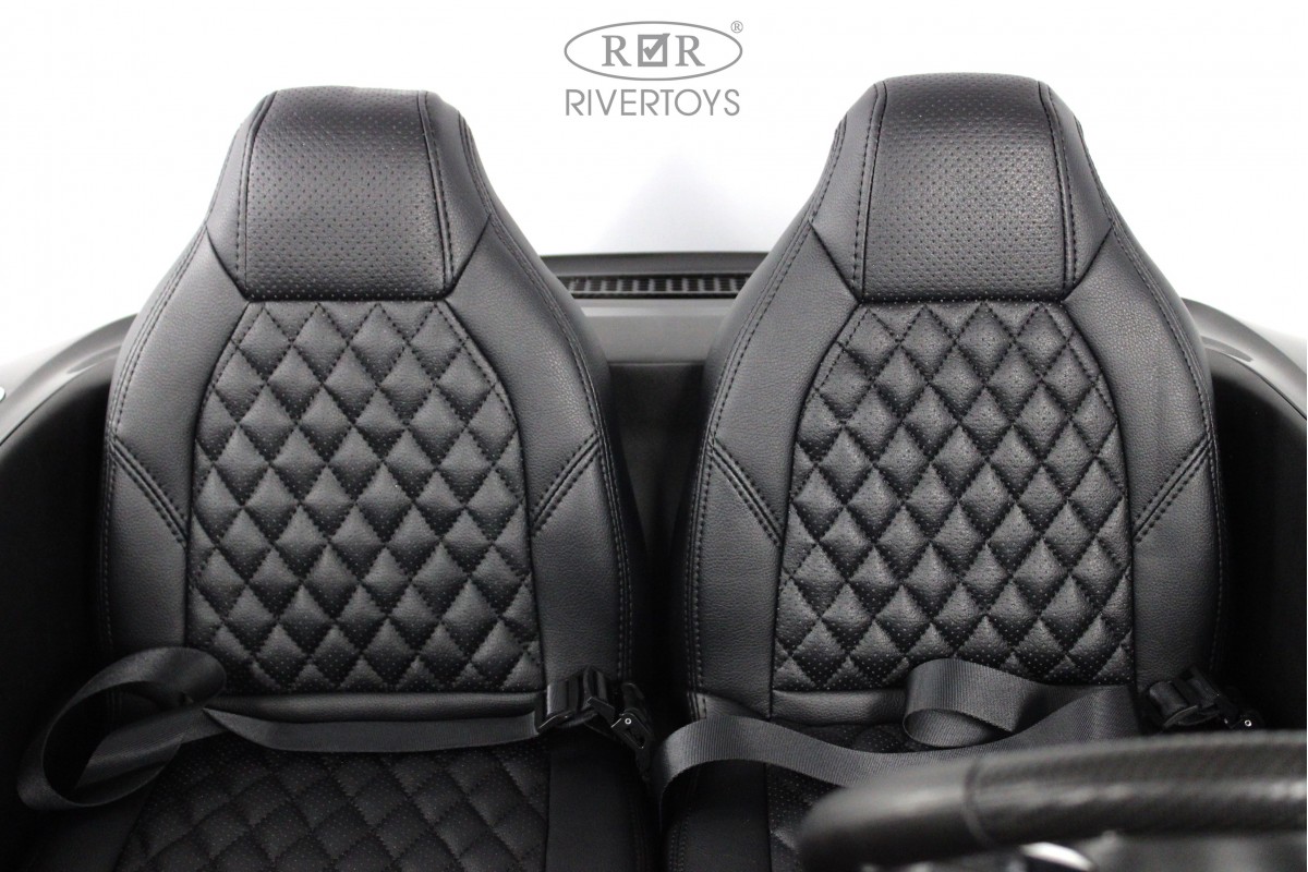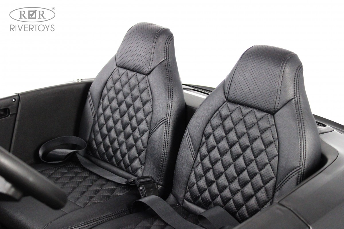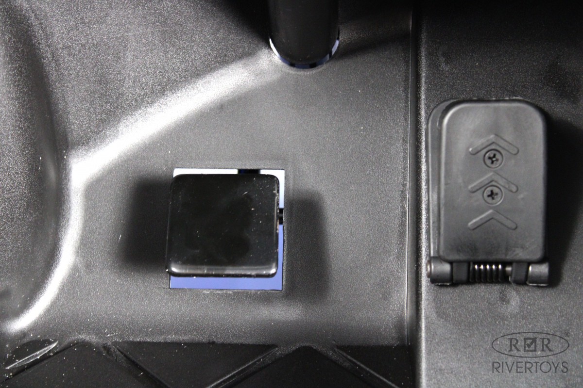 Электромобиль оснащен двумя сиденьями, выполненными из эко-кожи. Они могут двигаться вперед и назад, что позволяет ребенку самостоятельно выбирать удобное положение. Также предусмотрены ремни безопасности, которые фиксируются сбоку.