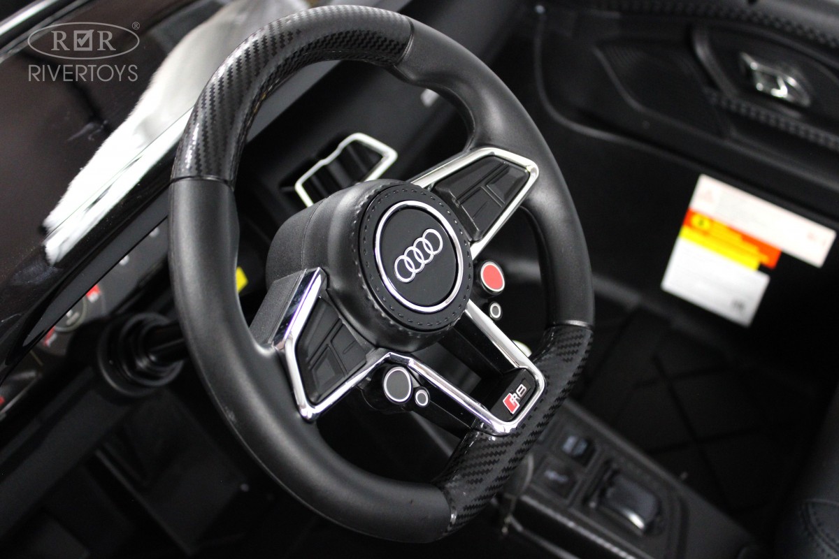 Детский электромобиль AUDI R8 (M333MM) - это лицензионная модель, которая представляет собой точную копию настоящего автомобиля. Он выполнен в белом цвете, что придает ему стильный и современный вид.