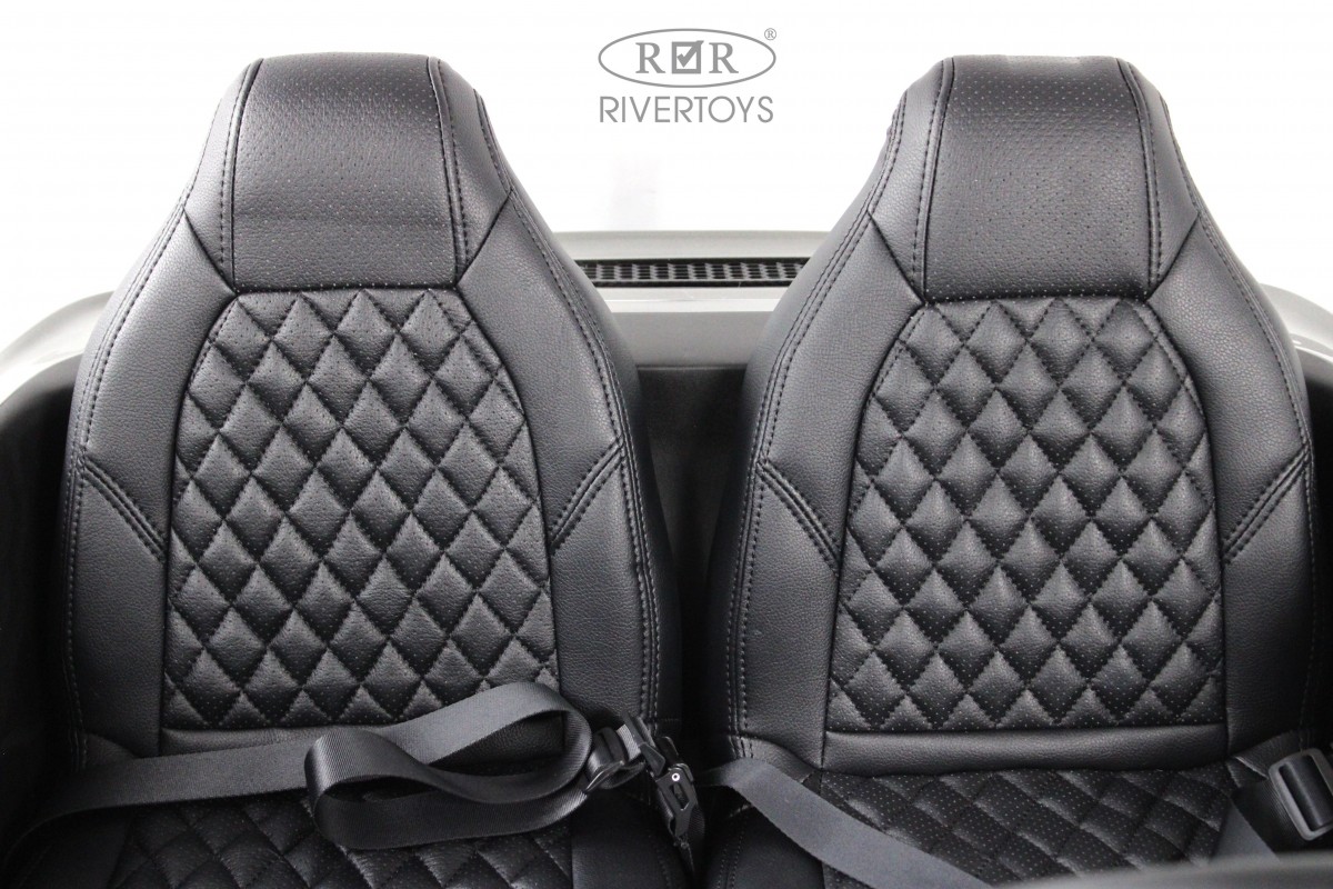 Электромобиль оснащен двумя сиденьями, выполненными из эко-кожи. Они могут двигаться вперед и назад, что позволяет ребенку самостоятельно выбирать удобное положение. Также предусмотрены ремни безопасности, которые фиксируются сбоку.