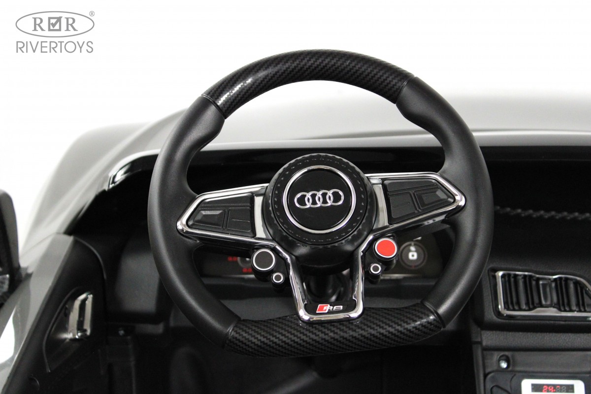 Детский электромобиль AUDI R8 (M333MM) - это лицензионная модель, которая представляет собой точную копию настоящего автомобиля. Он выполнен в белом цвете, что придает ему стильный и современный вид.