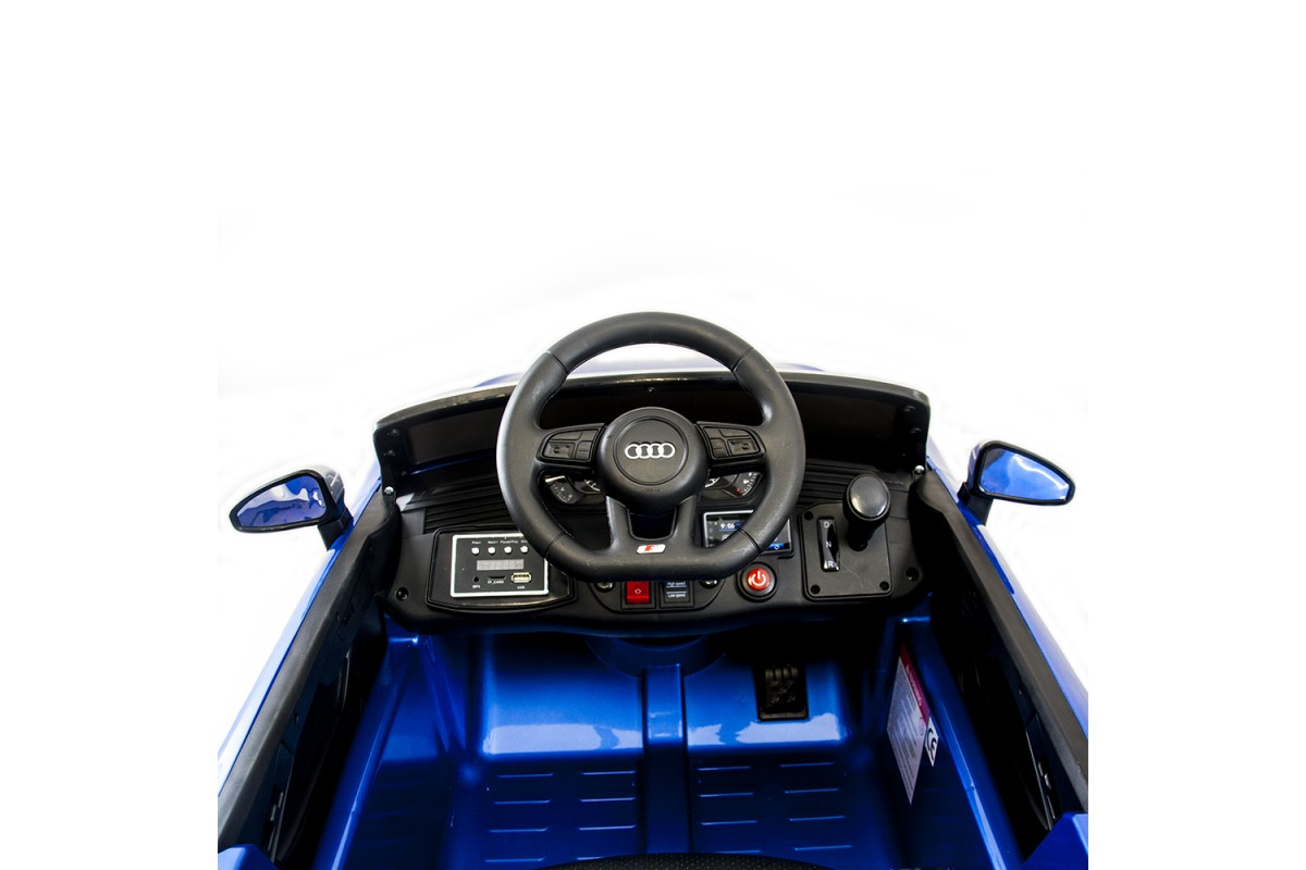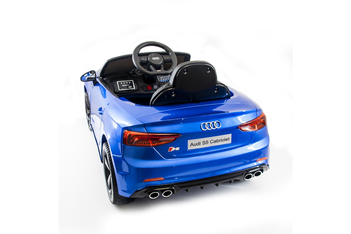 Детский электромобиль Audi S5 Cabriolet LUXURY 2.4G - Blue - HL258-LUX - это детский одноместный электромобиль AUDI S5 по лицензии известного автоконцерна выполнен по стилю легендарной спортивной версии AUDI S5 Cabriolet. Двухскоростной автомобиль с пультом радиоуправления, у него открываются боковые двери. Отличие этой модели от других – мягкие резиновые колеса, встроенная магнитола, сиденье из перфорированной черной экокожи и пульт управления 2.4G.