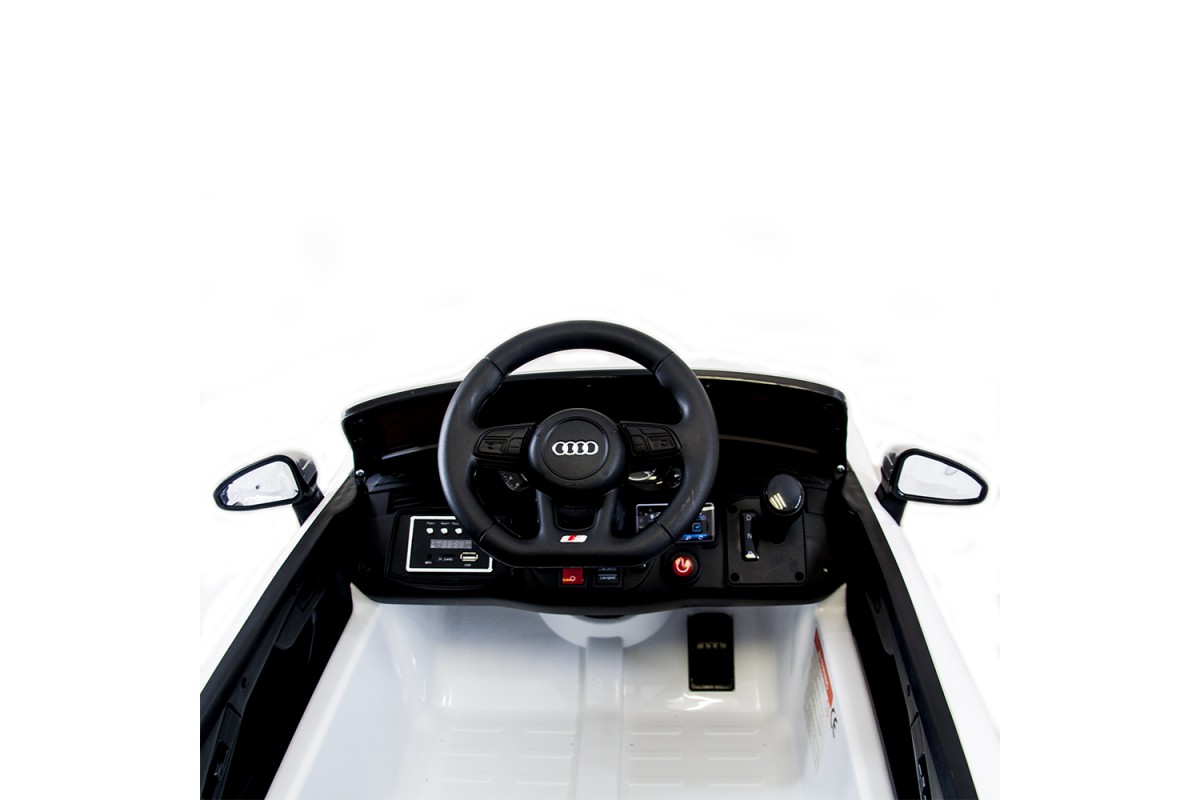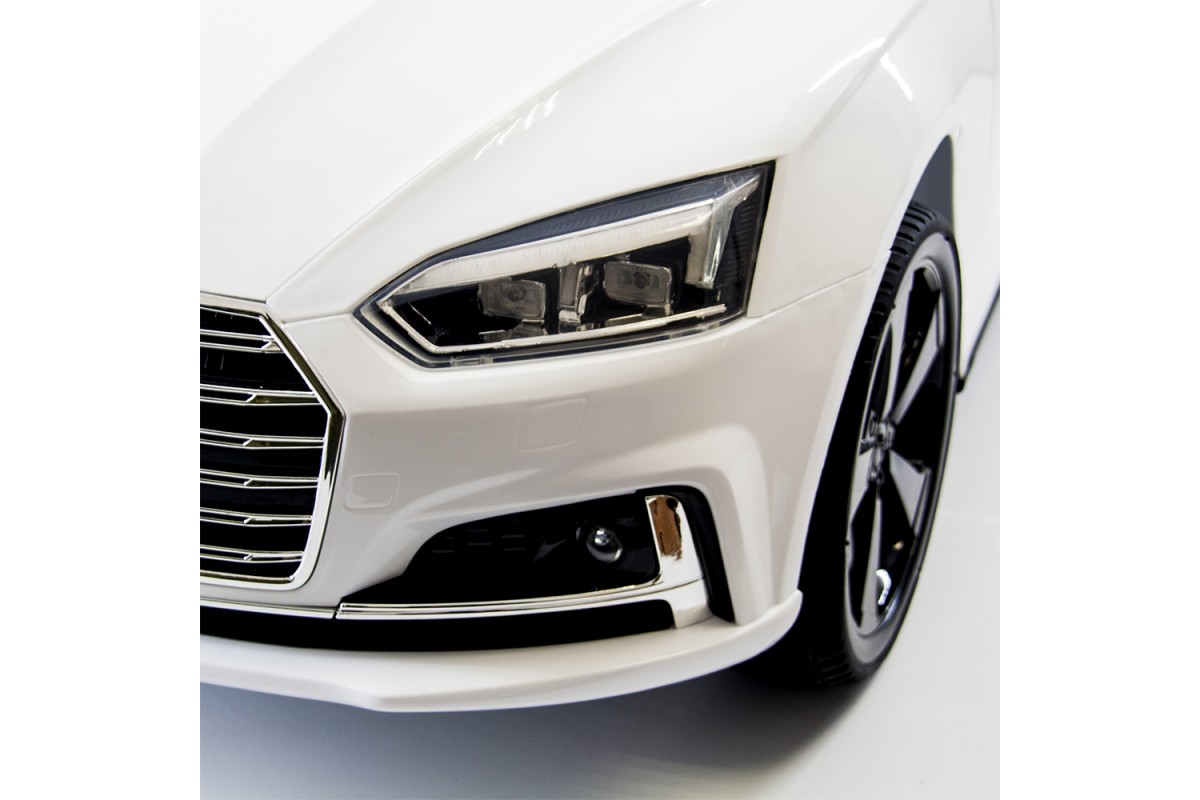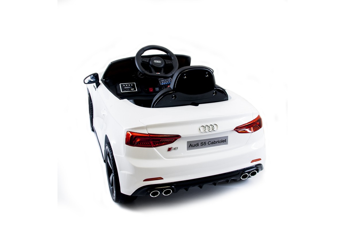 Детский электромобиль Audi S5 Cabriolet LUXURY 2.4G - White - HL258-LUX-W - это детский одноместный электромобиль AUDI S5 по лицензии известного автоконцерна выполнен по стилю легендарной спортивной версии AUDI S5 Cabriolet. Двухскоростной автомобиль с пультом радиоуправления, у него открываются боковые двери. Отличие этой модели от других – мягкие резиновые колеса, встроенная магнитола, сиденье из перфорированной черной экокожи и пульт управления 2.4G.