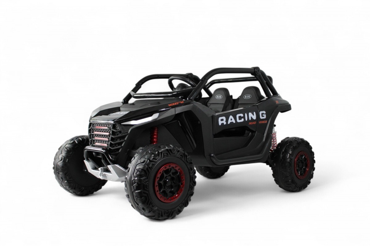 P777BP с дистанционным управлением. Двухместный Полноприводный Световые эффекты: фары передние, задние (включается отдельной кнопкой) Пульт управления: индивидуальный (настраивается по Bluetooth), от батареек 2шт 1.5v AAА Амортизаторы: да, задние Колеса: каучуковые Скорость: вперед/назад, коробка автомат, 3-8 км/ч Сидение: 2шт эко-кожа, Ремень безопасности: 2шт - 3-х точечный Включение: кнопка Переключение 2WD/4WD: да Верхние дуги: откидываются Медиа-панель: USB-вход, SD-вход, AUX, индикатор заряда батареи, FM Особенности модели: коврик в комплекте Размер собранной модели: 143*83*75 см Вес собранного изделия: 31 кг Максимальная нагрузка: 35 кг Аккумулятор: 24V/7Ah Редуктор: 4шт*24V/12 000об 550