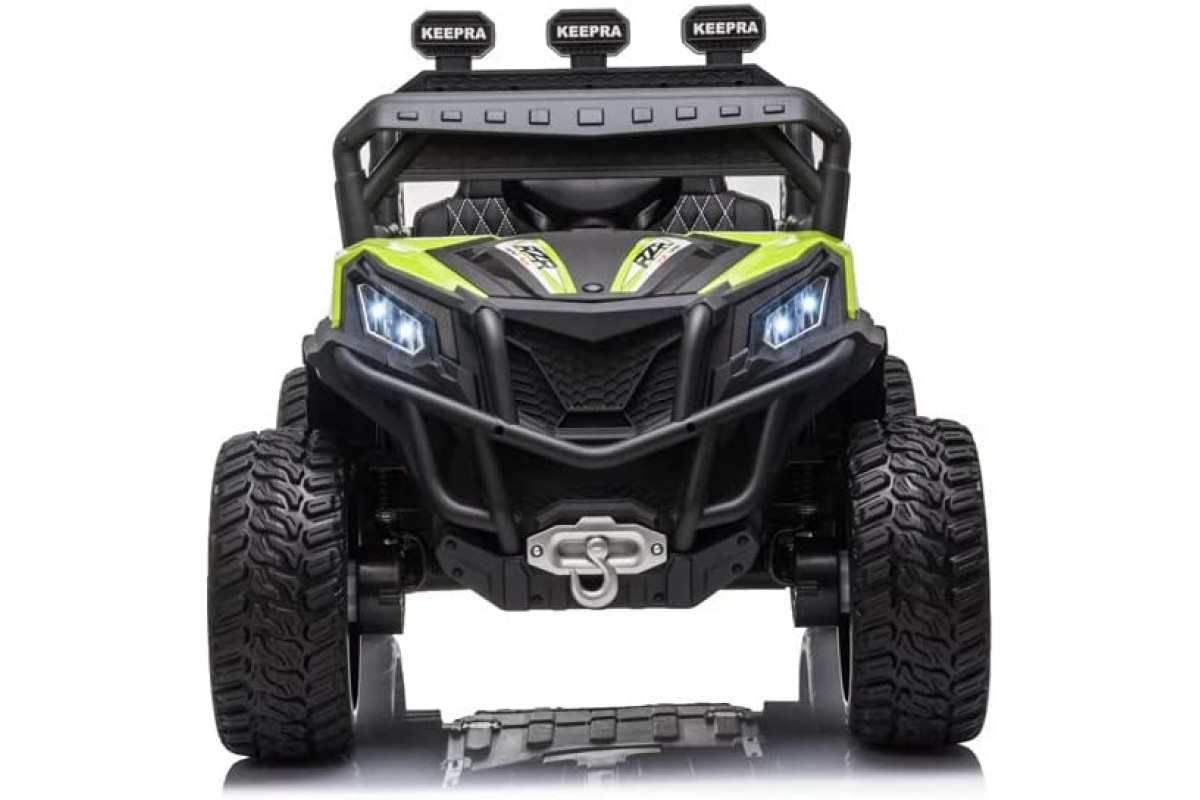 Модель оснащена так же каучуковыми колесами, креслом из эко кожи, пультом для родителей. Из декоративных и развлекательных элементов модель имеет подсветку фар и встроенную магнитолу для прослушивания штатных мелодий или музыки с флеш карты.