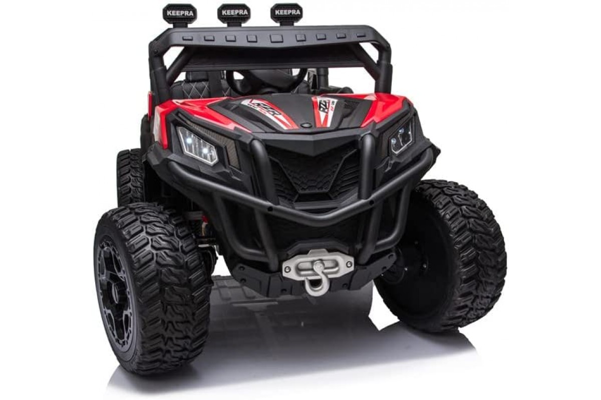 Модель оснащена так же каучуковыми колесами, креслом из эко кожи, пультом для родителей. Из декоративных и развлекательных элементов модель имеет подсветку фар и встроенную магнитолу для прослушивания штатных мелодий или музыки с флеш карты.