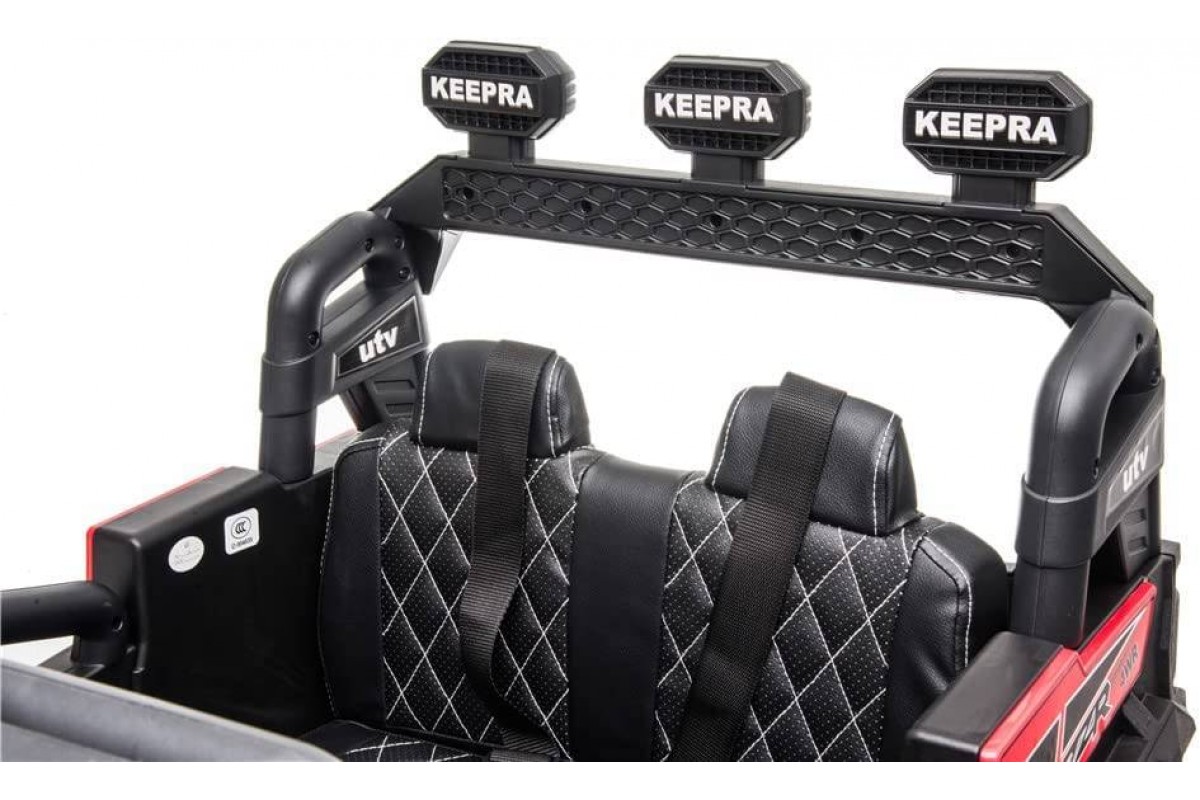 Модель оснащена так же каучуковыми колесами, креслом из эко кожи, пультом для родителей. Из декоративных и развлекательных элементов модель имеет подсветку фар и встроенную магнитолу для прослушивания штатных мелодий или музыки с флеш карты.