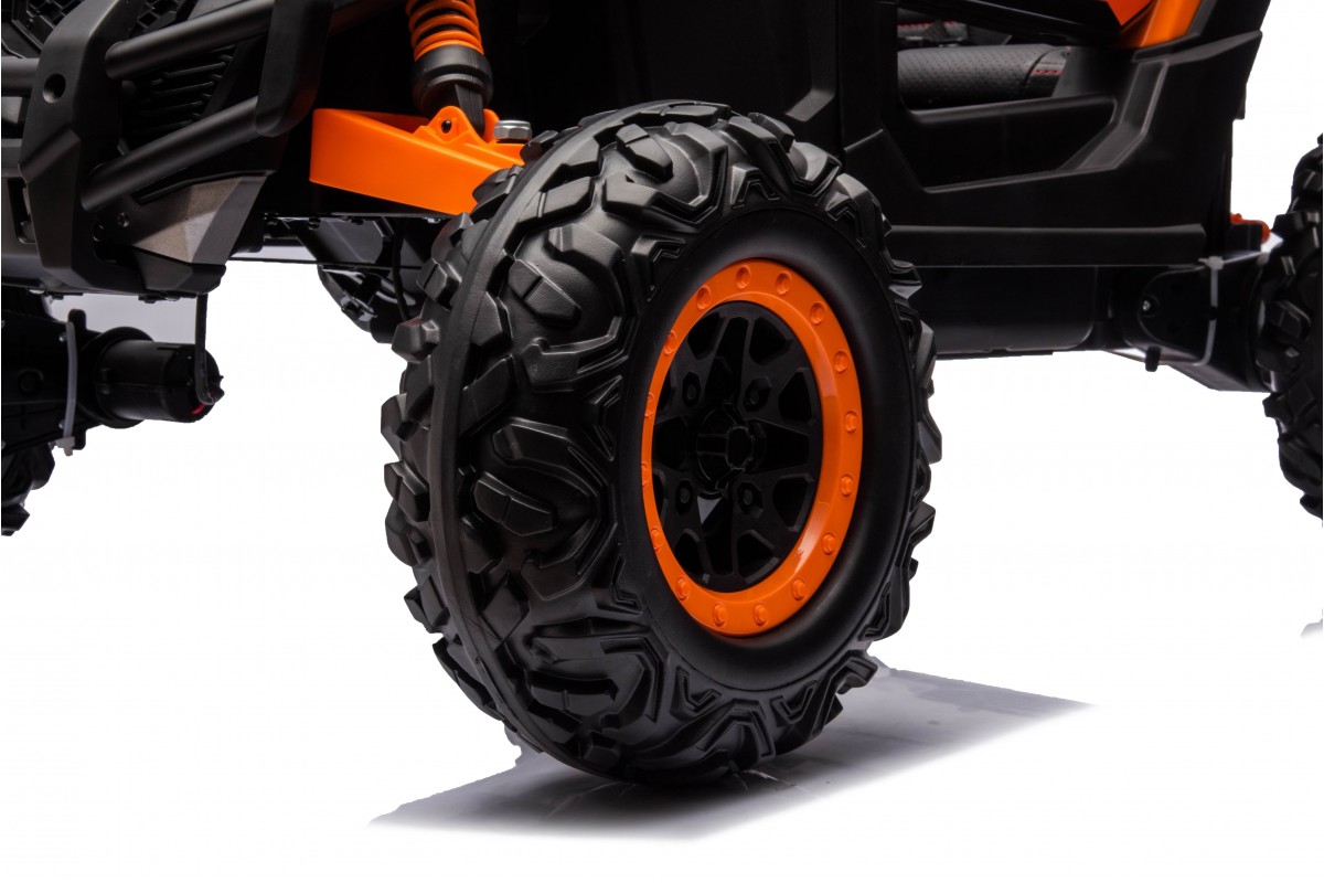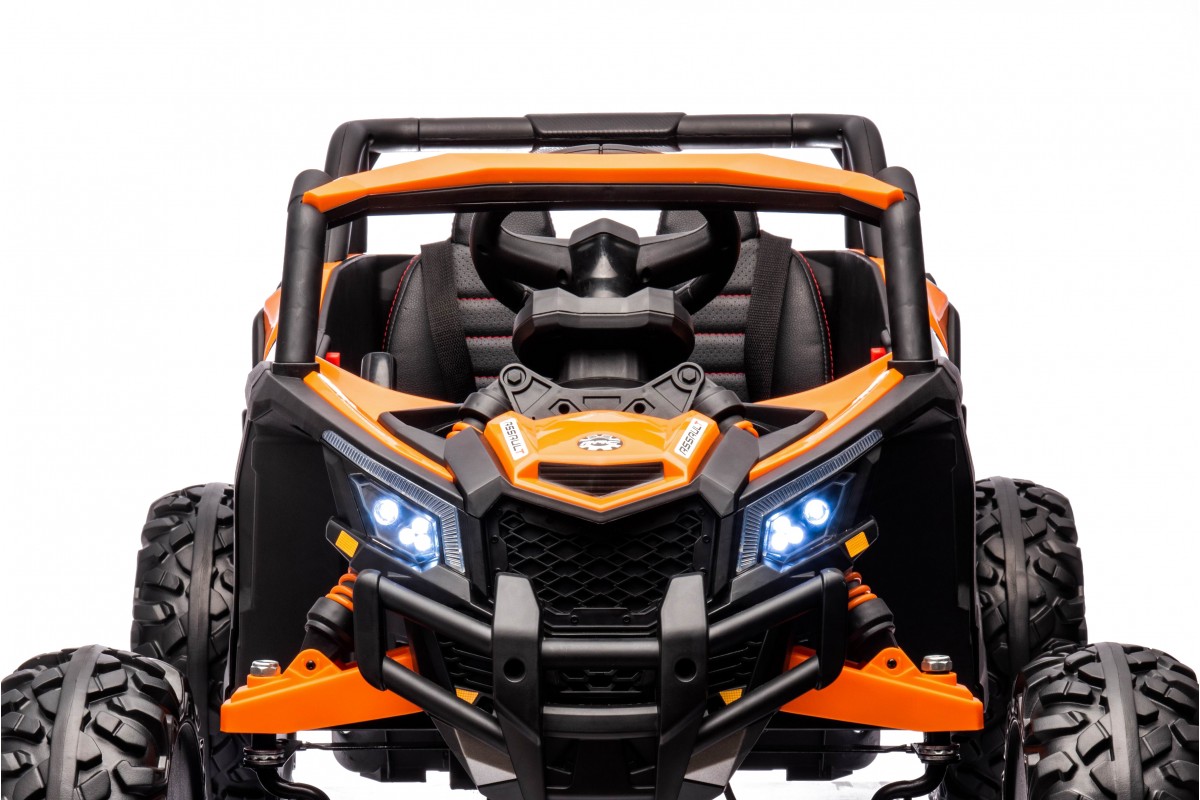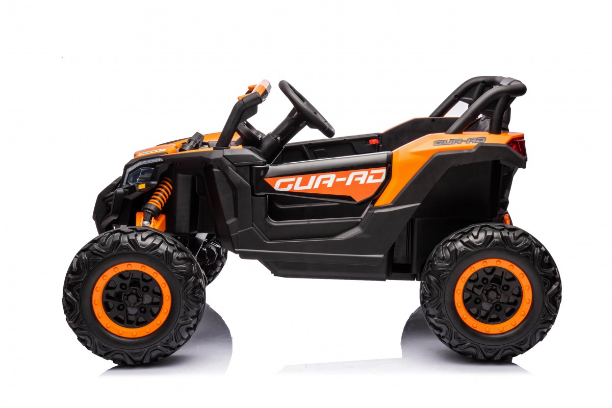 Детский электромобиль Багги (полный привод, EVA, 24V) - JH105-ORANGE - это абсолютный лидер на рынке детских машинок в категории багги. Модель на столько необычная, мощная и стильная. Ваш юный водитель будет в абсолютном восторге от такого внедорожника! Buggy JH105 современная модификация оснащенная мощным 24 вольтовым аккумулятором. На багги установлены 4 двигателя по 200 ватт каждый, благодаря которым модель может с лёгкостью будут преодолевать дорожные неровности и катать малыша с ветерком. Особенностью модели является более высокая скорость движения, модель разгоняется примерно до 9 км/ч и особенно будет интересна уж опытным в вождении малышам, или смелым и активным водителям. Buggy JH105 имеет полную амортизацию подвески, высокий клиренс и все необходимое для комфортной езды. Так же в модели продумана кучка для транспортировки реализованная в виде ленты. Купив такой электромобиль Вы и Ваш малыш получите неописуемое удовольствие, и абсолютно точно Buggy JH105 будет радовать Вас не один год!
