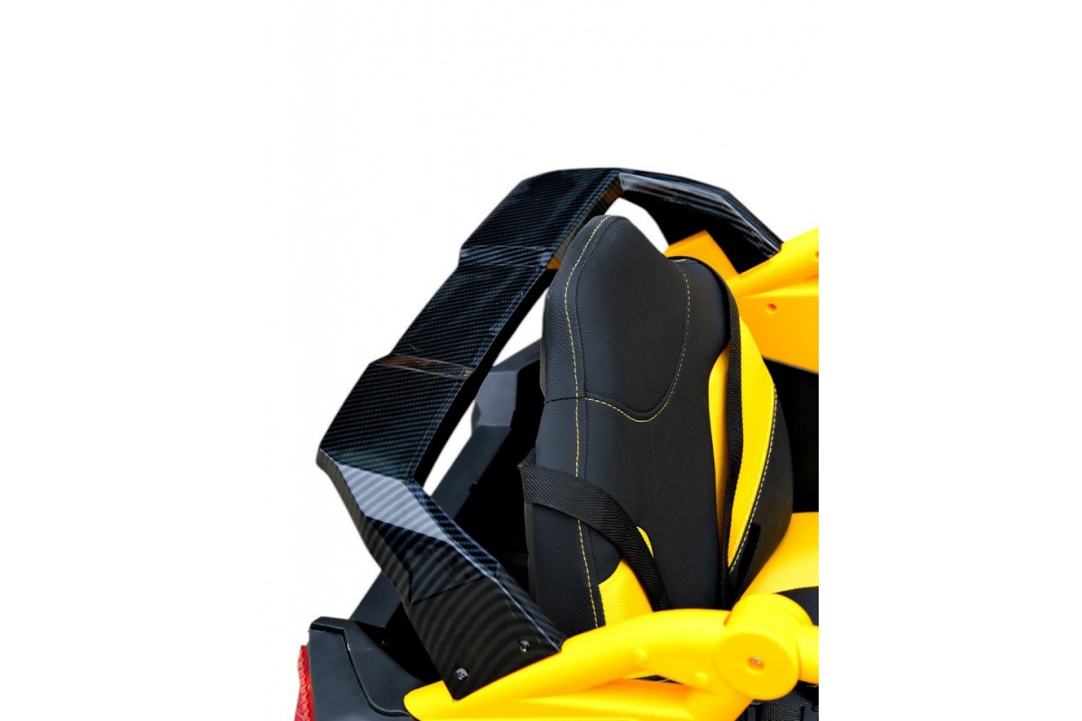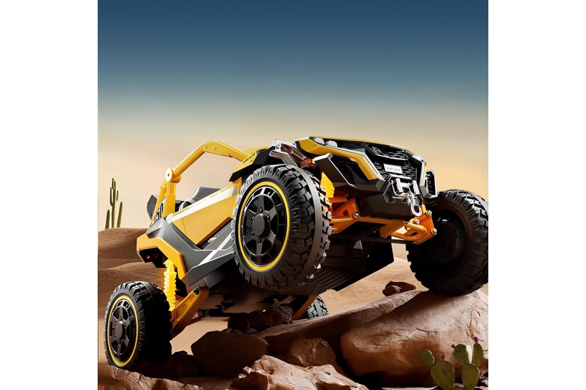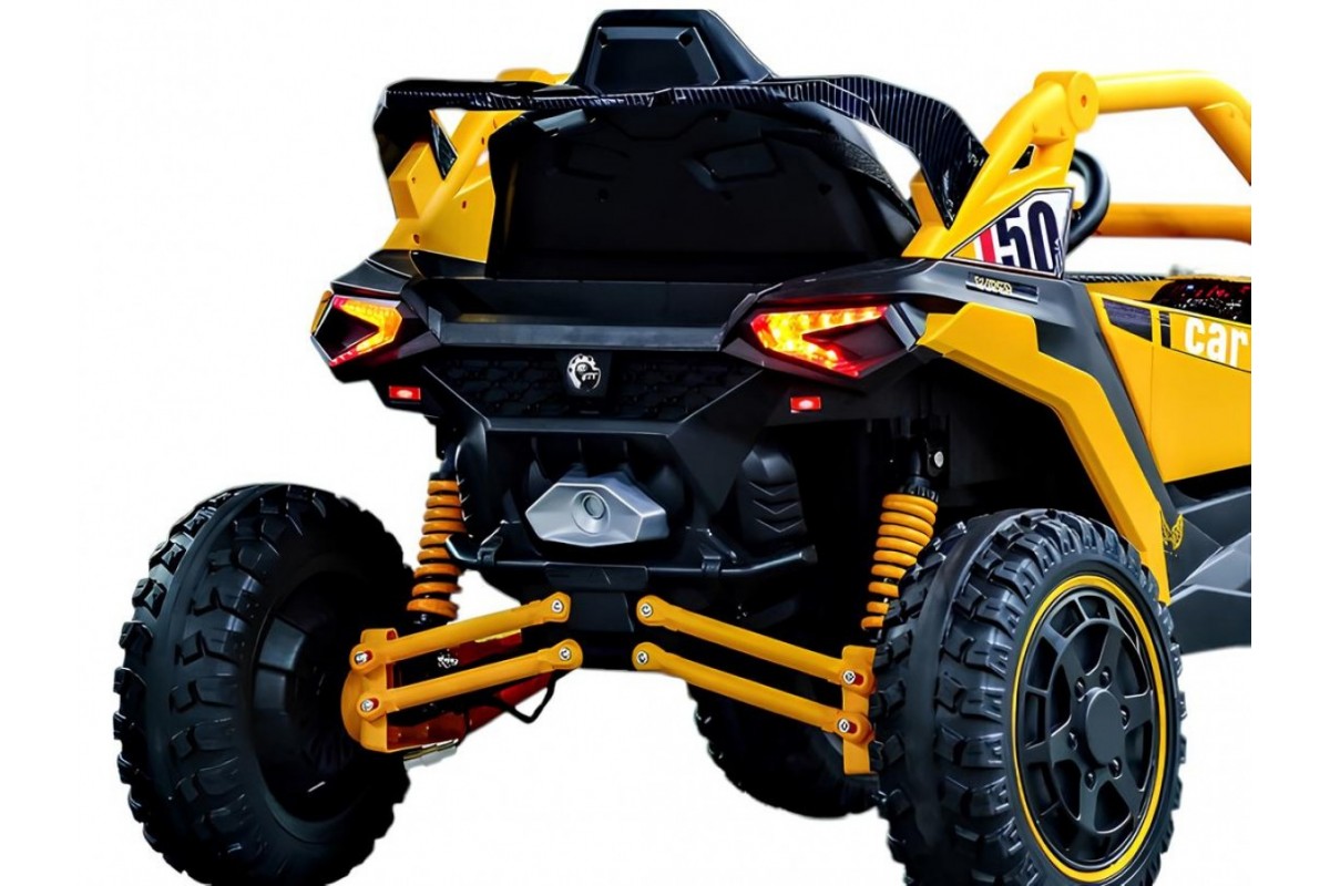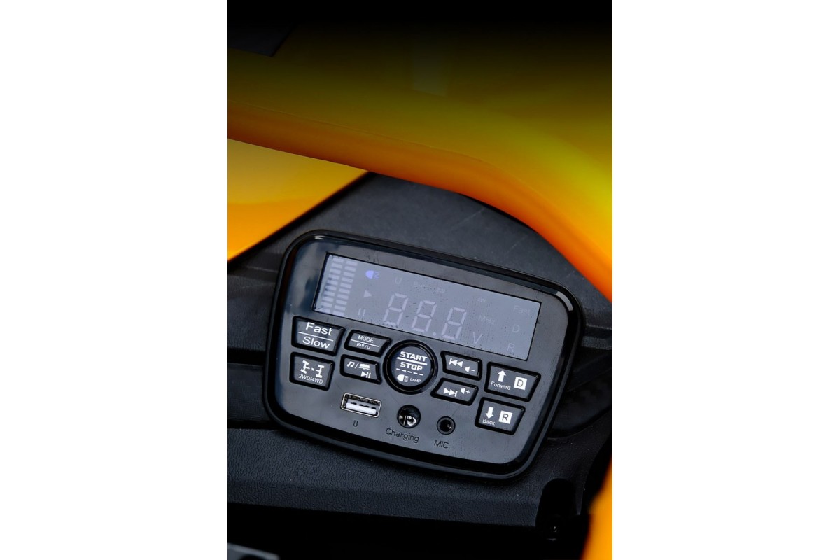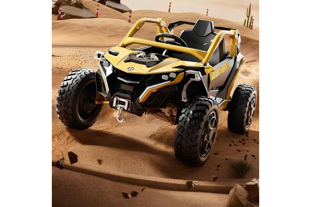 Багги имеет обширный функционал, который сделает незабываемыми, впечатления юного гонщика. Машинка умеет разгонятся до 11 км/ч., за счёт двигателей, встроенных прямо в колеса. Скорость регулируется как с пульта д.у., так и с торпеды авто, специальным переключателем. Имеется педаль газа и педаль тормоза. Остановить машинку можно с пульта, или же отпустив педаль газа, при этом педаль тормоза можно не использовать, она больше нужна для развития навыков управления у малыша.
