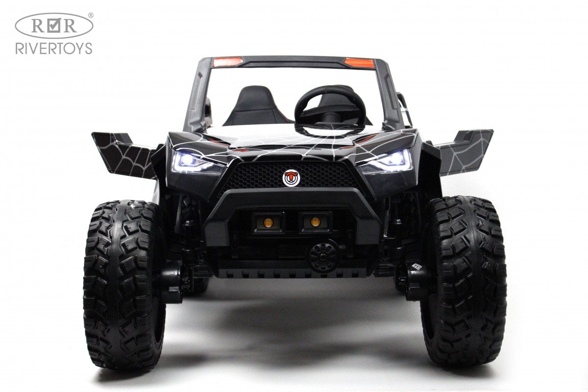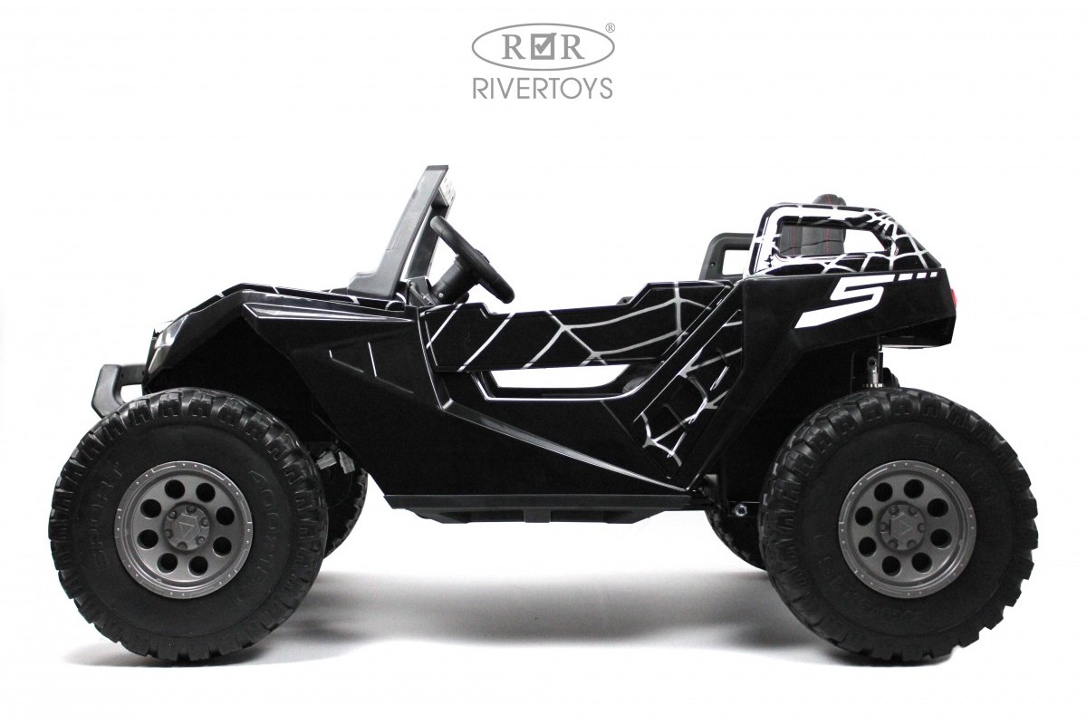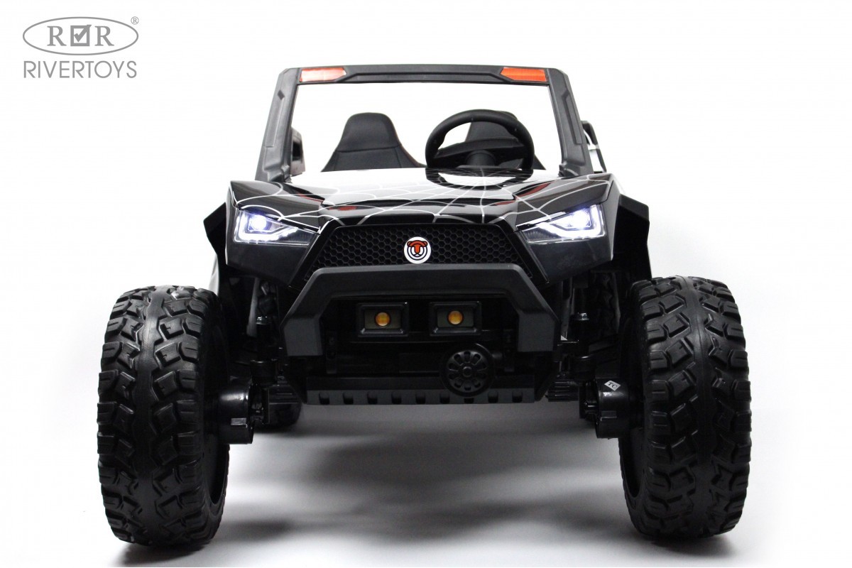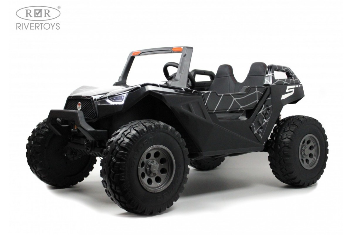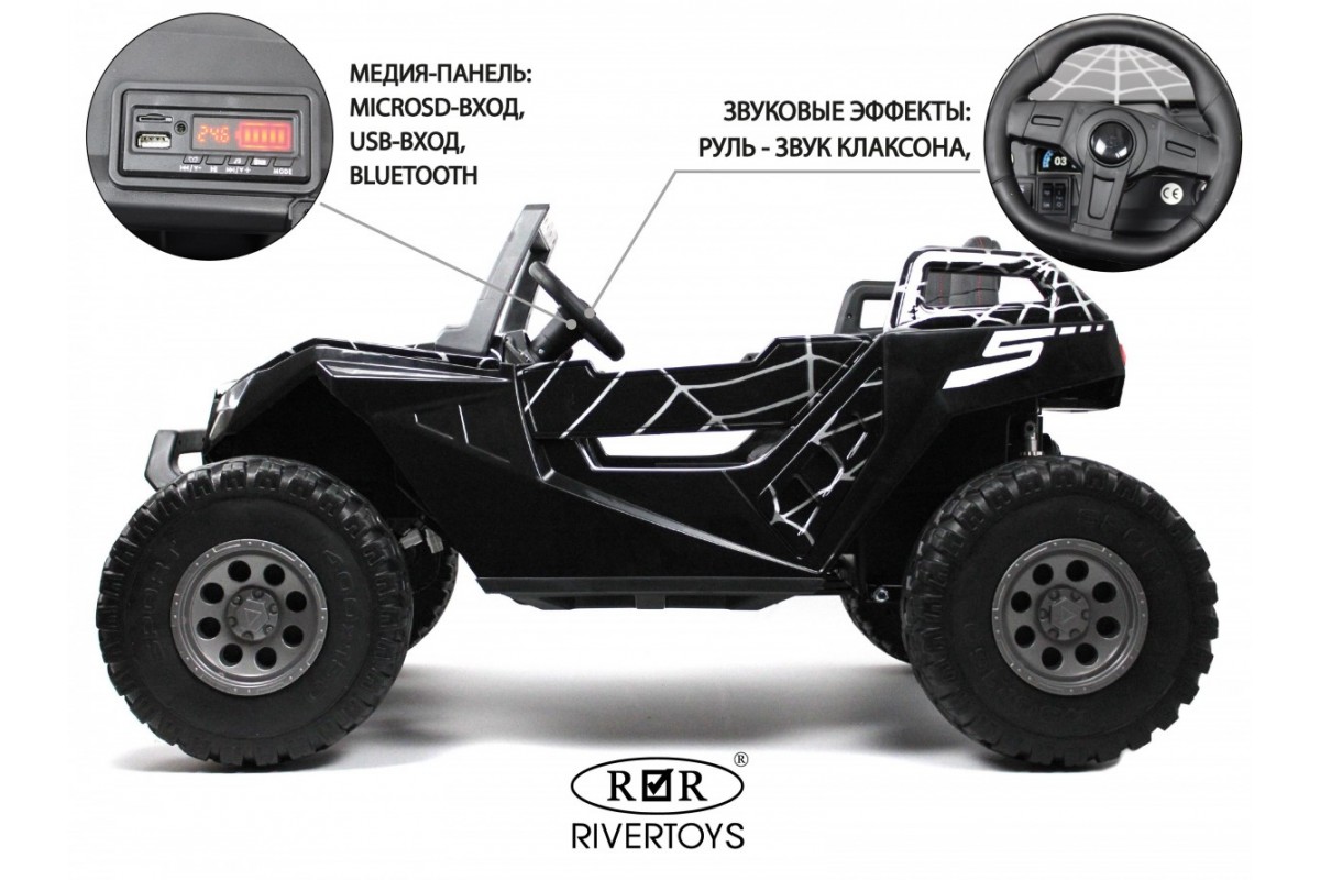 RiverToys Buggy 4WD A707AA – большой полноприводный электромобиль для 2-х детей. Этот вездеход оснащен большими резиновыми колесами и имеет высокий клиренс. Низкие дверцы могут открываться и закрываться на специальные замки. Просторный салон вмещает в себя двухместное кресло с кожаным чехлом, спинкой и 2 подголовниками.