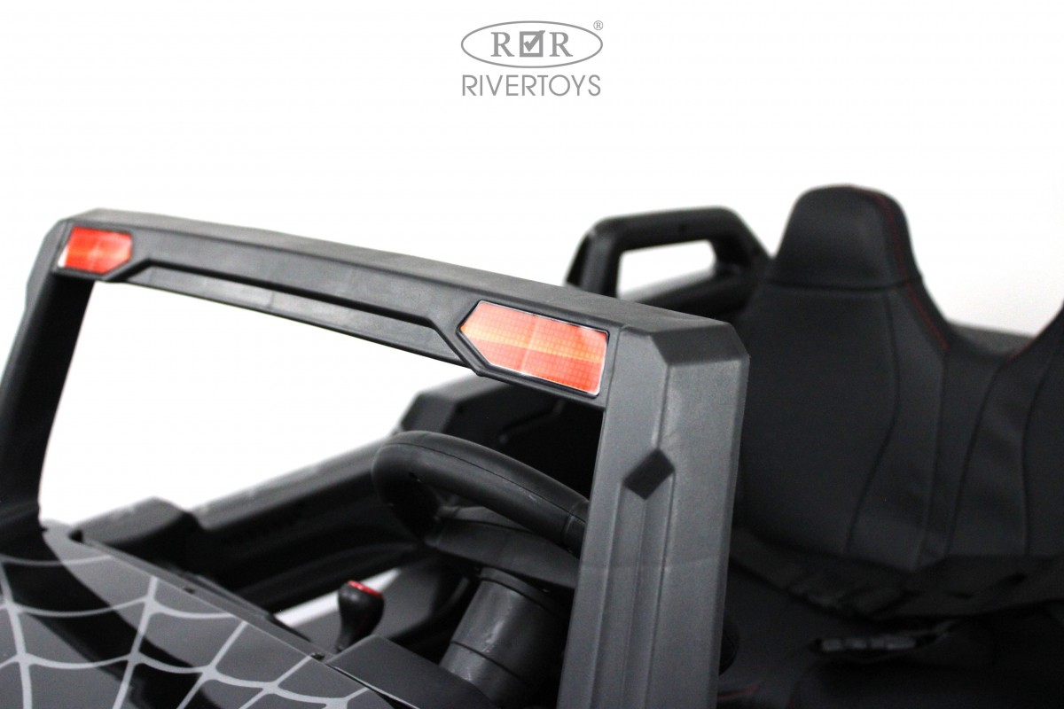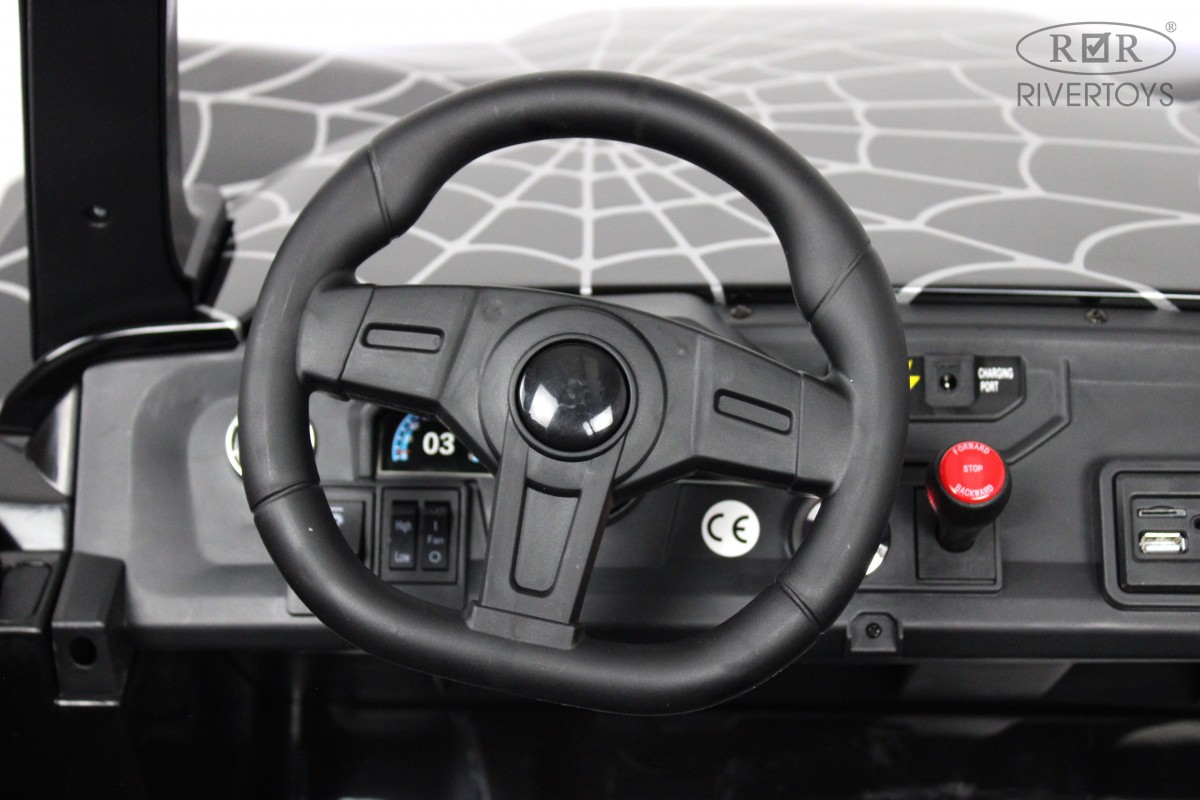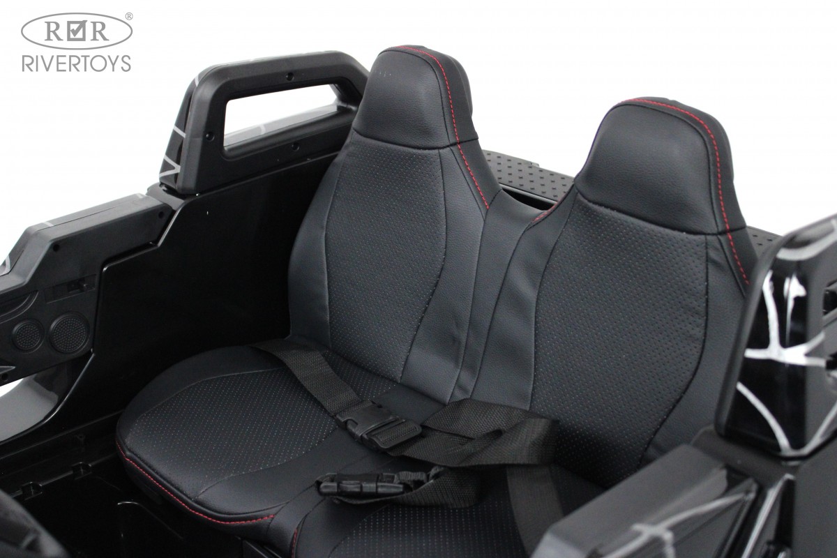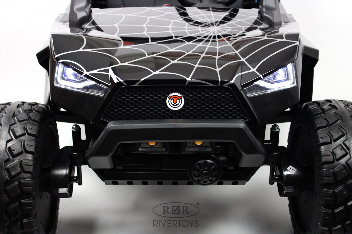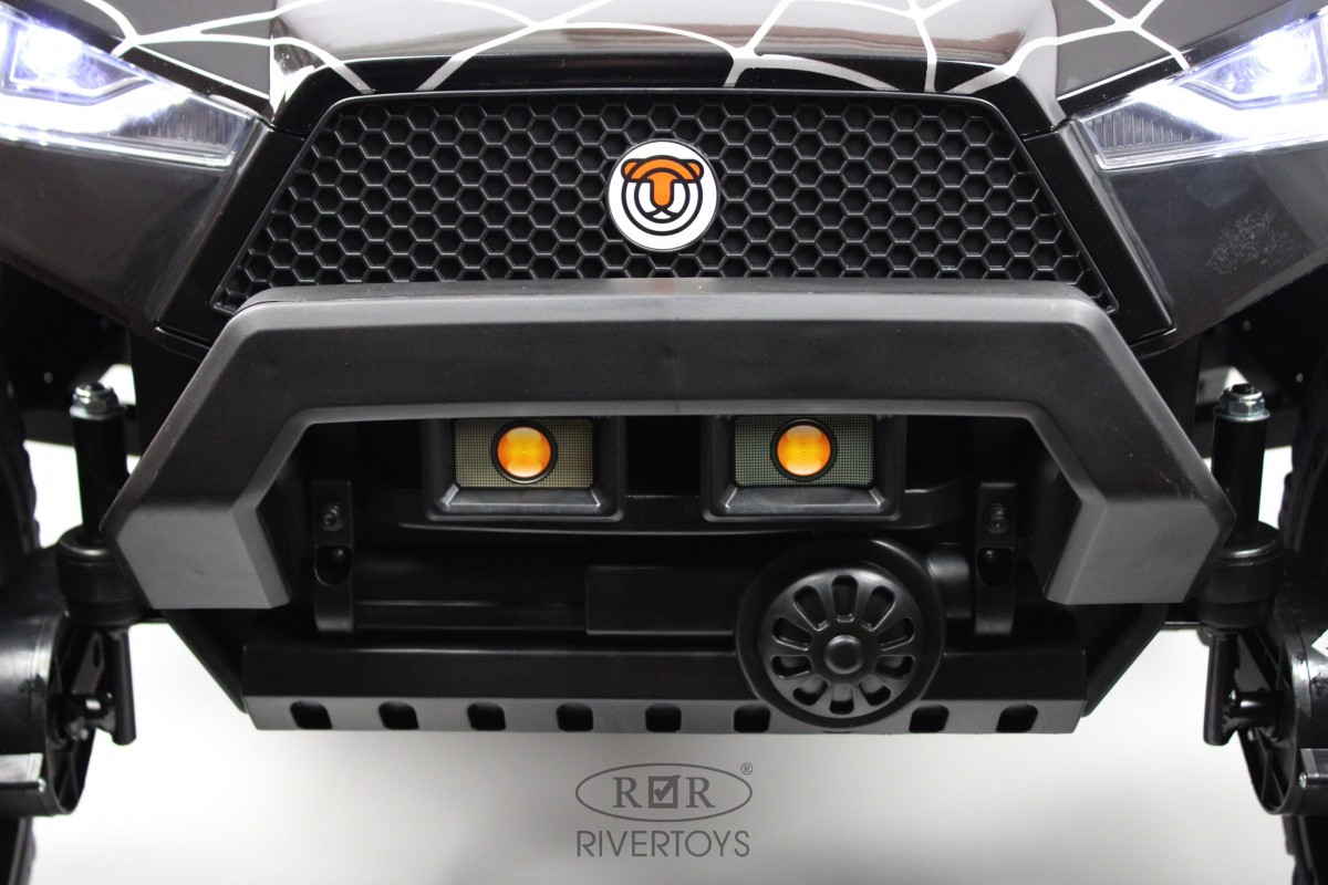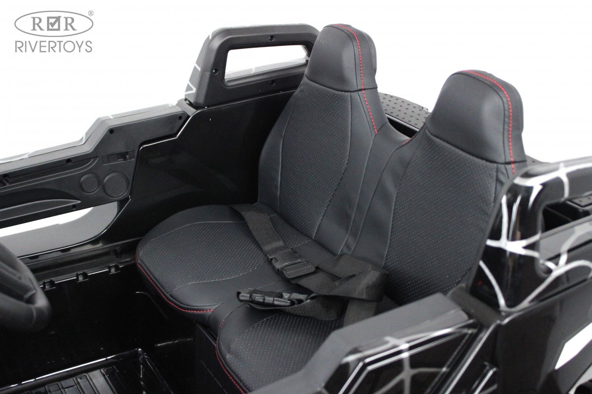 RiverToys Buggy 4WD A707AA – большой полноприводный электромобиль для 2-х детей. Этот вездеход оснащен большими резиновыми колесами и имеет высокий клиренс. Низкие дверцы могут открываться и закрываться на специальные замки. Просторный салон вмещает в себя двухместное кресло с кожаным чехлом, спинкой и 2 подголовниками.