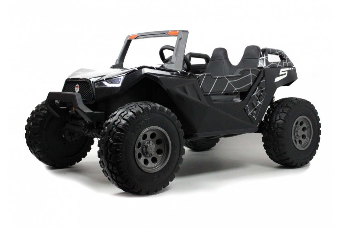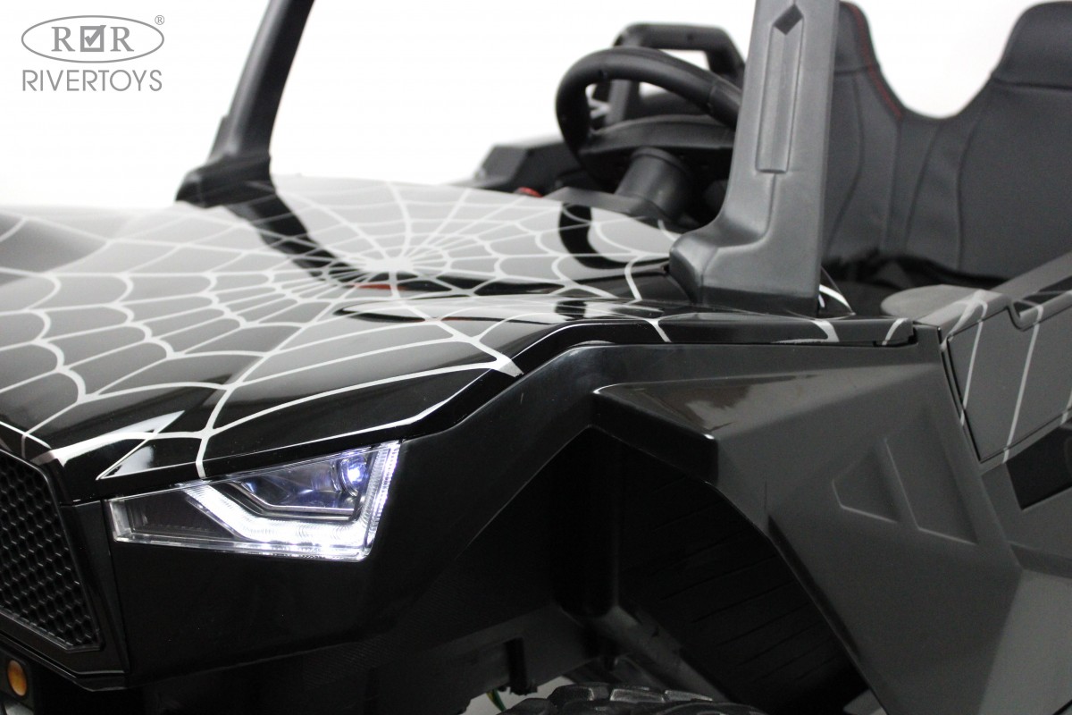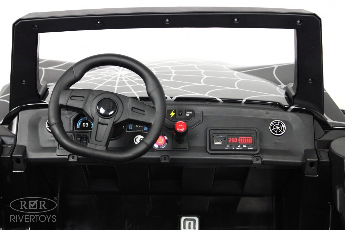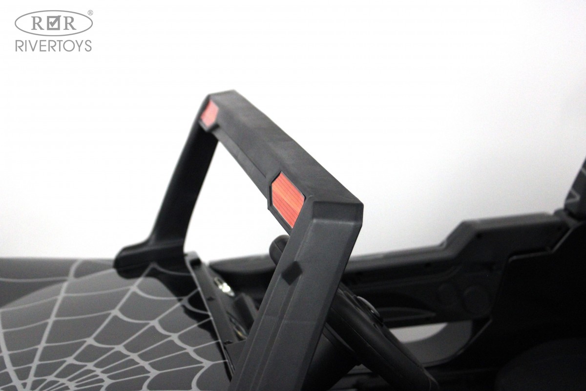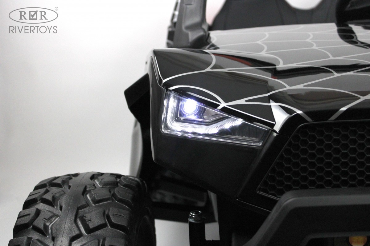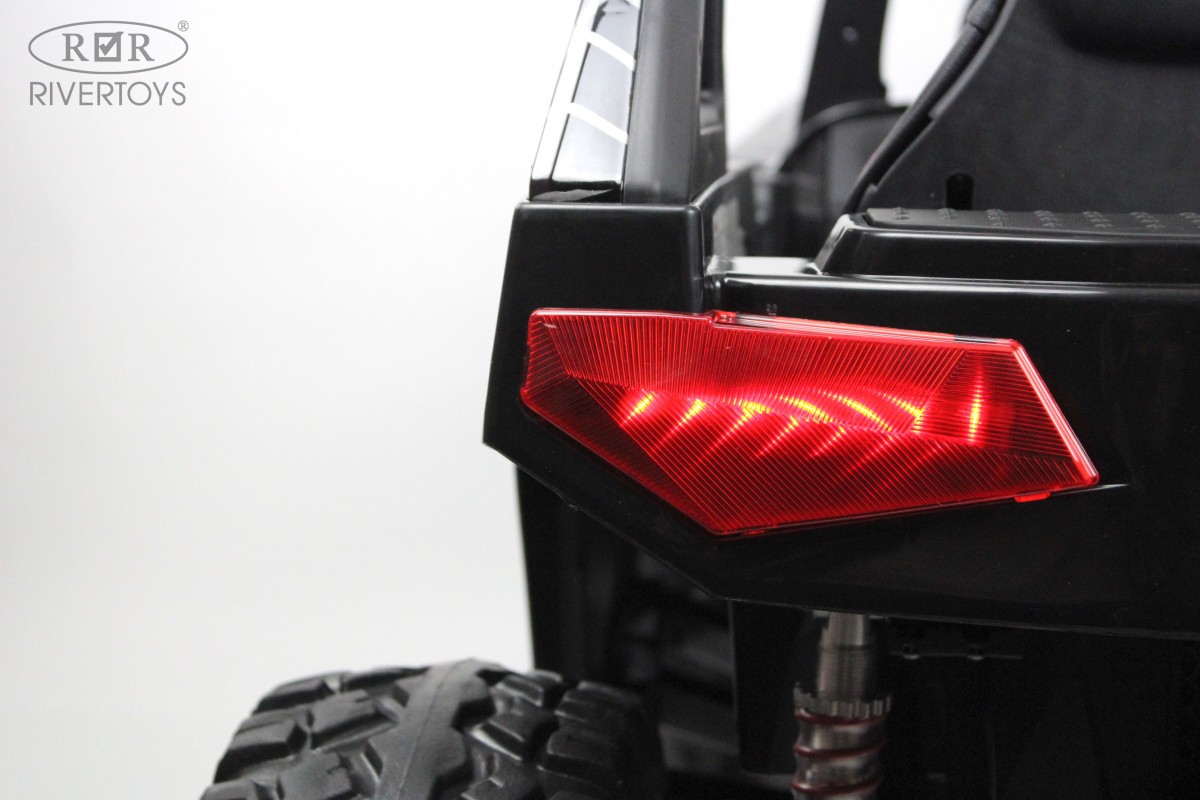 RiverToys Buggy 4WD A707AA – большой полноприводный электромобиль для 2-х детей. Этот вездеход оснащен большими резиновыми колесами и имеет высокий клиренс. Низкие дверцы могут открываться и закрываться на специальные замки. Просторный салон вмещает в себя двухместное кресло с кожаным чехлом, спинкой и 2 подголовниками.