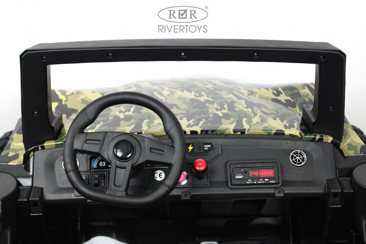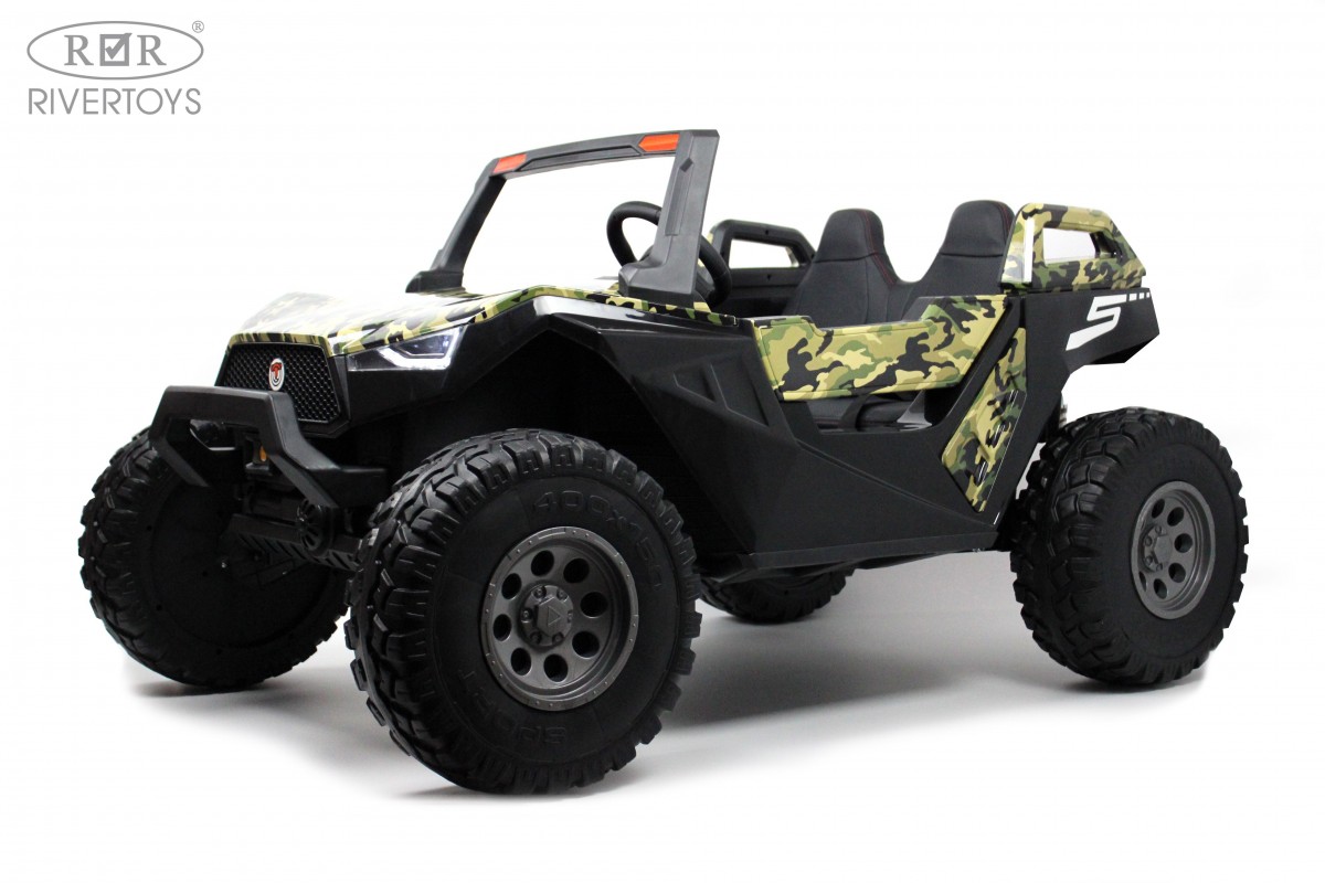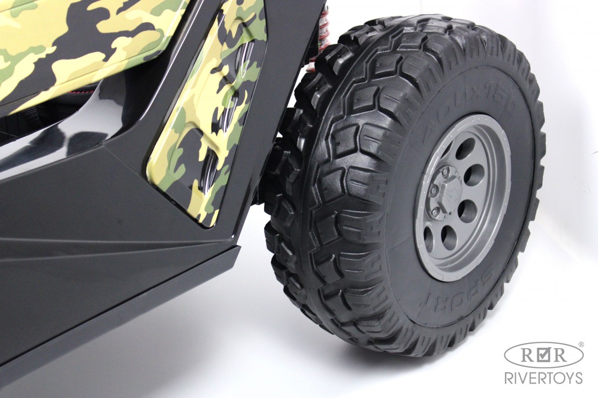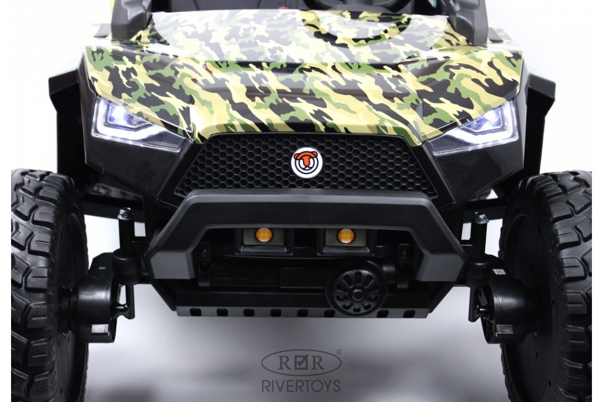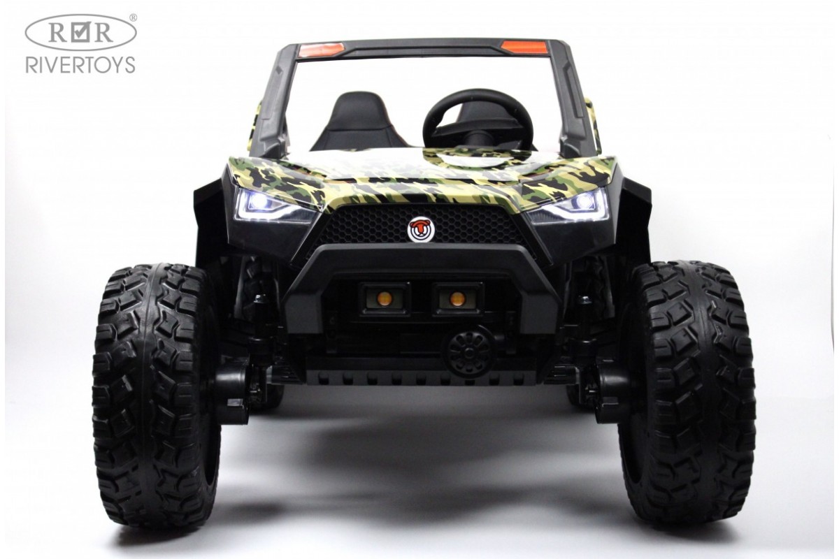 RiverToys Buggy 4WD A707AA – большой полноприводный электромобиль для 2-х детей. Этот вездеход оснащен большими резиновыми колесами и имеет высокий клиренс. Низкие дверцы могут открываться и закрываться на специальные замки. Просторный салон вмещает в себя двухместное кресло с кожаным чехлом, спинкой и 2 подголовниками.