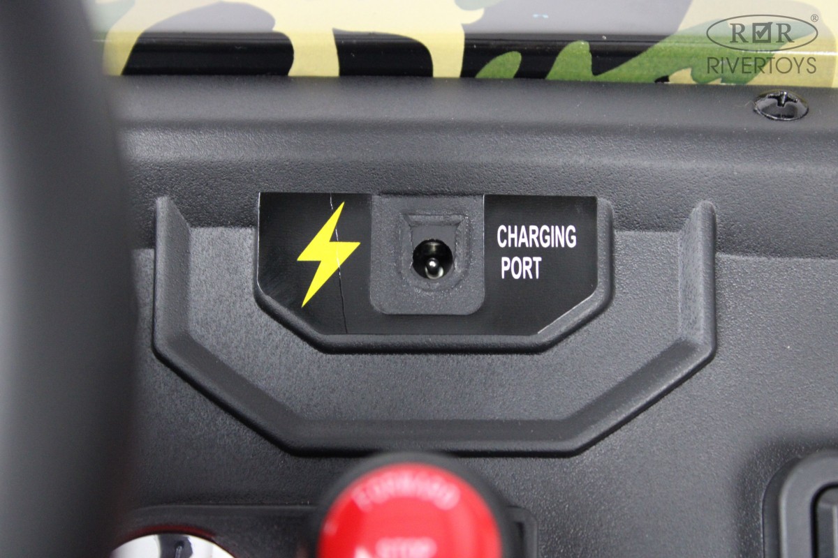 Сзади сидения есть багажник для игрушек. Передние и задние фары – светодиодные. Они ярко светят в темноте, освещая путь и делая джип хорошо видимым во время вечернего катания. Прочная рама выдерживает нагрузку до 100 кг. Внедорожник плавно стартует и разгоняется до скорости 5 км/ч. Чтобы было комфортно кататься по неровным дорогам и пересеченной местности, на передней и задней оси есть пружинные амортизаторы.