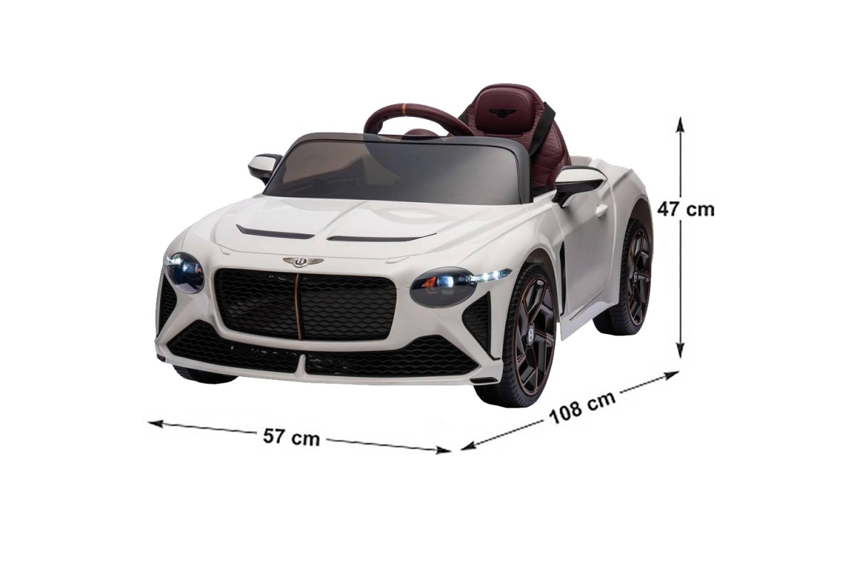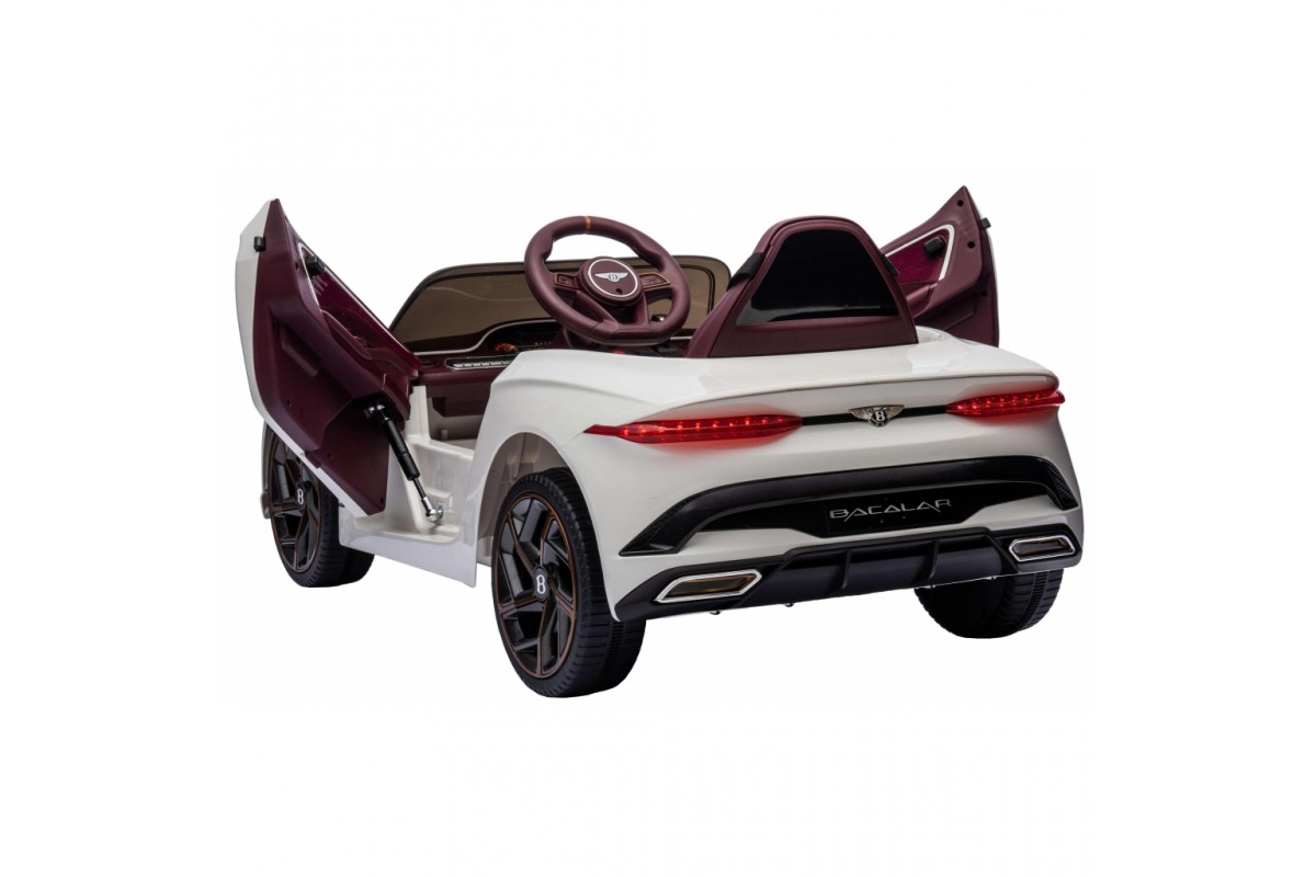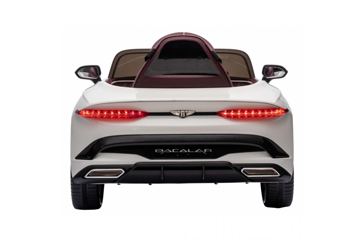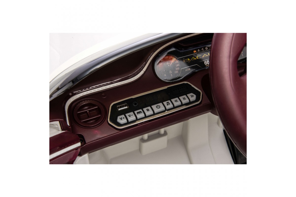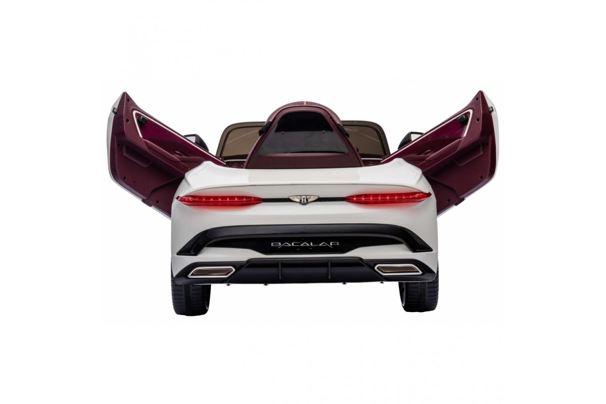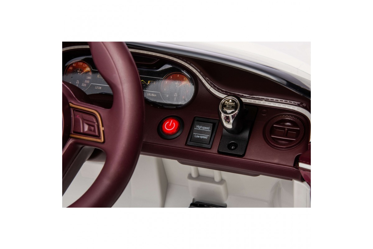 Детский электромобиль Bentley Bacalar (полный привод, 12V) - JE1008-WHITE - это качественный, стильный, лицензионный седан выполненный по лицензии легендарной общеизвестной автомобильной марки Bentley. Модель имеет невероятно реалистичный дизайн максимально повторяющий реальный аналог. Bentley Bacalar представлена на нашем сайте в максимальной комплектации. Для комфорта маленького водителя в модели предусмотрено мягкое кожаное кресло, каучуковые колеса комфортные и полный привод модели для использования почти на любой поверхности. Так же для безопасности электромобиль оснащен ремнем безопасности на сиденье и родительским пультом который всегда в приоритете при управлении моделью.