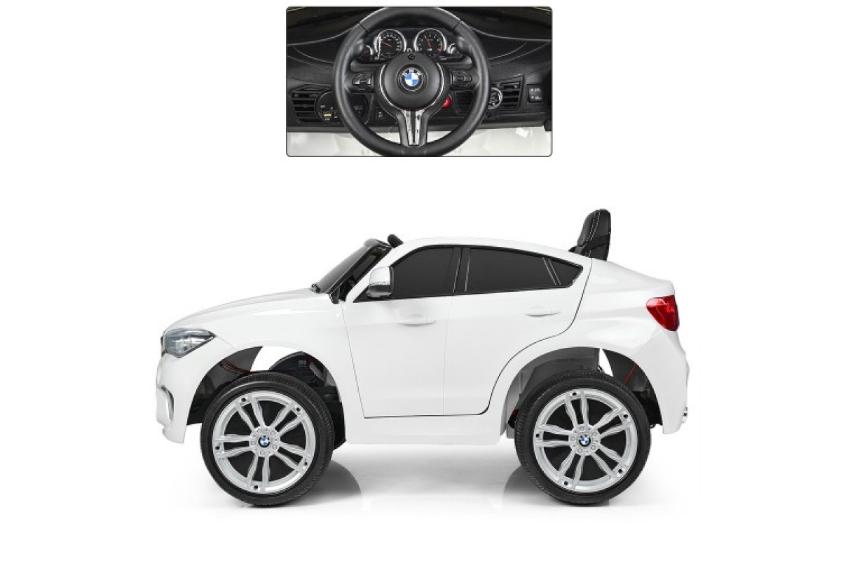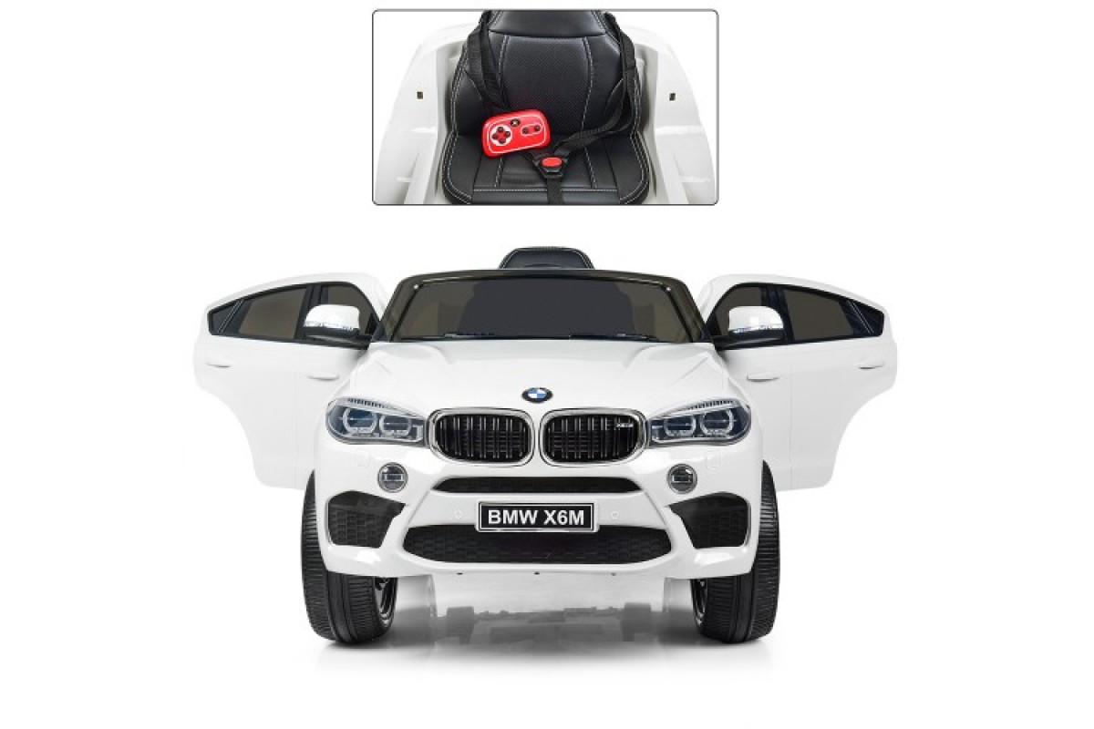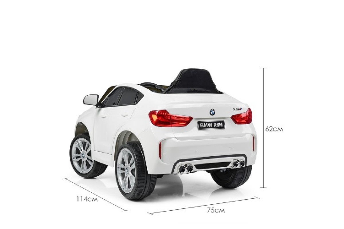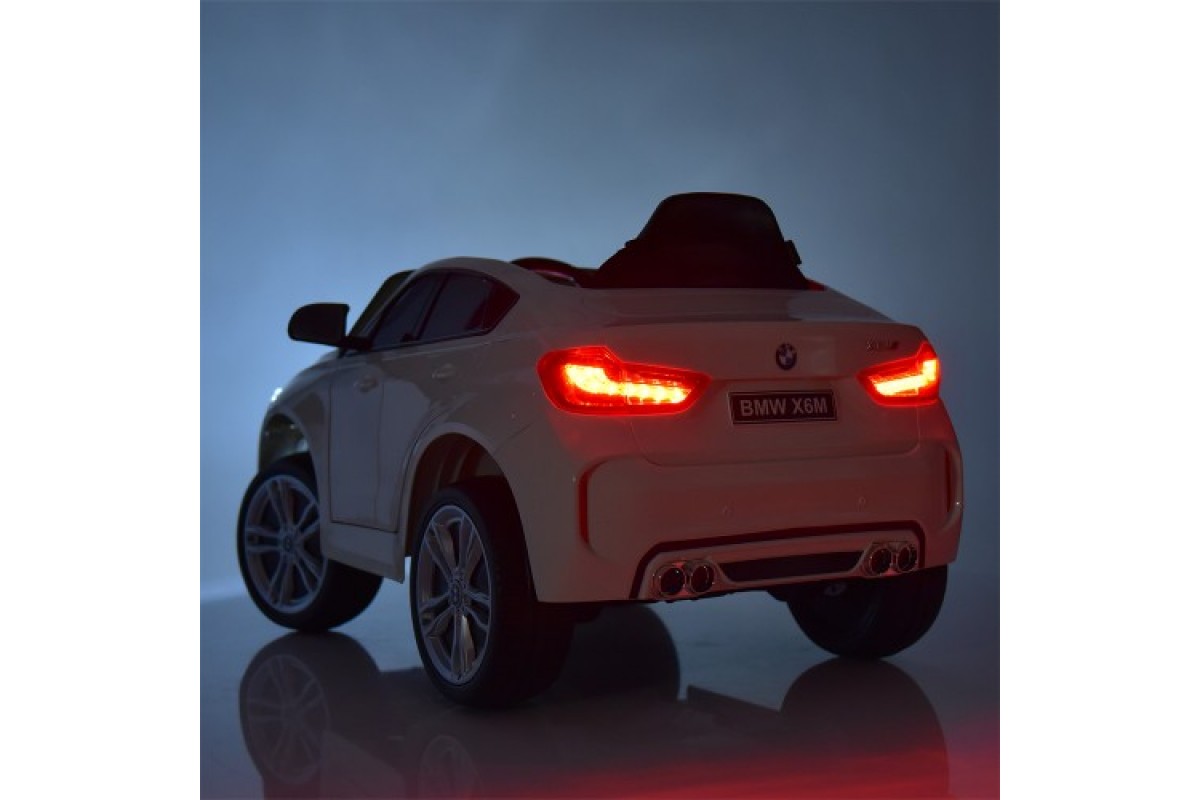 Детский электромобиль BMW X6M White - JJ2199 - это модель по лицензии компании BMW, которая порадует глаз неповторимым дизайном и станет настоящей находкой для родителей, предпочитающих, чтобы их ребёнок катался на современном джипе, повторяющим черты настоящей машины. Открывающиеся двери, два мотора, удобное сиденье из кожи, имитатор ветрового стекла и конечно же фирменные эмблемы BMW. Конструкция детского электромобиля BMW X6M сделана на основе металлического каркаса и корпуса из безопасного пластика, который красиво переливается в свете солнечных лучей, выгодно выделяя данную модель среди других детских джипов.
