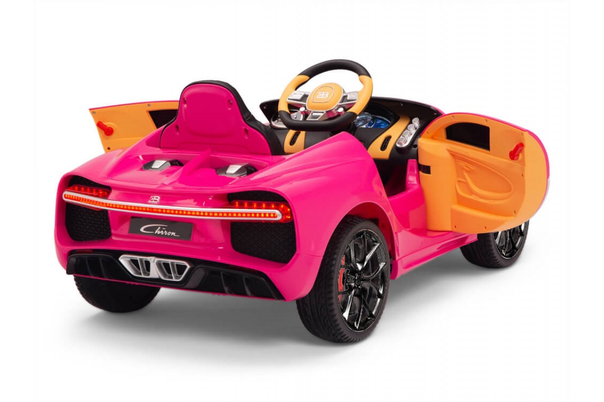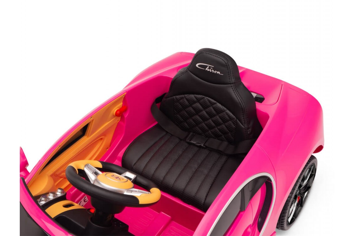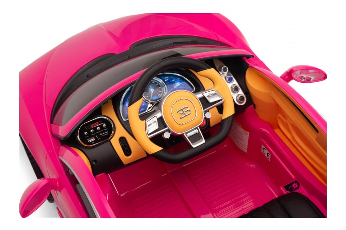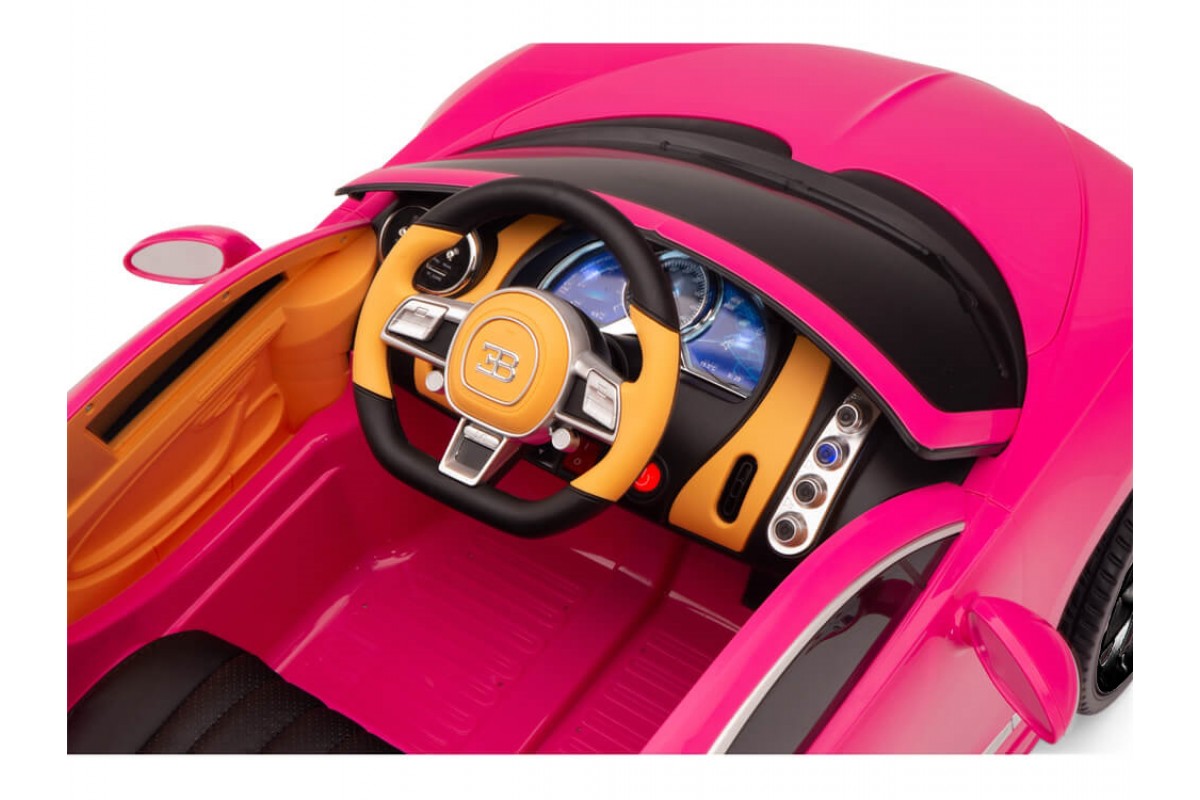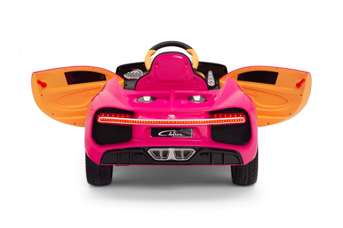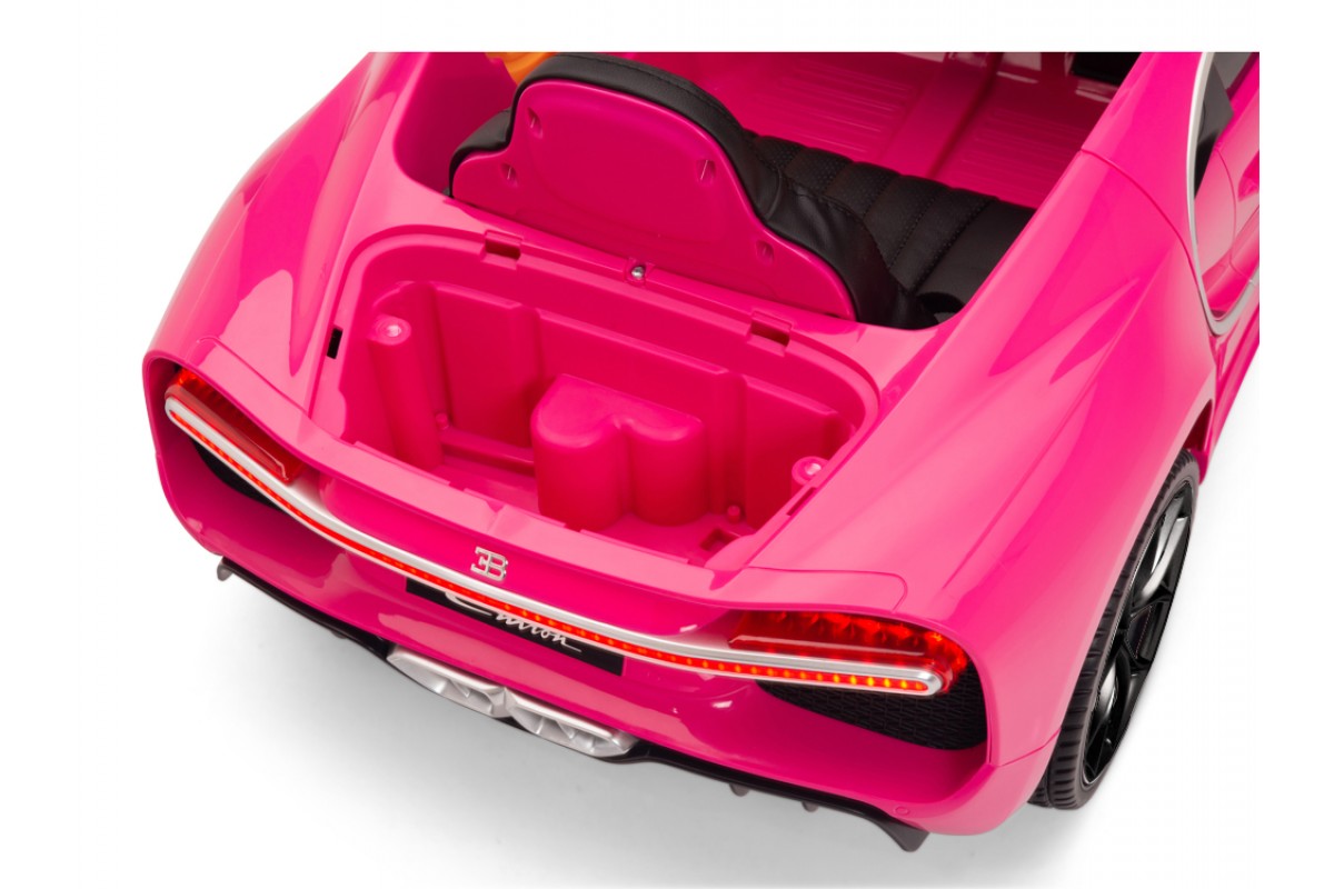 Детский электромобиль Bugatti Chiron 2.4G - Rose - HL318 - это детский одноместный электромобиль Bugatti Chiron по лицензии известного автоконцерна выполнен по стилю легендарной спортивной версии Bugatti. Двухскоростной автомобиль с пультом радиоуправления, у него открываются боковые двери и багажник. Отличие этой модели от других – мягкие резиновые колеса, встроенная магнитола, LEВ подсветка фар и звук мотора, сиденье из перфорированной черной экокожи с логотипом и пульт управления 2.4G.