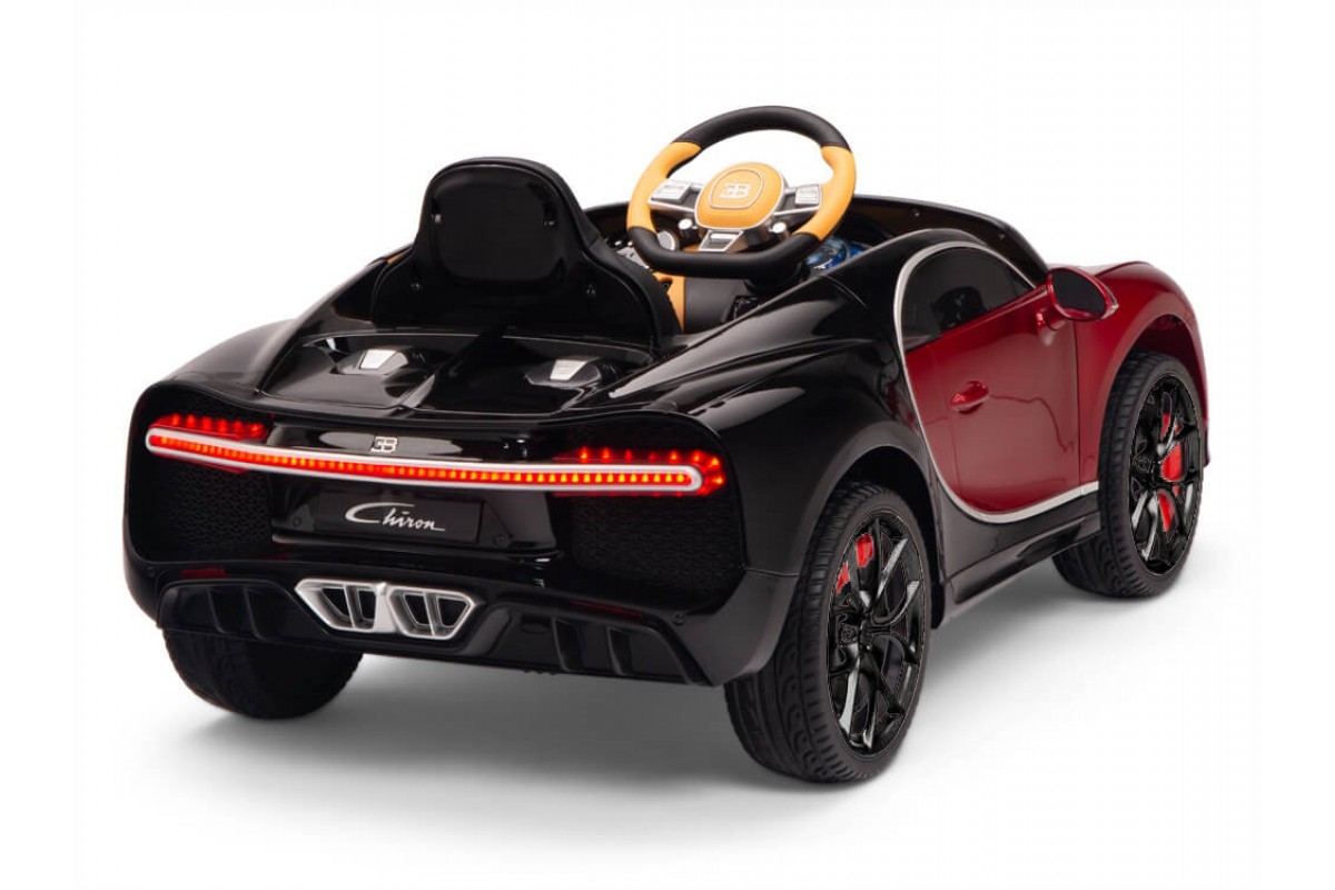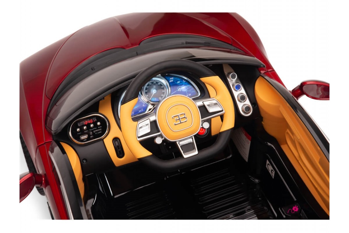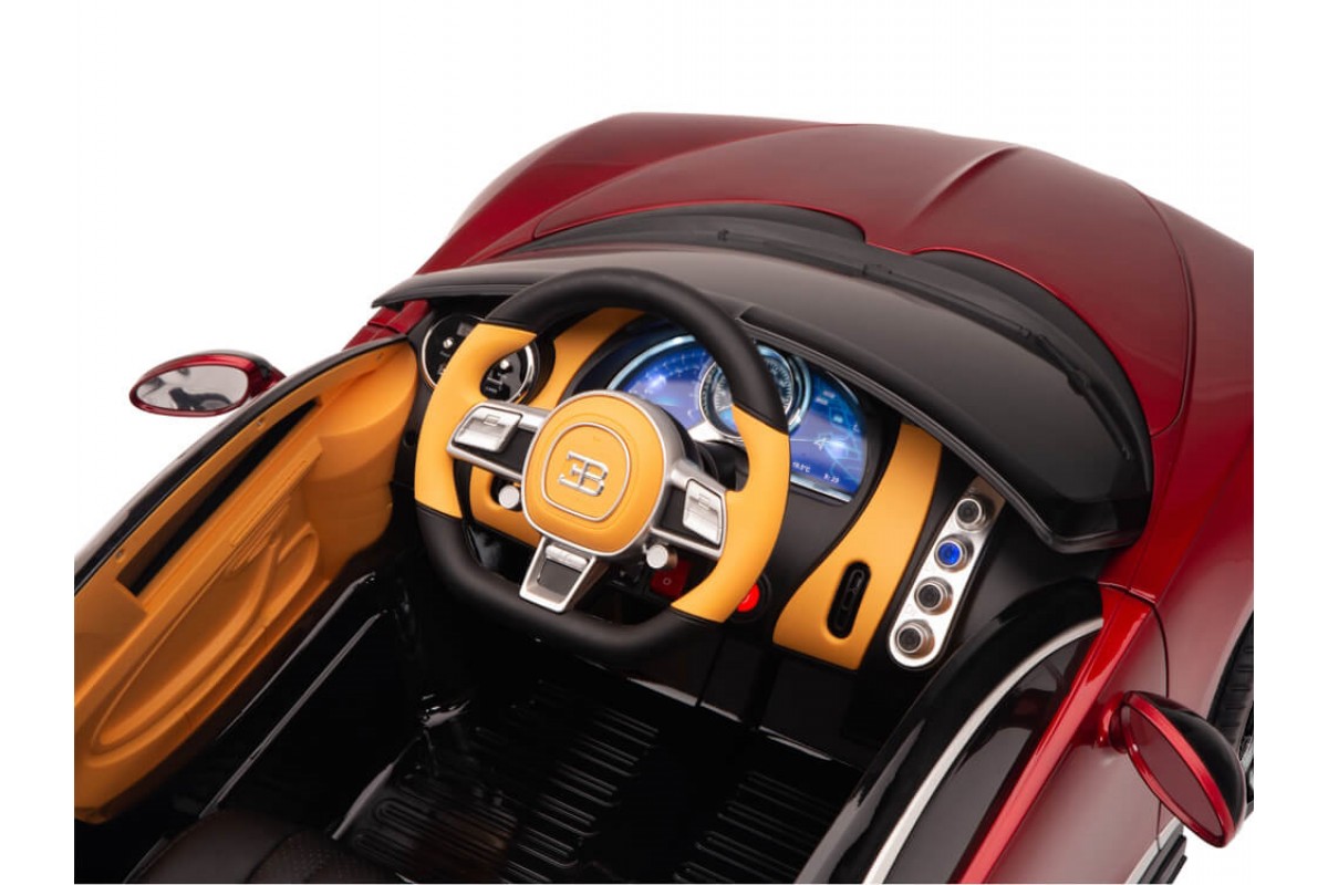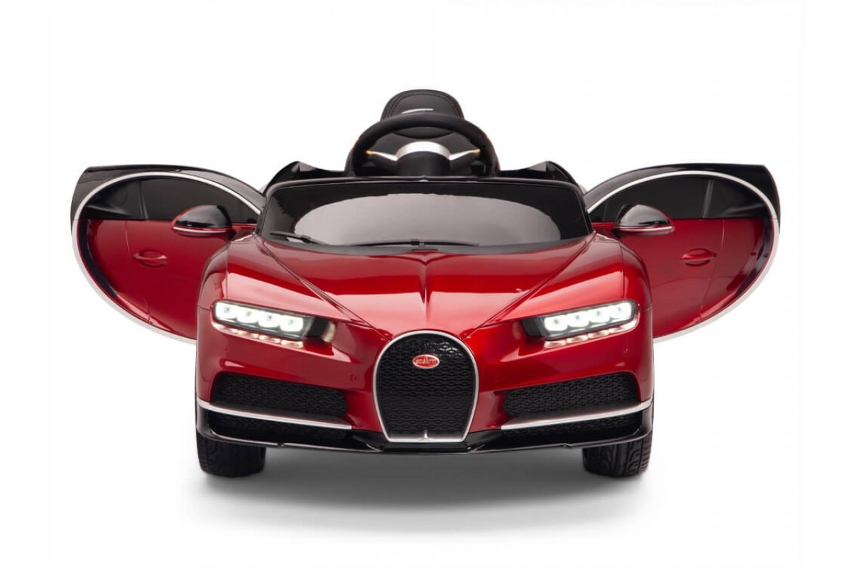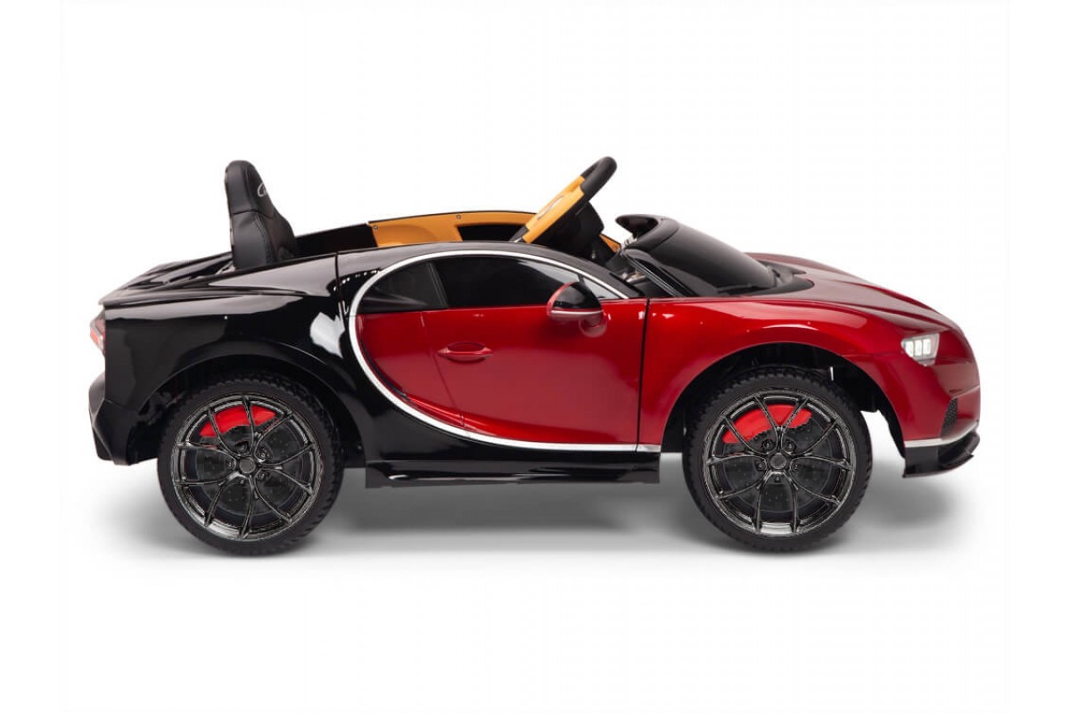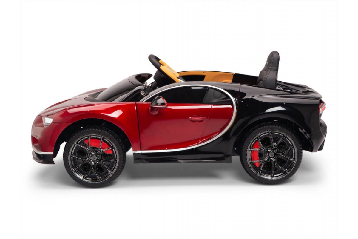 Детский электромобиль Bugatti Chiron 2.4G - RED - HL318 - это детский одноместный электромобиль Bugatti Chiron по лицензии известного автоконцерна выполнен по стилю легендарной спортивной версии Bugatti. Двухскоростной автомобиль с пультом радиоуправления, у него открываются боковые двери и багажник. Отличие этой модели от других – мягкие резиновые колеса, встроенная магнитола, LEВ подсветка фар и звук мотора, сиденье из перфорированной черной экокожи с логотипом и пульт управления 2.4G.